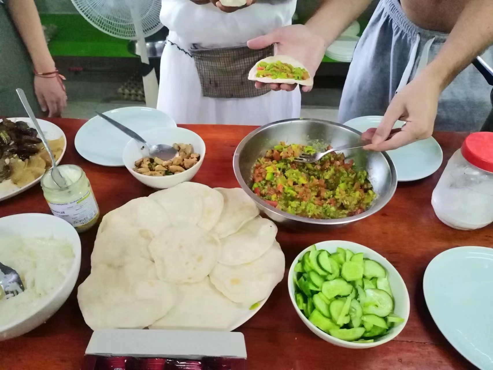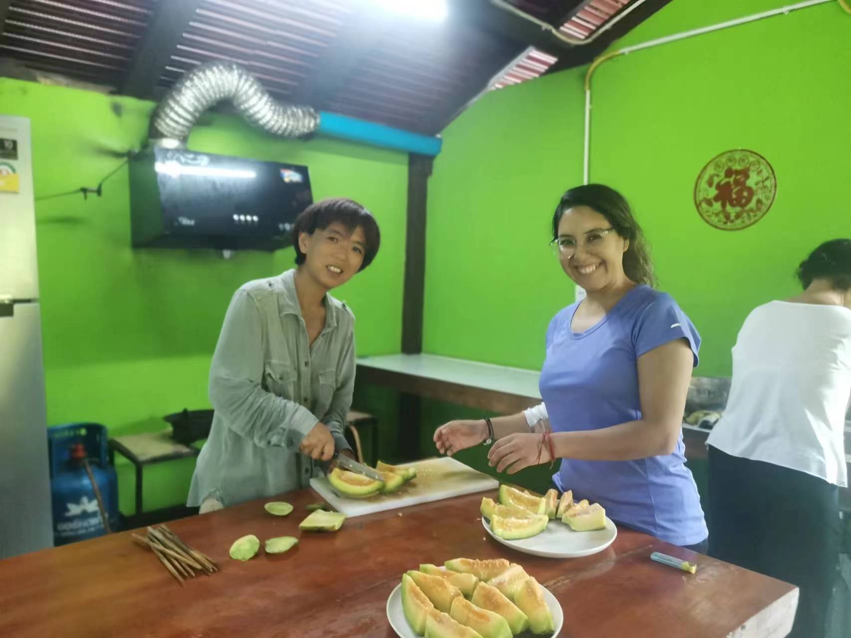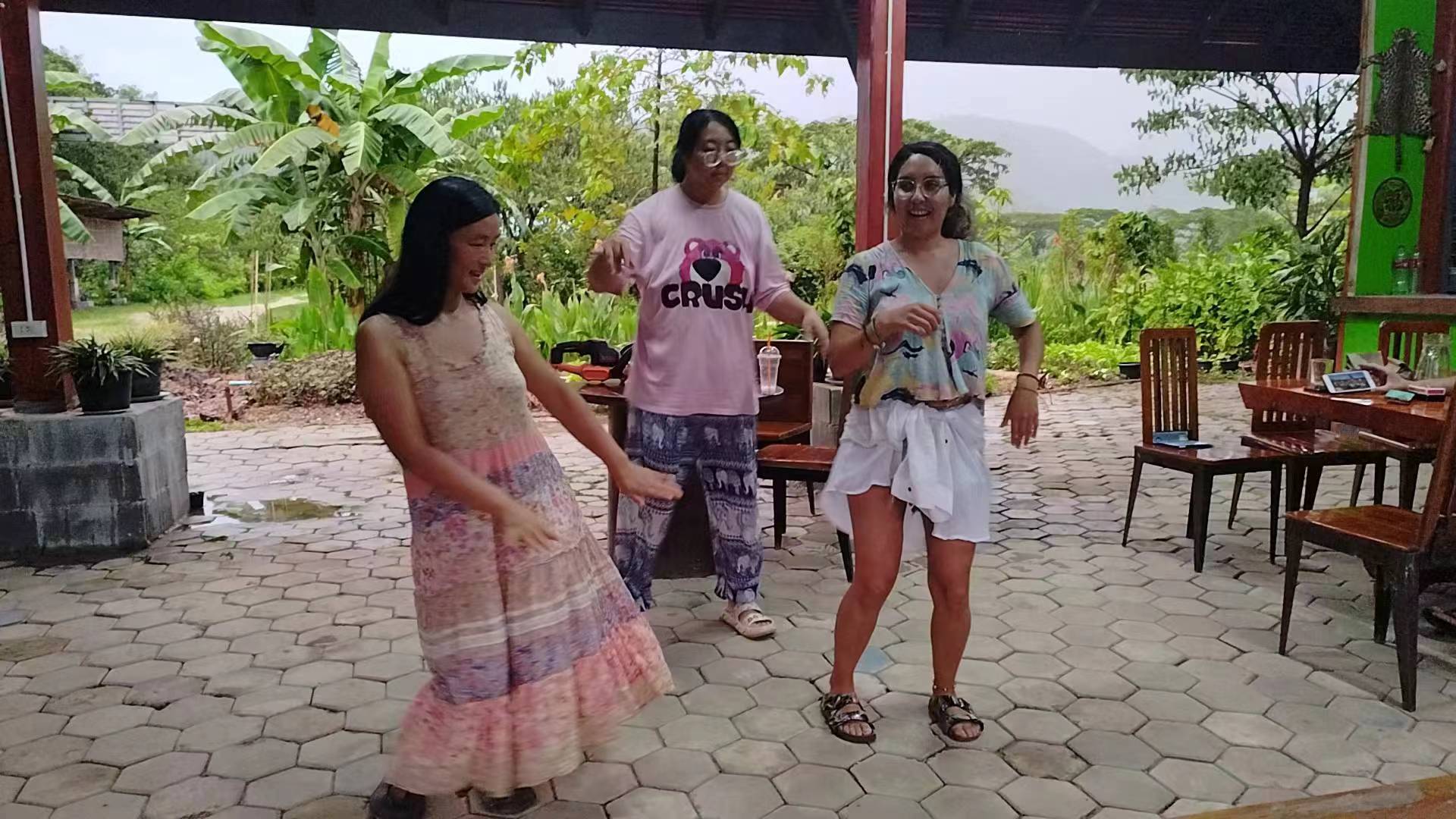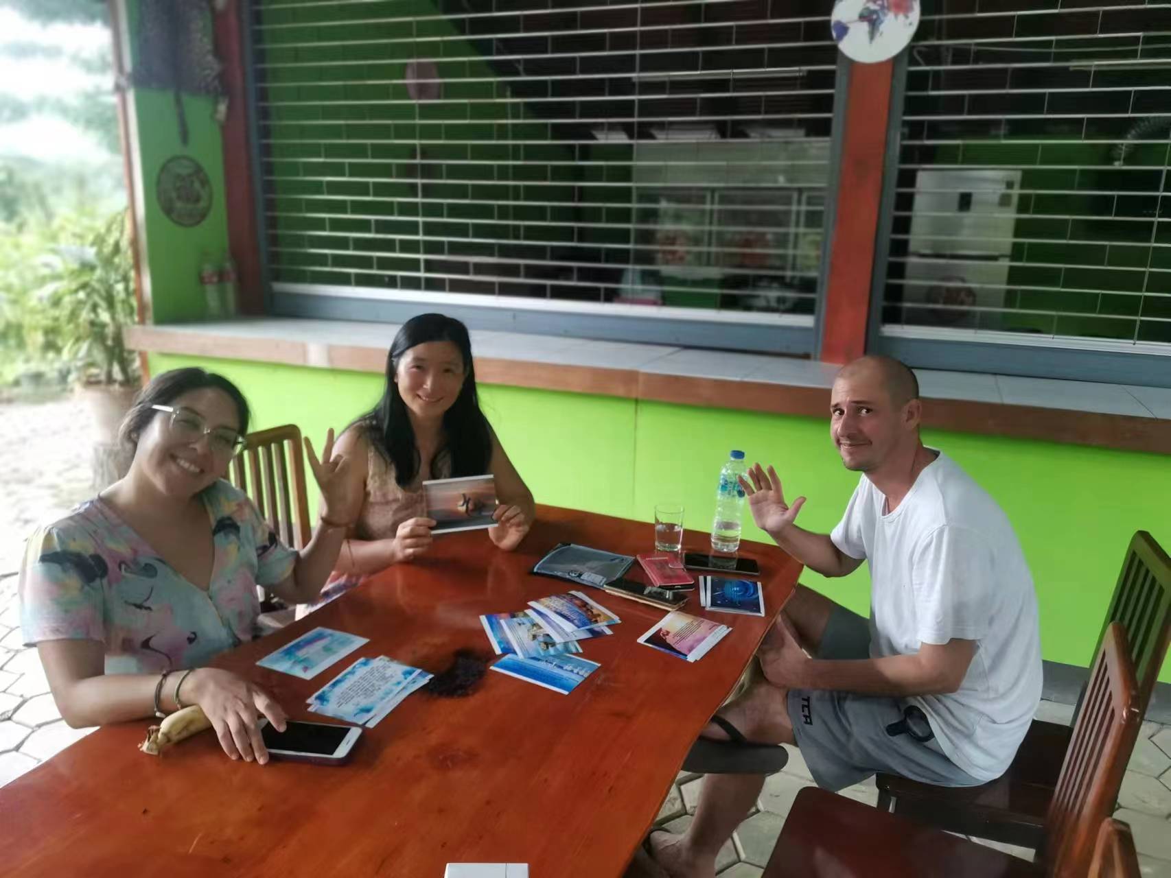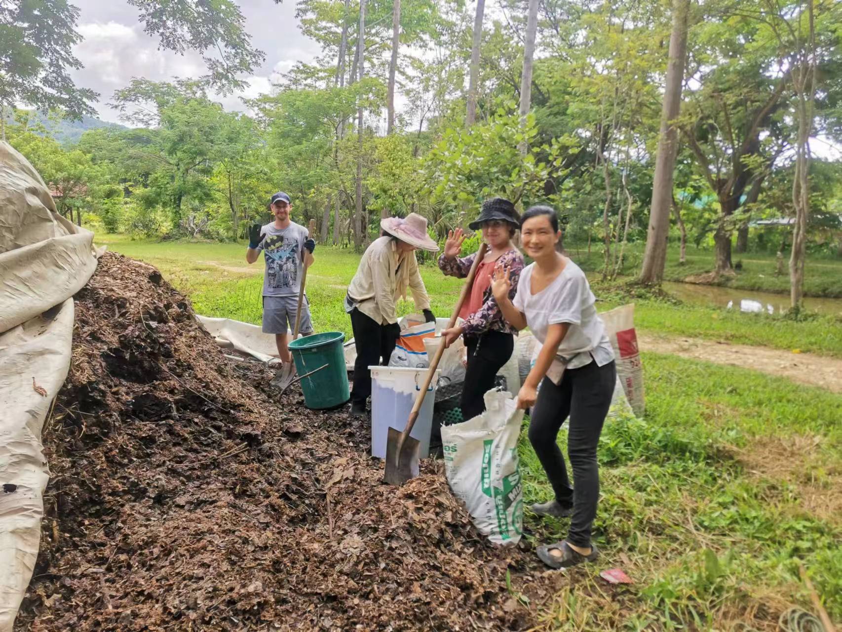 During these days, Maria and Rowan joined us in gathering grass, weeding, carrying fertilizer, picking mangoes, improving the soil, and planting pineapples,they are diligent and fearless of heat and dirt,help us a lot with the gardening work. Rowan, a gentle and sensitive British boy who had been hurt in a past relationship, appreciated free love in the community, hoped to become a member after familiarizing himself with the 800 Values for new era human beings. Maria, a kind and sweet Chilean girl who worked as a preschool teacher, had a loving and caring personality. She believed in Christ, the existence of souls and heaven. She cooked delicious Mexican chicken rolls and taught us passionate South American dances. During their free time, we took them out for short trips and swimming. After a week of experience, they both feel peaceful and satisfied here and asked if they could extend their stay for another week, since we all enjoy time spent with them and agree happily they stay for another week.