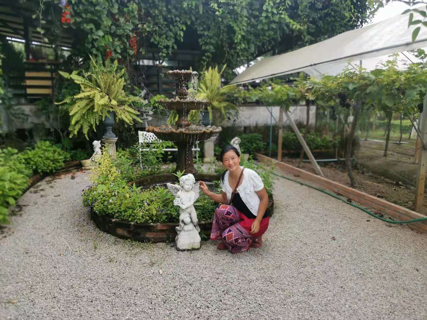 On the way back from the Royal Vegetable Base, we were attracted by a garden full of flowers. I thought it was a place where I could buy coconut crumbs. After getting off the car and entering the courtyard, we found that it was a large-scale and well designed vineyard with a unique and beautiful scenery, with exquisite grapes all over the branches, flowers and special grass everywhere, the lawn was clean and refreshing, and the lake was green and clear. What a beautiful natural scenery,we played and immersed ourselves in it. Seeing the beauty and experiencing the beauty, the beauty is deeply imprinted in the consciousness, and the heart is also driven to create beauty. We hope with more brothers and sisters we also can create and build such wonderfull place in the future!