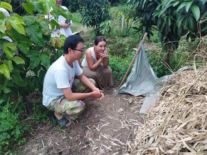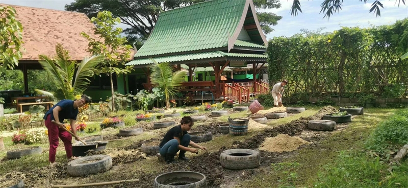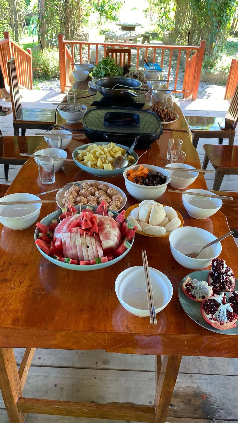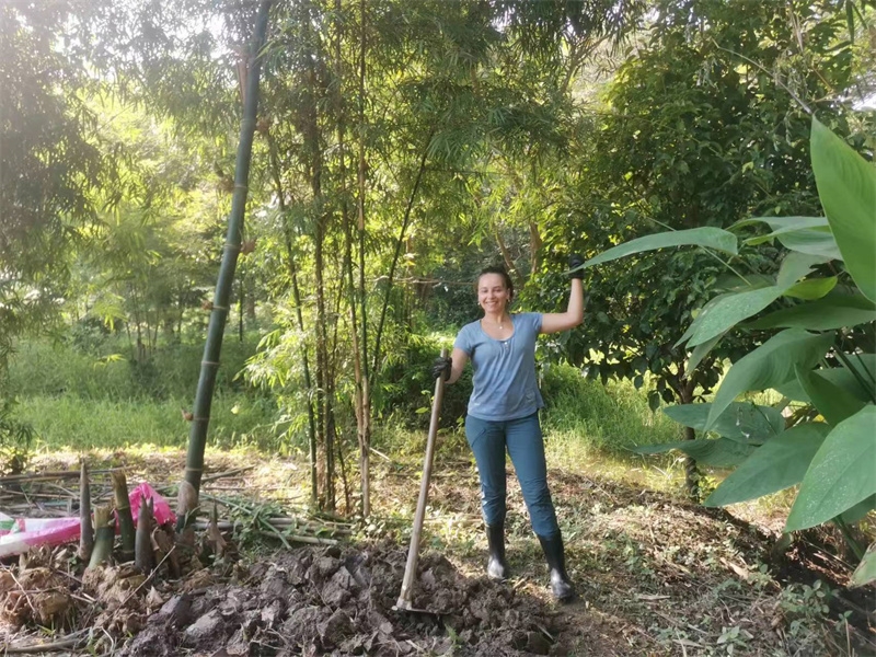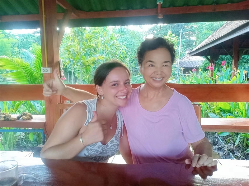French girl Lou found us through HelpX and arrived on October 24th to experience life in our Thai branch. At 24 years old, with a law degree and one year of work experience, she felt anxious, unsure of her future, and decided to travel. In the mornings, we worked with her to improve the clay soil, tend to the garden, and raise seedlings. In the afternoons, she had free time to explore. She enjoyed hiking in the nearby mountains and helping Yulin in the kitchen to prepare dinner. We taught her how to make dumplings, and she also prepared exquisite and delicious French cakes for everyone. In just a few days, her initially weary appearance transformed as she relaxed and enjoyed the simple life in our second home. She expressed that people burdened with fatigue and anxiety in the secular world could find solace and relaxation with us. She also astutely observed that each member of our community had different personalities but harmoniously formed a unified whole. Regarding our open and free attitude towards love and sex, she easily accepted and understood it. Although she didn't have a steady boyfriend, she didn't refuse to flirt with some boys.