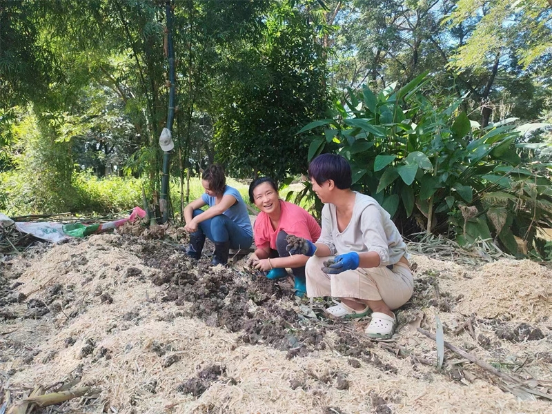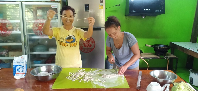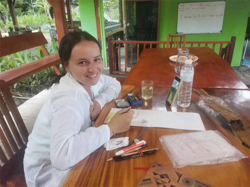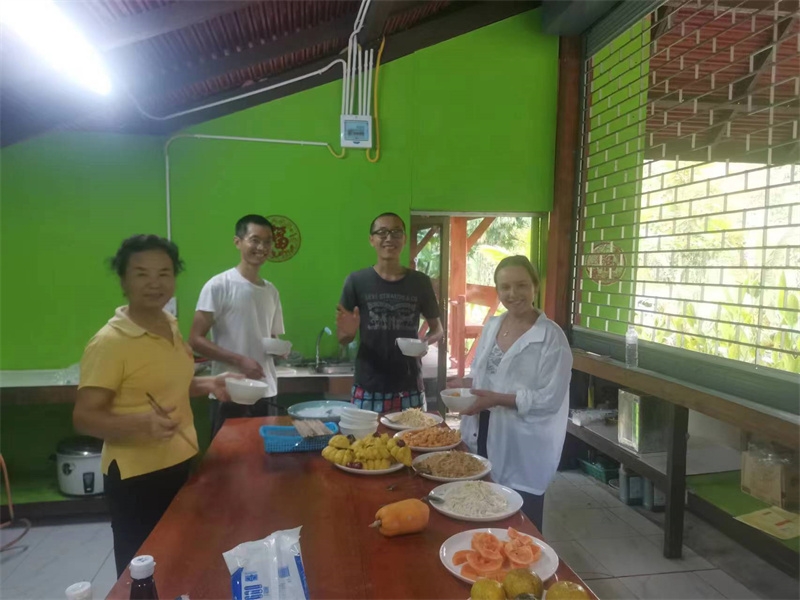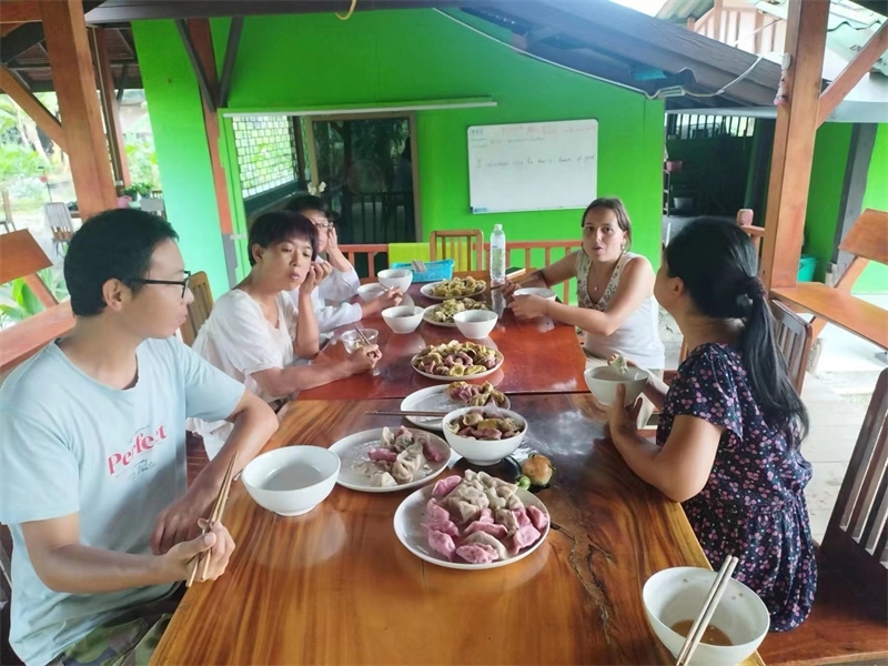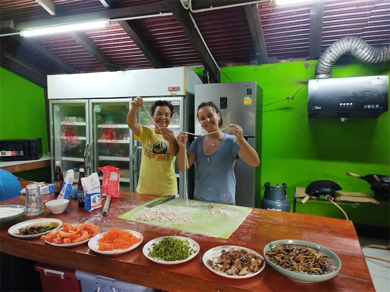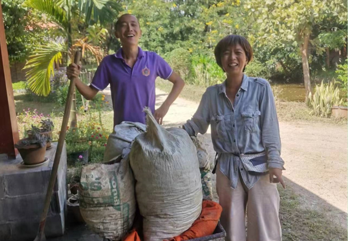 French girl Lou found us through HelpX and arrived on October 24th to experience life in our Thai branch. At 24 years old, with a law degree and one year of work experience, she felt anxious, unsure of her future, and decided to travel. In the mornings, we worked with her to improve the clay soil, tend to the garden, and raise seedlings. In the afternoons, she had free time to explore. She enjoyed hiking in the nearby mountains and helping Yulin in the kitchen to prepare dinner. We taught her how to make dumplings, and she also prepared exquisite and delicious French cakes for everyone. In just a few days, her initially weary appearance transformed as she relaxed and enjoyed the simple life in our second home. She expressed that people burdened with fatigue and anxiety in the secular world could find solace and relaxation with us. She also astutely observed that each member of our community had different personalities but harmoniously formed a unified whole. Regarding our open and free attitude towards love and sex, she easily accepted and understood it. Although she didn't have a steady boyfriend, she didn't refuse to flirt with some boys.