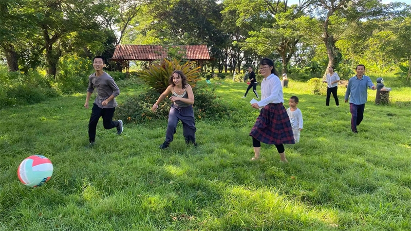On her last day before leaving, we organized a game activity and a hot pot party. Everyone ran, laughed, climbed and rolled on the grassy fields ,had a lot of fun and laughter.
