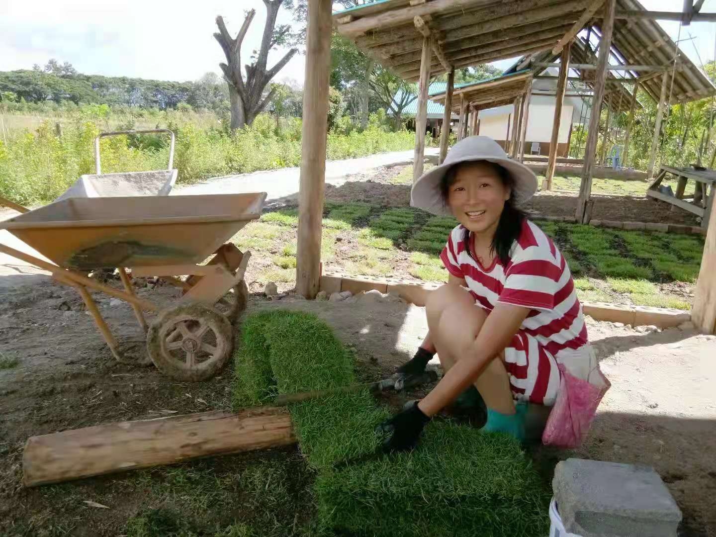 In addition,we helped the workers to lay the lawn in the yard,and have the opportunity to experience the continuous fast charging of solar energy at noon. Working under the big and hot sun, keep the brain empty,just pay attention to the work itself,the sun is scorching on our face and back, and I just imagine myself being surrounded and melted by love from the sun. In this way,I had no longer resisting,adapted to the high energy of the sun. After sweating a lot, a cool breeze blowing over, feel so refreshing , energetic and grateful!