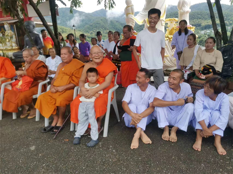September 21st is a grand Buddhist festival in Thailand. The Abbot invites all brothers and sisters to go to the temple to watch Thai traditional dance performances. When Xiao Dengdeng saw Abbot for the first time, he acted very polite, putting his hands together and generously greeted to Abbot: "Sawadika!" Abbot was very happy to see Dengdeng and hold him in his arms during watching the dance performance all the time .