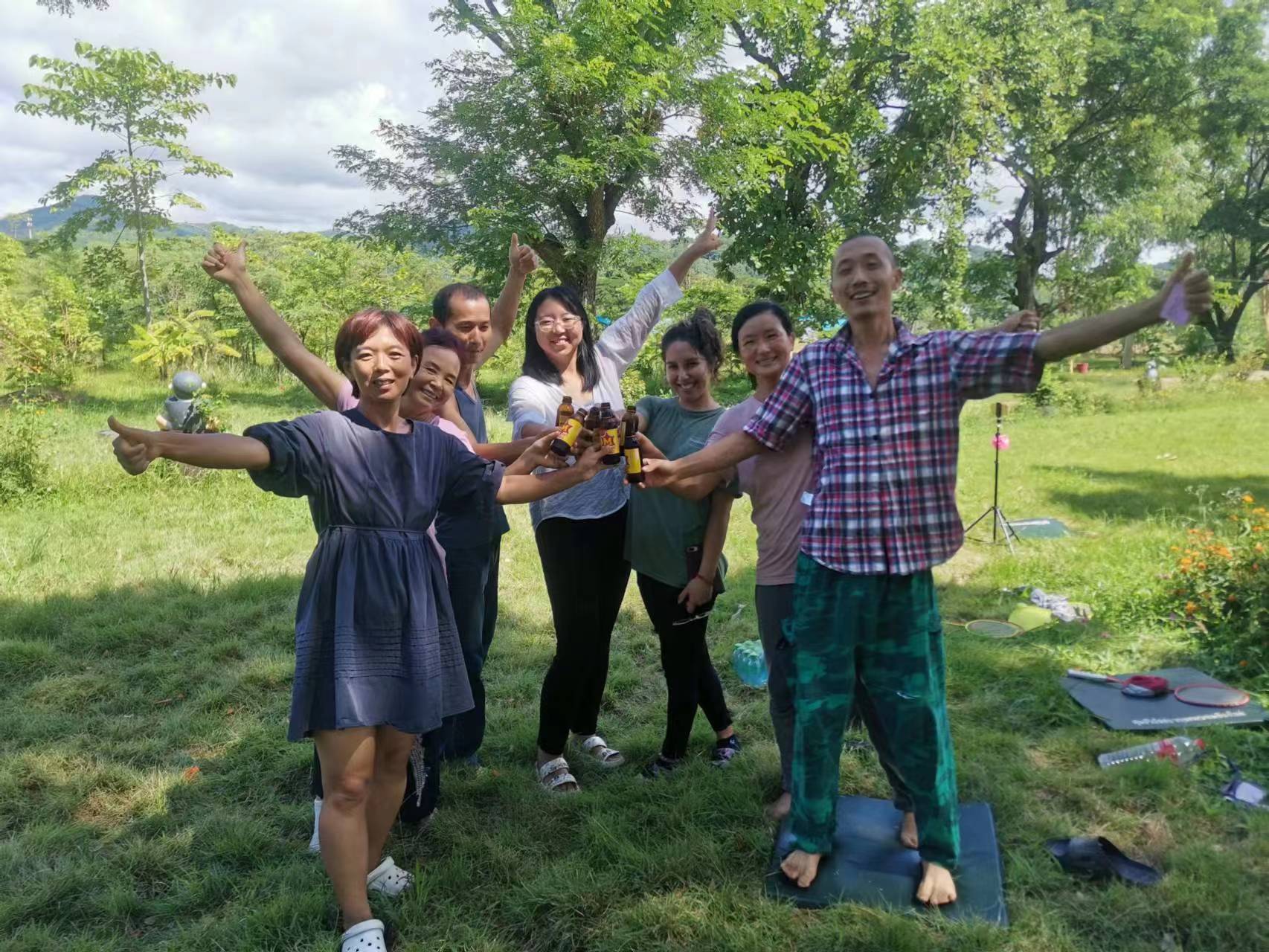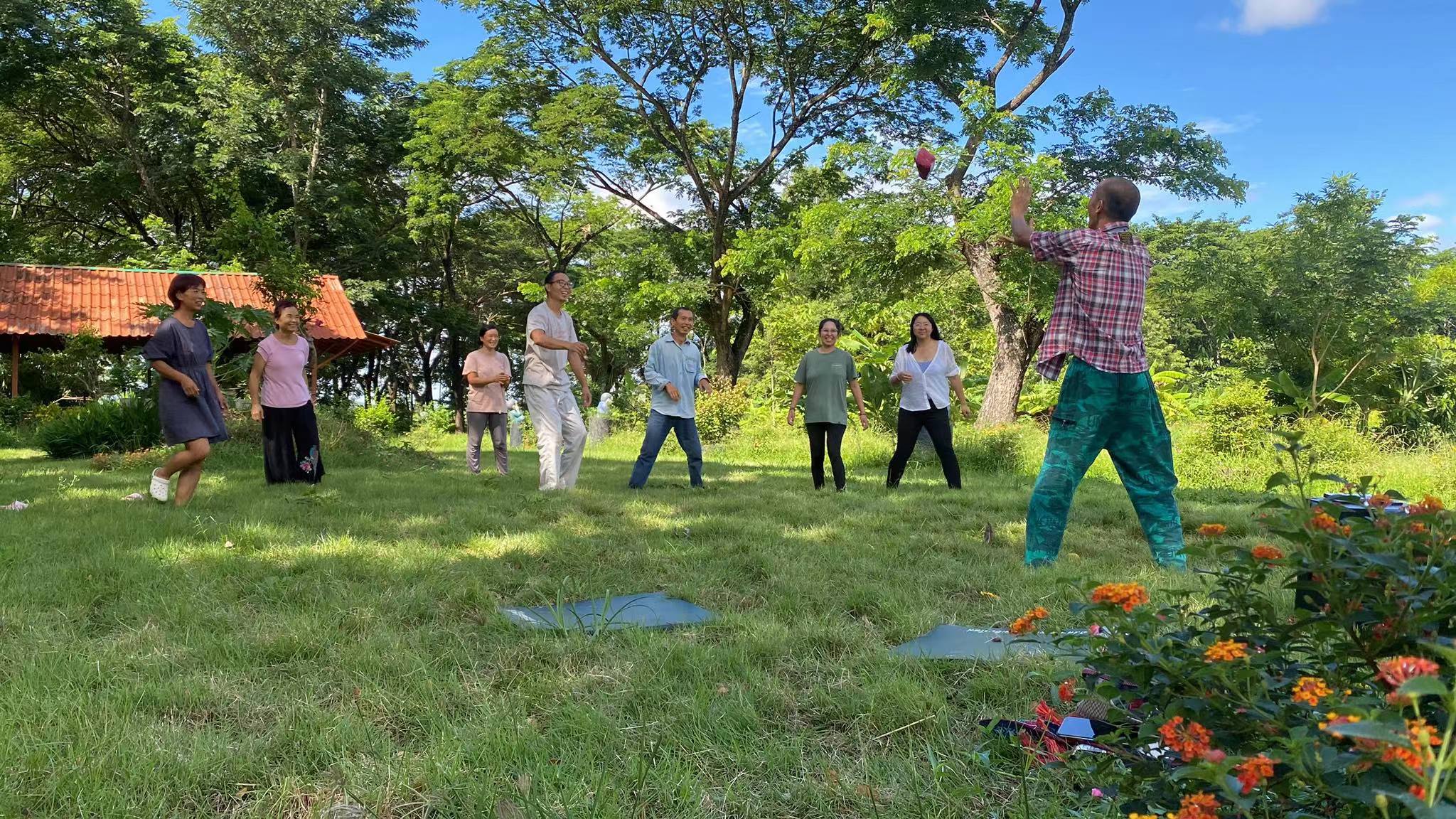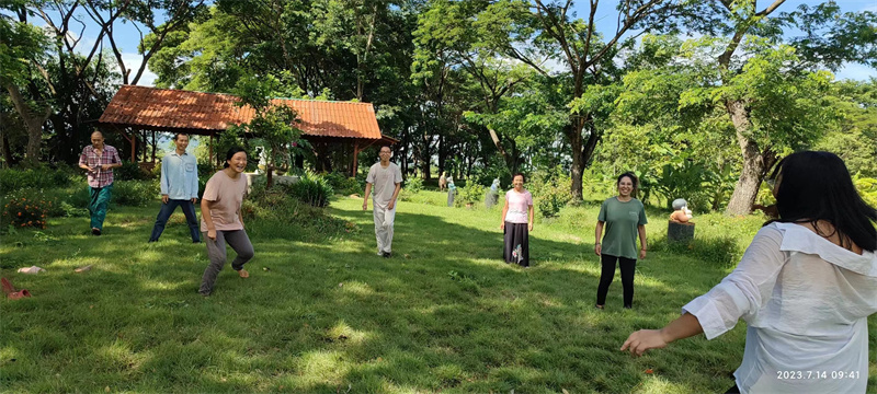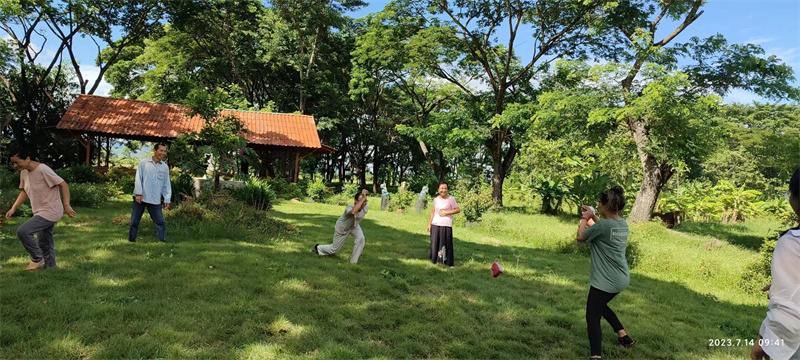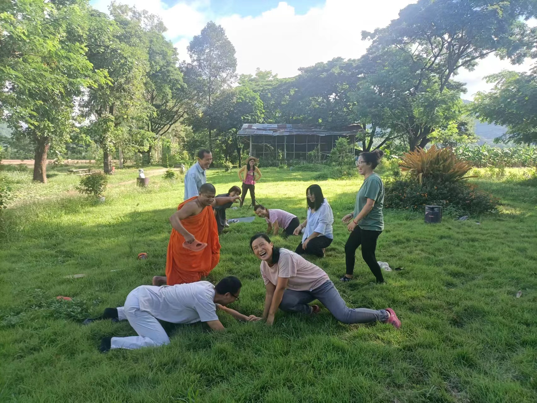 Following the successful gaming event in Thai Home last June, the July gaming activities were hosted by Yang Le. This time, besides us eight members and our friends， the monk Anan, the Chilean girl, Maria, also participated. Together, we played games such as "Snatch the Shoe," "Throwing Sandbags," "Find the Leader," "Unlock the knot," "Number Bomb," "Badminton," "Balloon of Luck," and "Eating Cucumbers." During the games, Maria also led us in spontaneous and lively Latin dance. Under the blue sky, white clouds, and on the green grass, with horses leisurely accompanying us, a group of children played joyfully and happily. Thanks to Yang Le's creative ideas and the well-organized games, the advantages of the Thai Home community model became even more apparent, spreading the joy of community life to more friends who came to experience it.