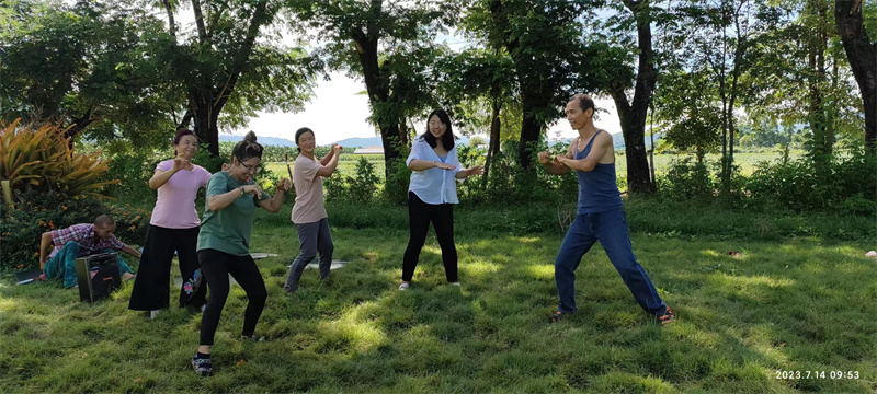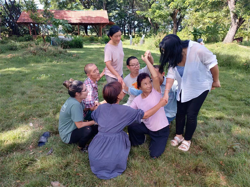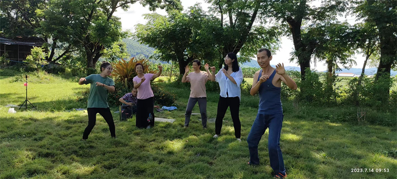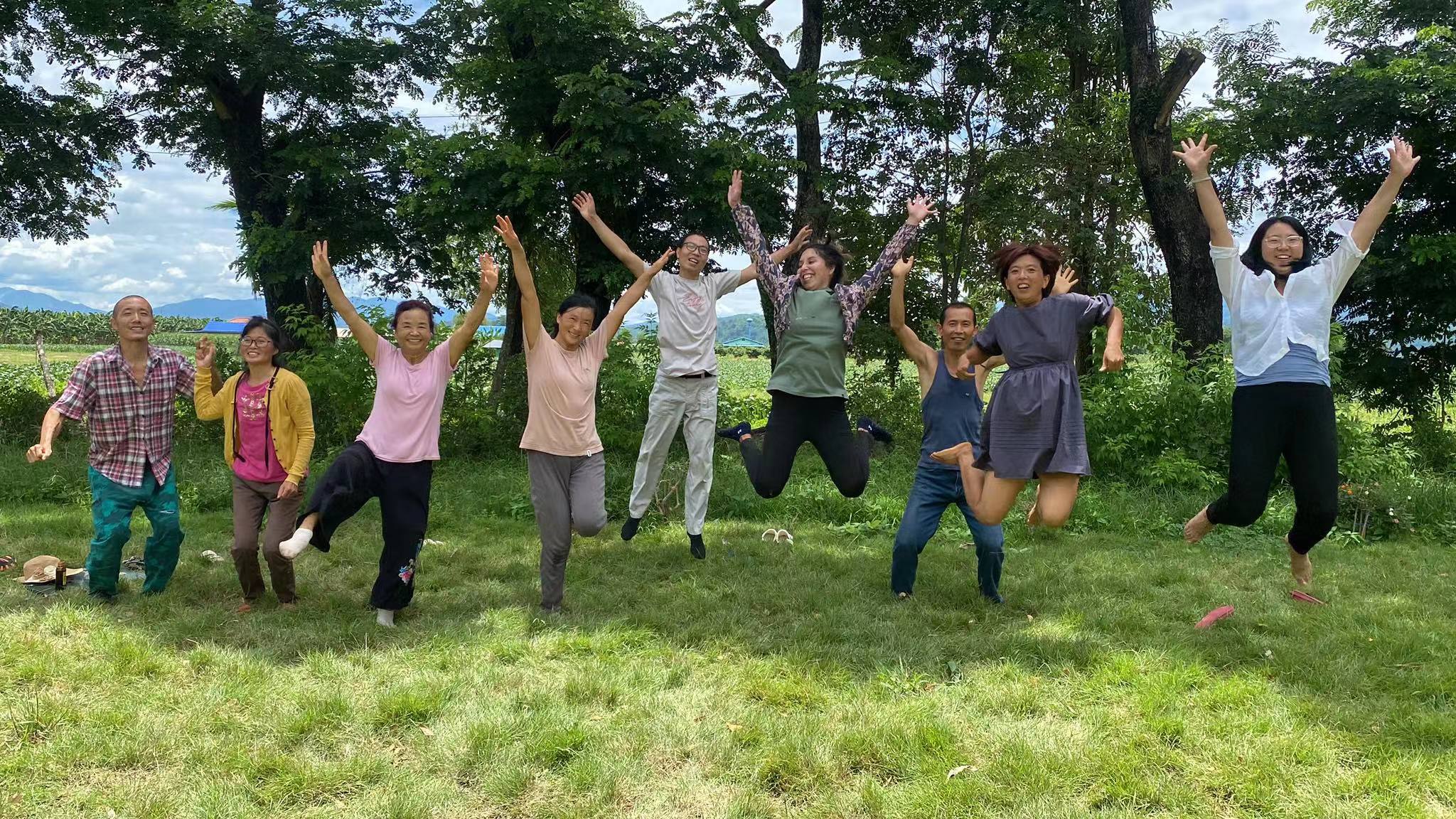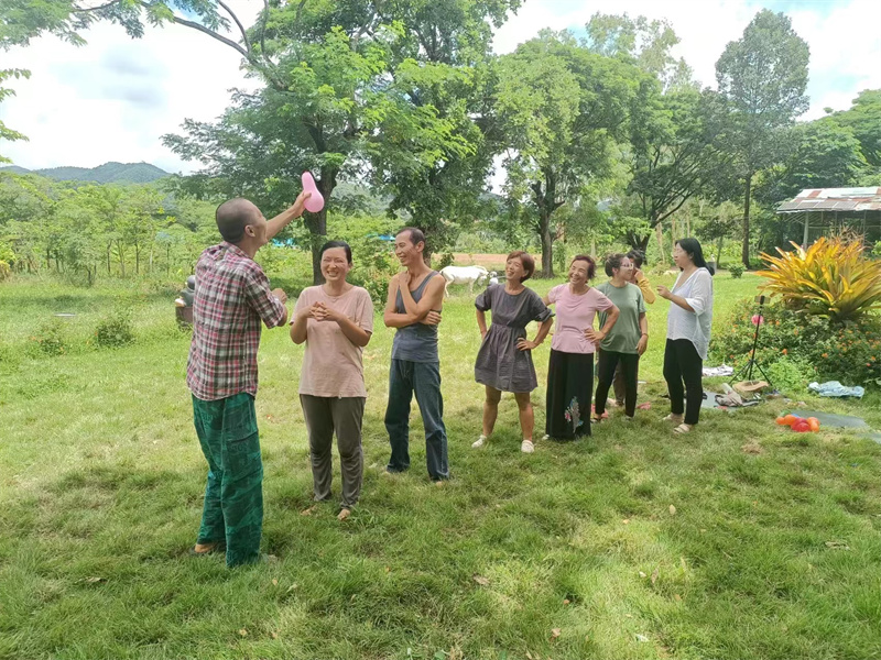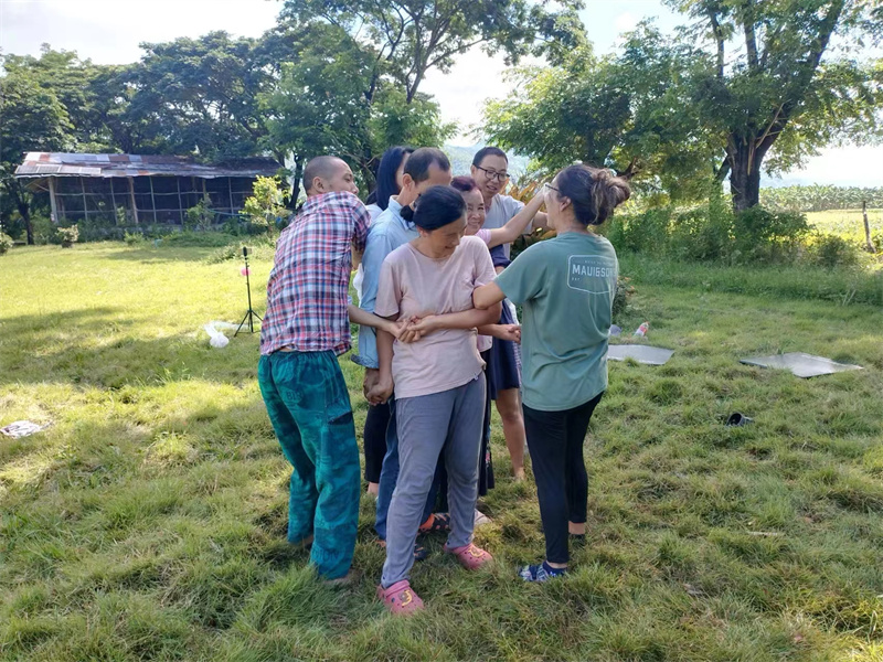 Following the successful gaming event in Thai Home last June, the July gaming activities were hosted by Yang Le. This time, besides us eight members and our friends， the monk Anan, the Chilean girl, Maria, also participated. Together, we played games such as "Snatch the Shoe," "Throwing Sandbags," "Find the Leader," "Unlock the knot," "Number Bomb," "Badminton," "Balloon of Luck," and "Eating Cucumbers." During the games, Maria also led us in spontaneous and lively Latin dance. Under the blue sky, white clouds, and on the green grass, with horses leisurely accompanying us, a group of children played joyfully and happily. Thanks to Yang Le's creative ideas and the well-organized games, the advantages of the Thai Home community model became even more apparent, spreading the joy of community life to more friends who came to experience it.