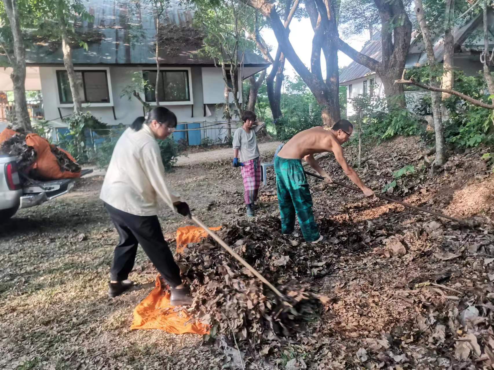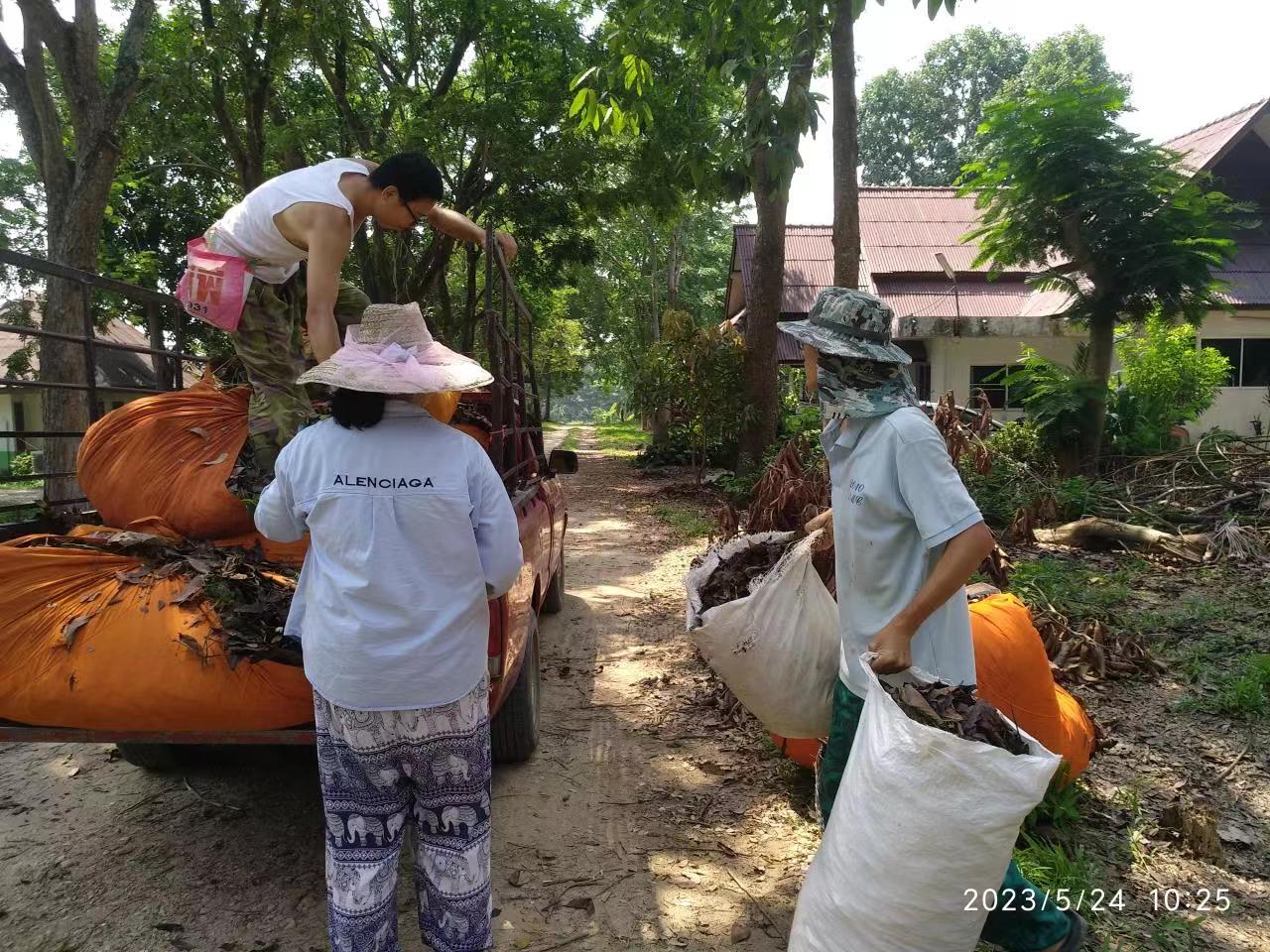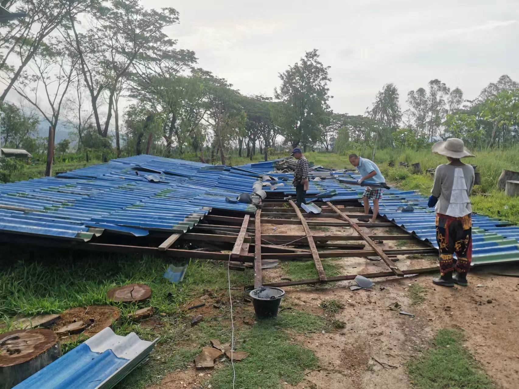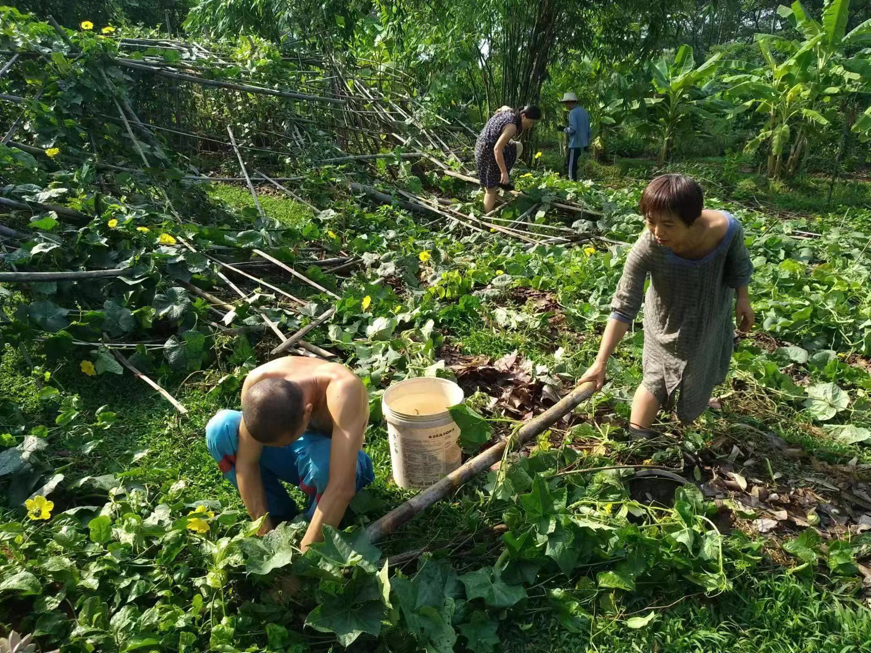 This month, there were several storms in Thailand branch, two vegetable shelves near the kitchen collapsed in the strong wind. With everyone's effort, four concrete pillars were re-erected for one of the shelves, The entire collapsed shelf was straightened and re-fixed on the concrete pillar. The other shelf could not be rescued. We removed the original vegetable seedlings, and replanted pumpkin seedlings. The occasional episodes in life may seem tricky, but relying on collective wisdom and strength, they can be easily resolved.