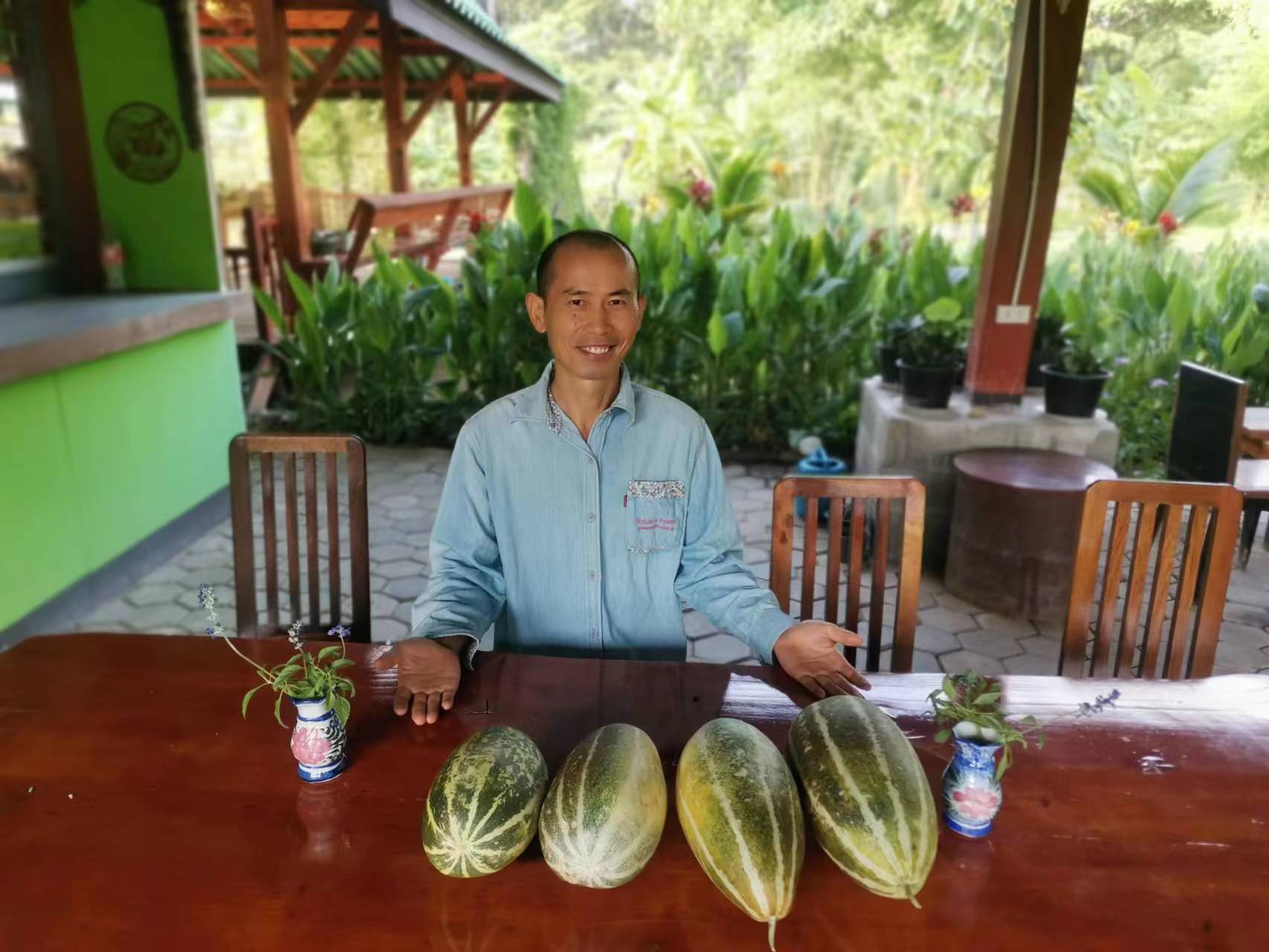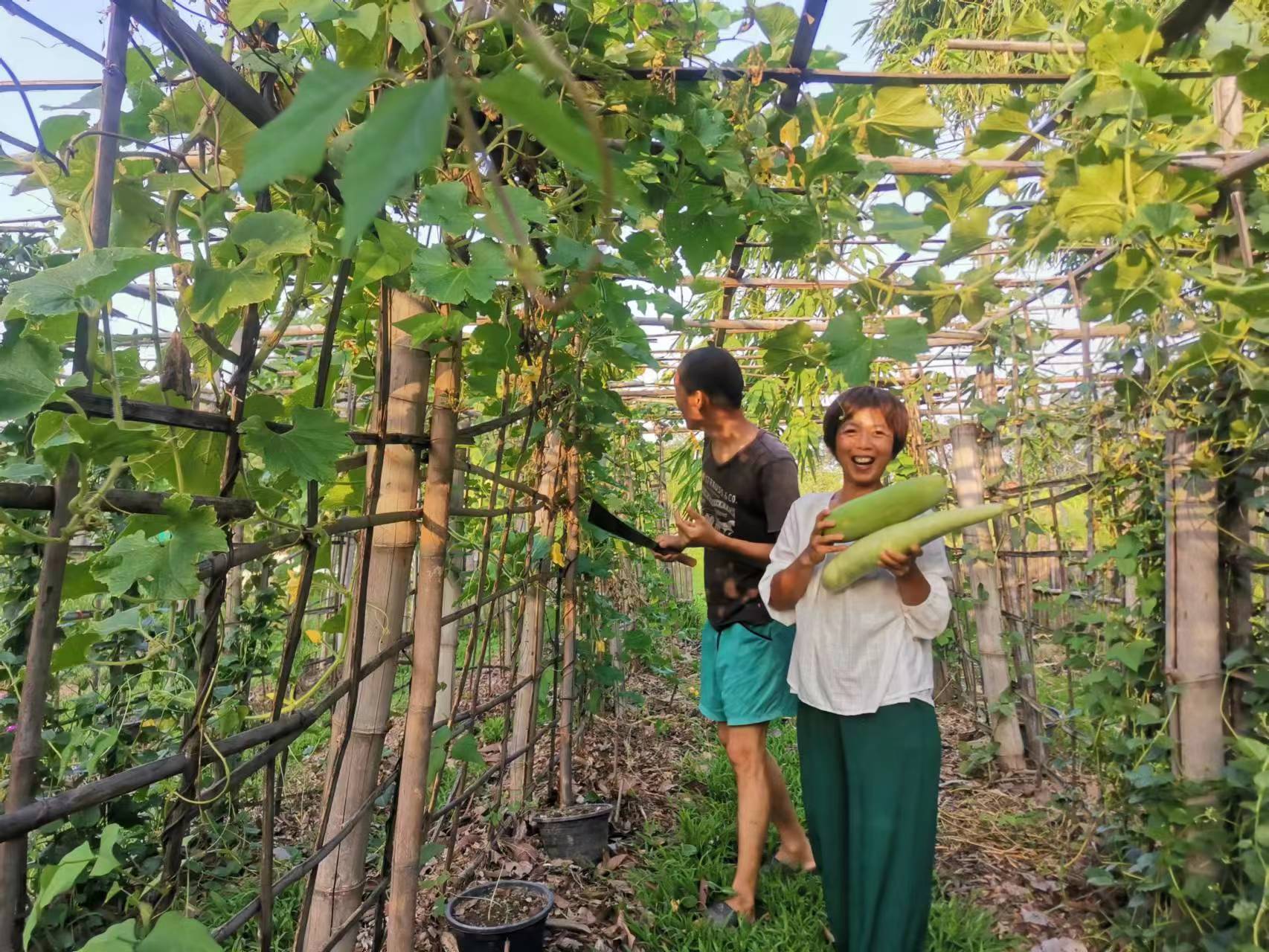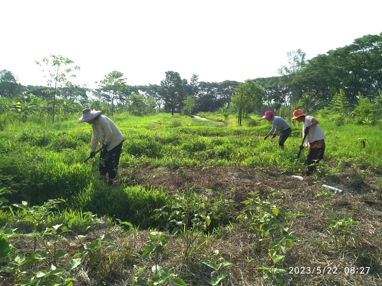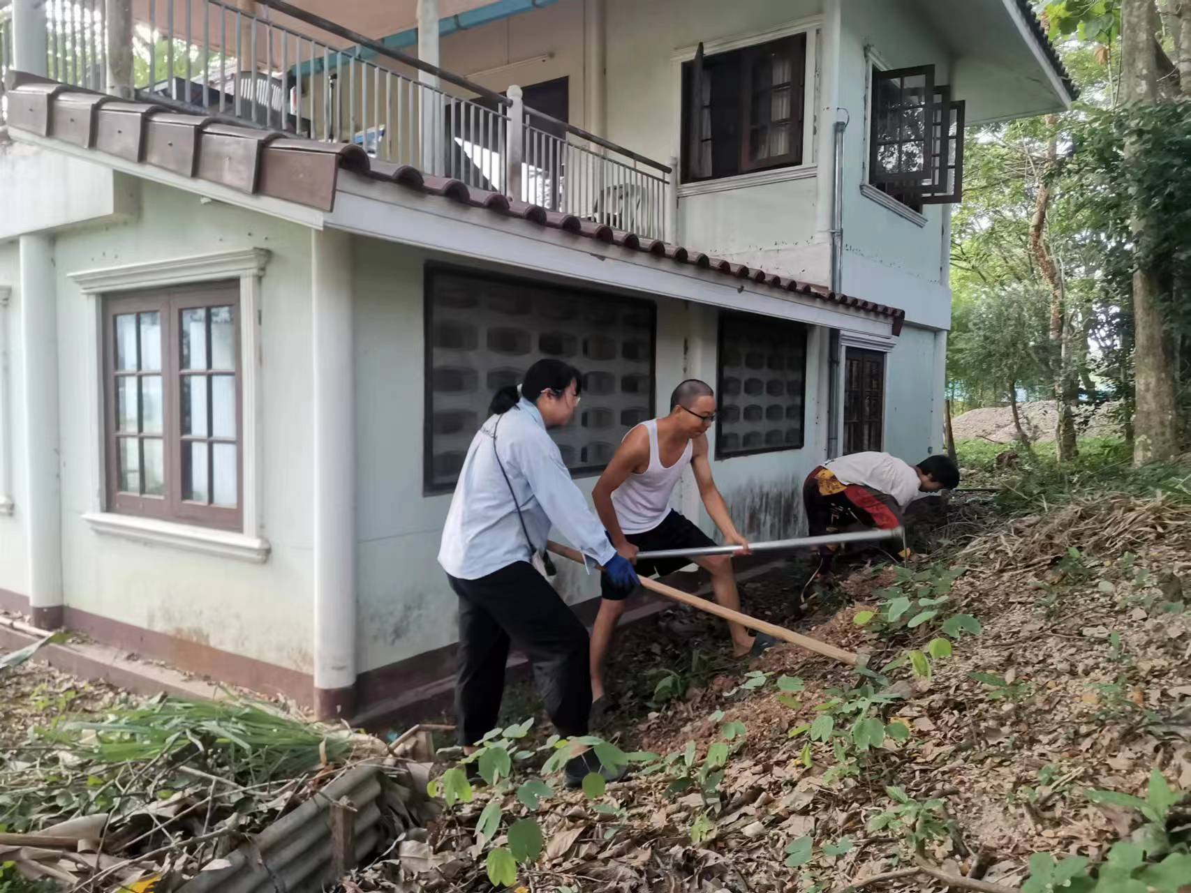 This month, there were several storms in Thailand branch, two vegetable shelves near the kitchen collapsed in the strong wind. With everyone's effort, four concrete pillars were re-erected for one of the shelves, The entire collapsed shelf was straightened and re-fixed on the concrete pillar. The other shelf could not be rescued. We removed the original vegetable seedlings, and replanted pumpkin seedlings. The occasional episodes in life may seem tricky, but relying on collective wisdom and strength, they can be easily resolved.