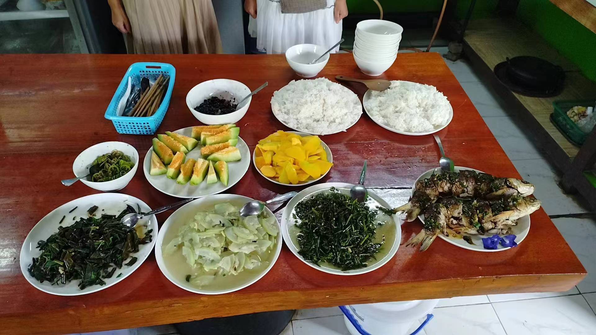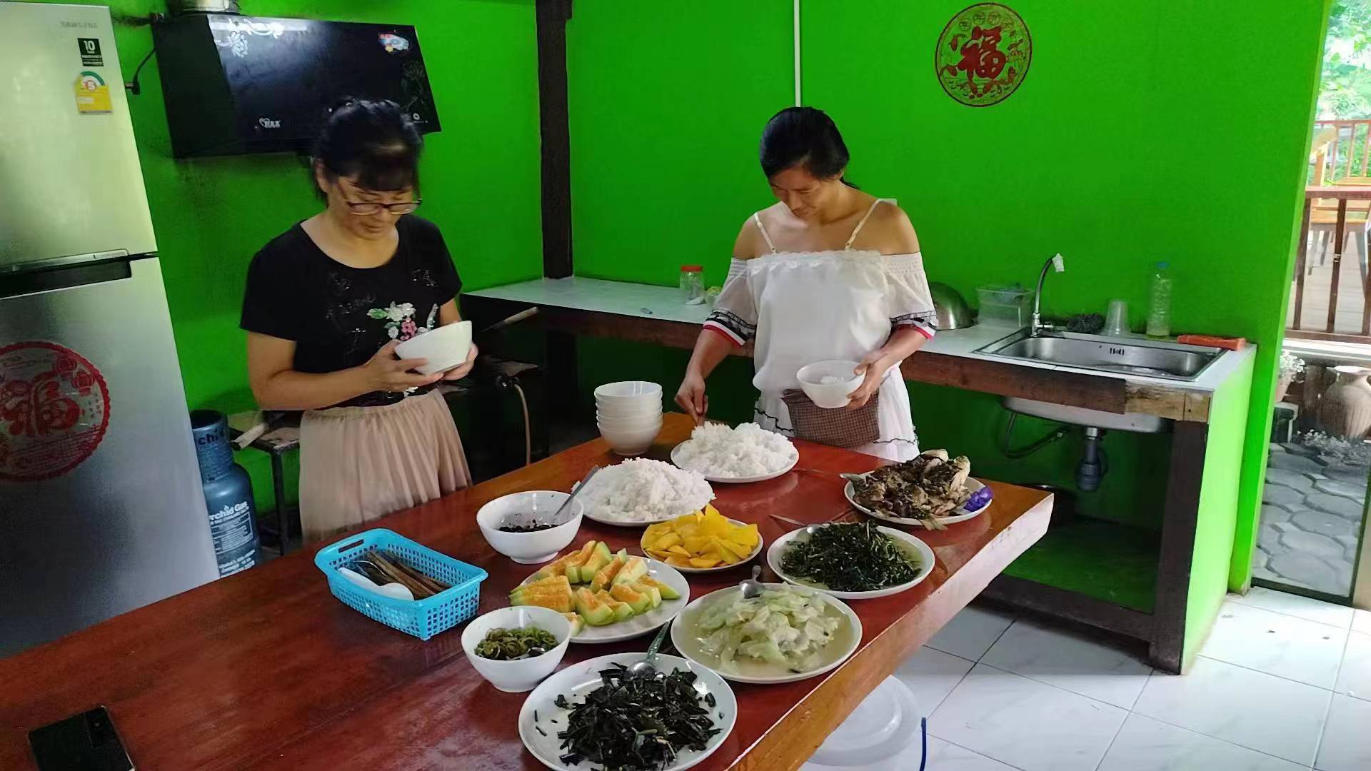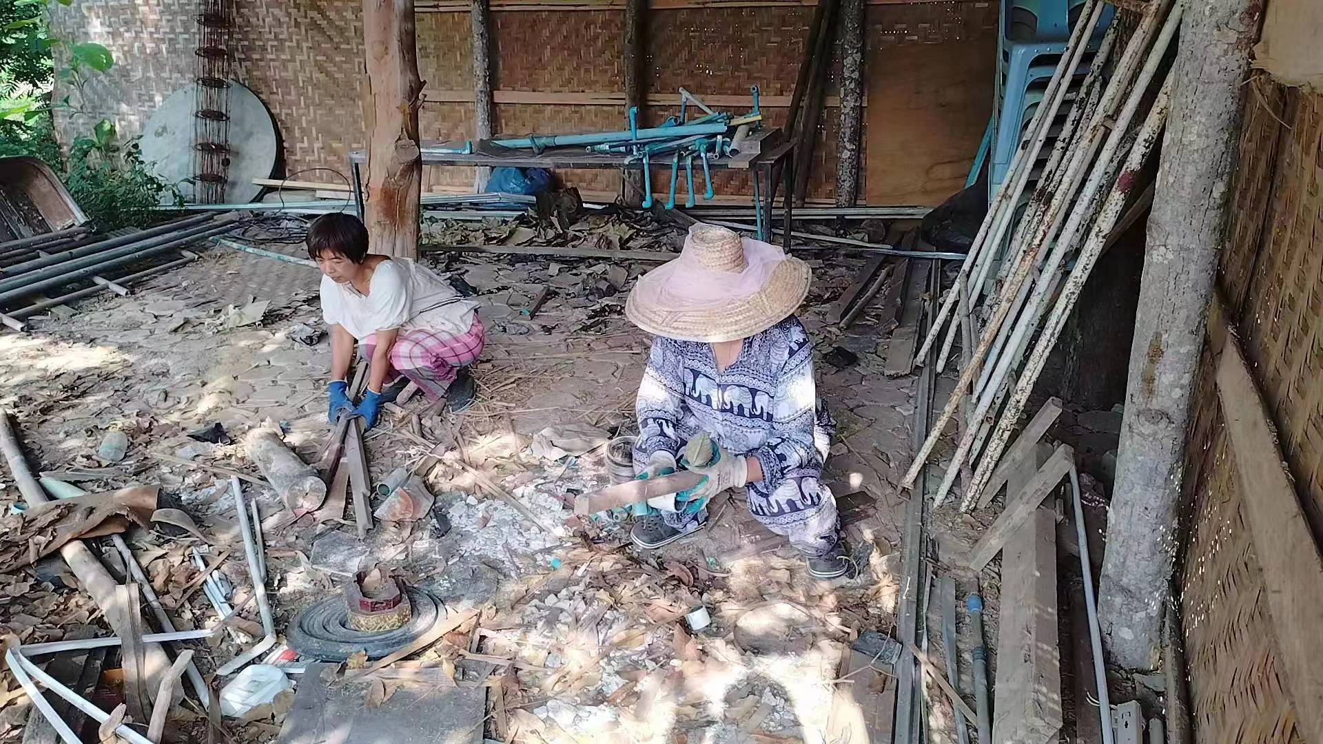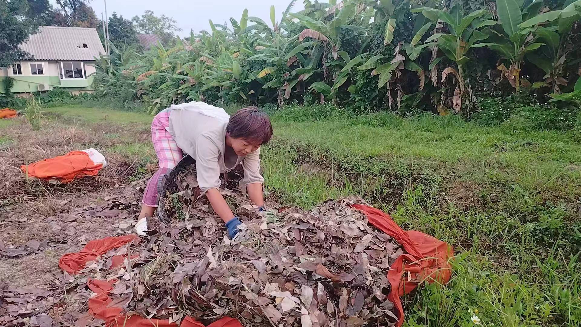 This month, there were several storms in Thailand branch, two vegetable shelves near the kitchen collapsed in the strong wind. With everyone's effort, four concrete pillars were re-erected for one of the shelves, The entire collapsed shelf was straightened and re-fixed on the concrete pillar. The other shelf could not be rescued. We removed the original vegetable seedlings, and replanted pumpkin seedlings. The occasional episodes in life may seem tricky, but relying on collective wisdom and strength, they can be easily resolved.