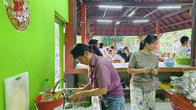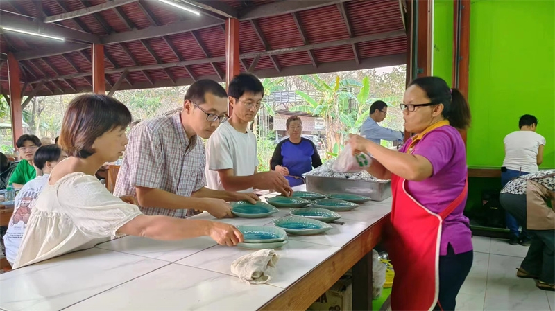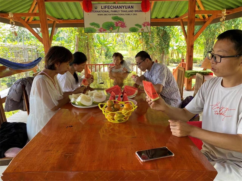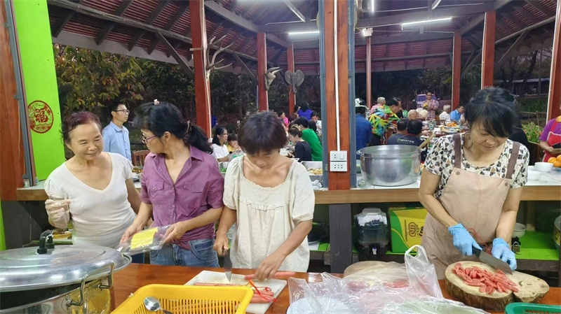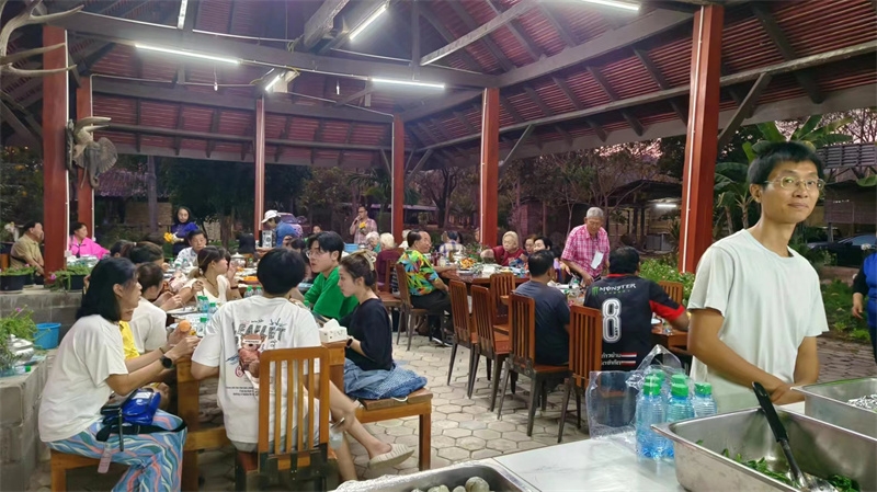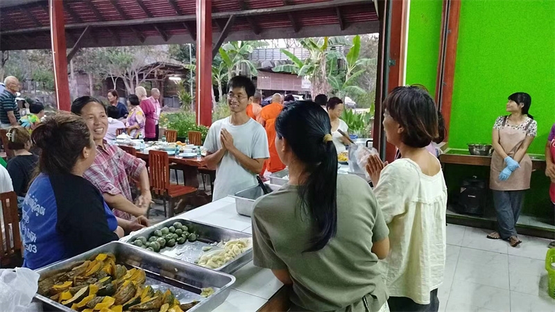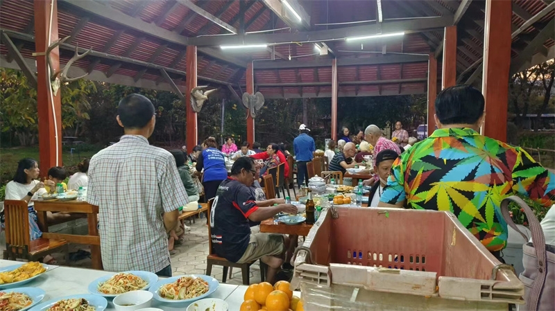 On the 23rd, the Abbot of temple were set to host 50 guests from Bangkok at the garden Restaurant for dinner. On the evening of the banquet, the temple chefs transported the prepared dishes to the garden. Brothers and sisters assisted the chefs in serving the guests, handling tasks such as setting up utensils, plating side dishes, serving water and food, and taking care of dishwashing and cleaning. The collaborative effort lasted nearly 5 hours, with everyone exuding joy and warmth.