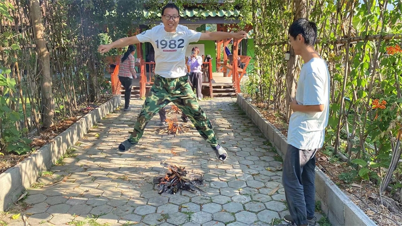 On the Chinese Lantern Festival, the temple organized an event where a donor provided blankets for everyone. Abbot invited each one of us to receive blanket, and after the ceremony, everyone shared various fruits offered during the event. The Lantern Festival festivities reached a climax with the lighting of three bonfires in our garden, during which everyone leaped over the bonfires and we also shared the stories of three bonfires with YouTube fans and visitors from Israel.