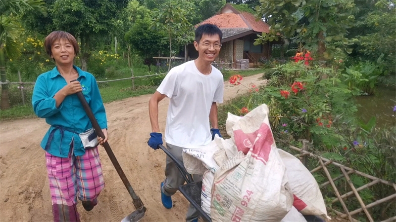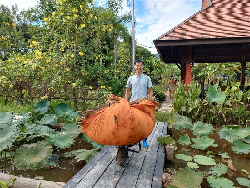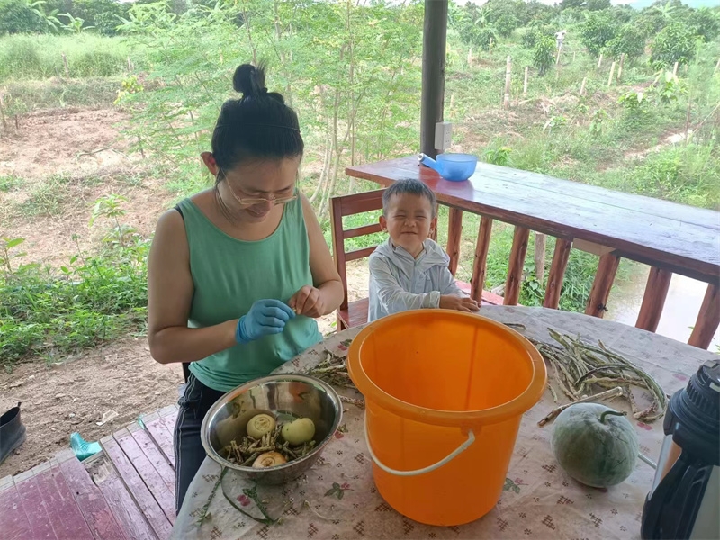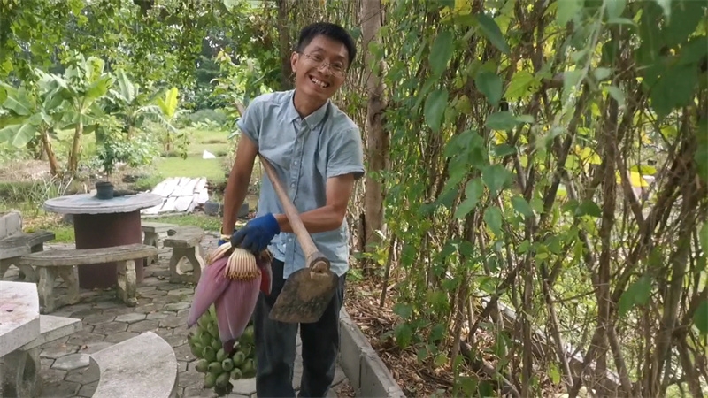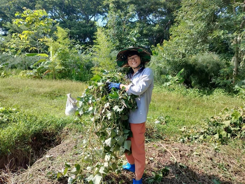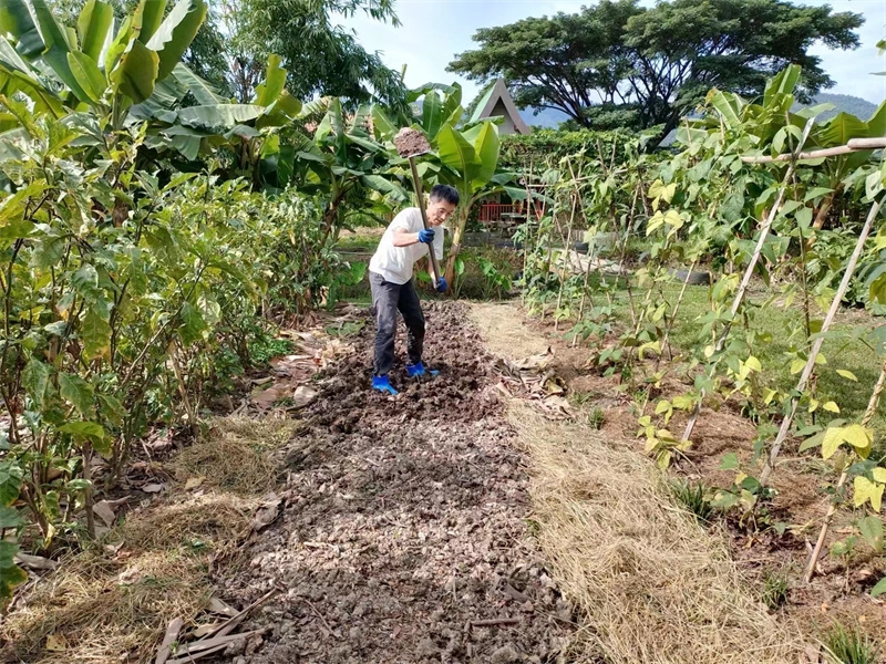 The three members of the Mango Garden family, along with little Deng Deng, cleared land and planted banana trees. They also created three ecological planting beds and enjoyed practicing their favorite ecological planting methods. We are happy for Yan Qian and Dengdeng,they have adapted to and fallen in love with the life in the Thailand branch.