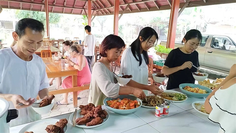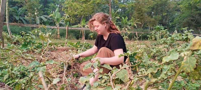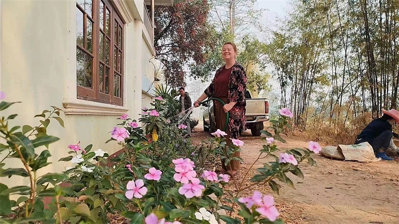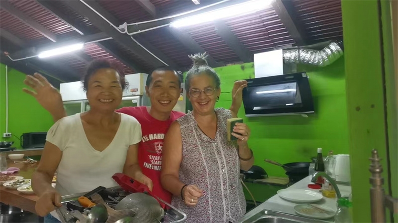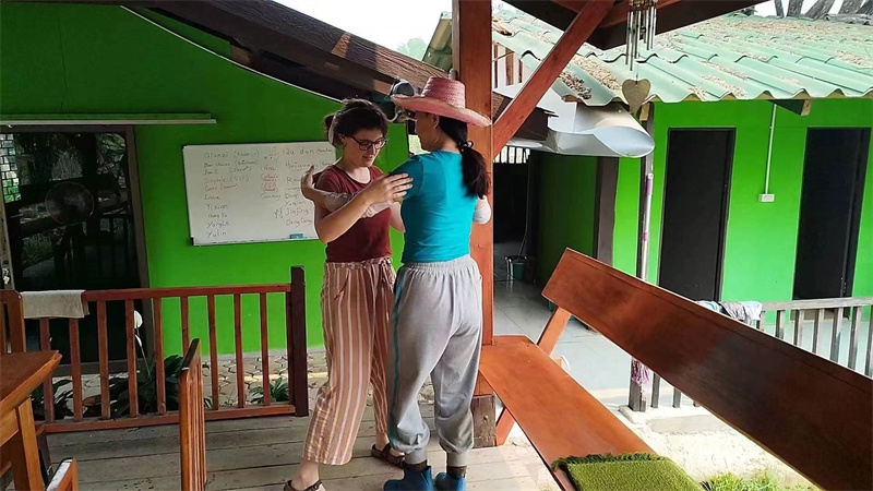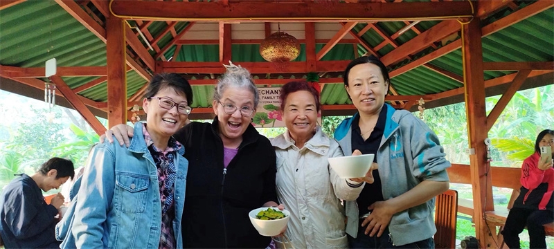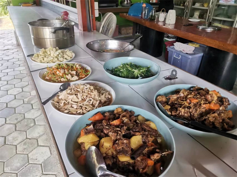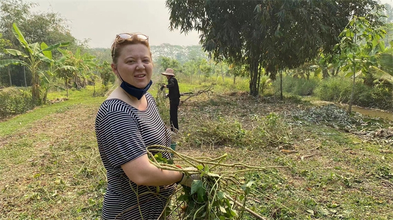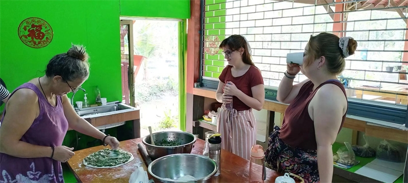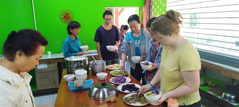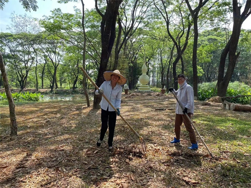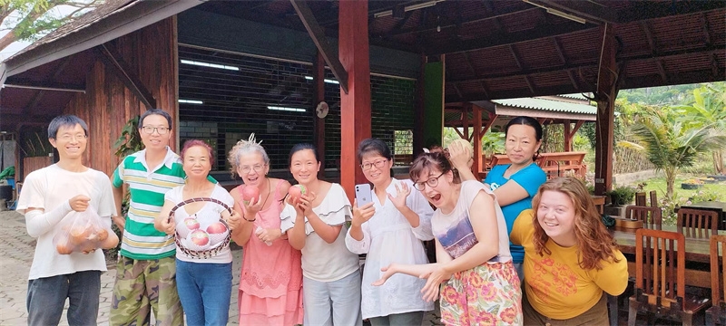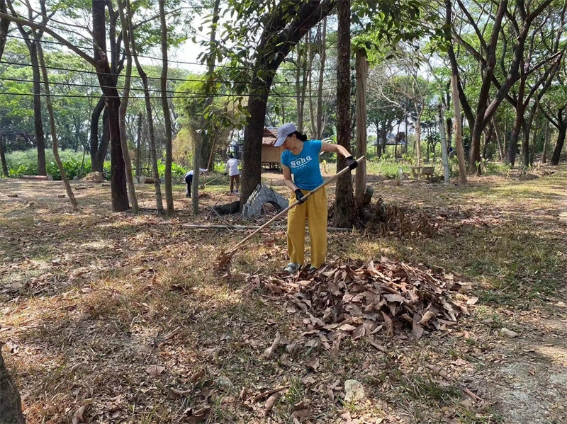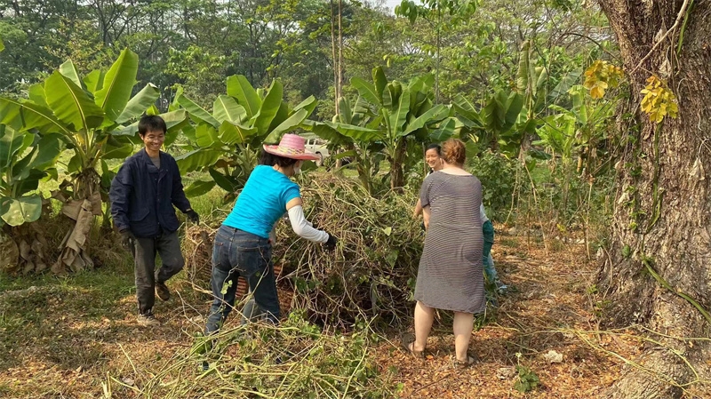Sophie has been helping Yu Lin in the kitchen, while the other two girls have been joining our members in rural chores. These days, we all worked together to dismantle the old, leaning bean frame. After some diligent cleaning and tidying, the surroundings of the dining area have become even fresher and more pleasing to the eye. We also collaborated on making compost with tree leaves and helped the workers harvest corn stalks to feed the animals in the yard.Shangfa sister helped Qianzi manage the flowers, while Rou Mei and Qu Mei, the two gardening experts, diligently worked in the vegetable garden every day. In addition to various vegetables, we also planted grains such as corn, red beans, and black beans. The arrival of Rou Mei brings us one step closer to self-sufficiency in Thailand's sanctuary.