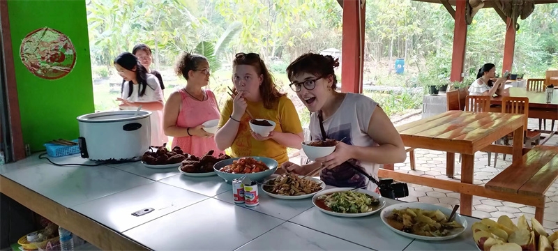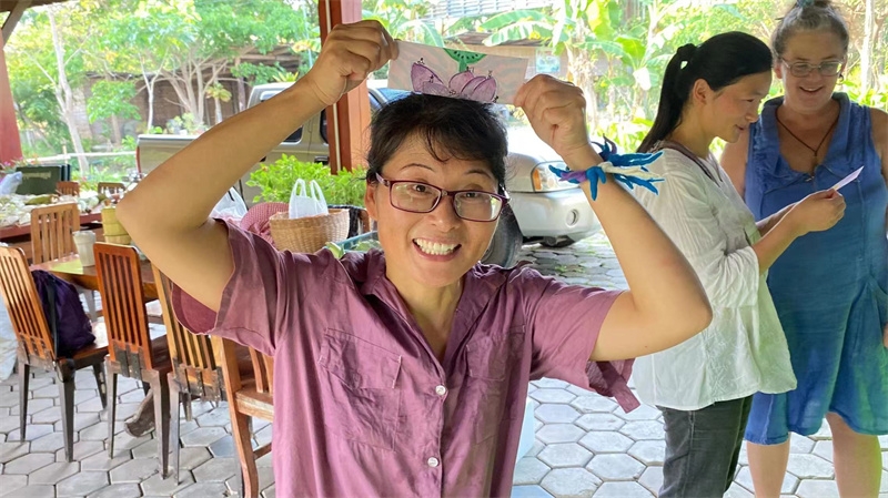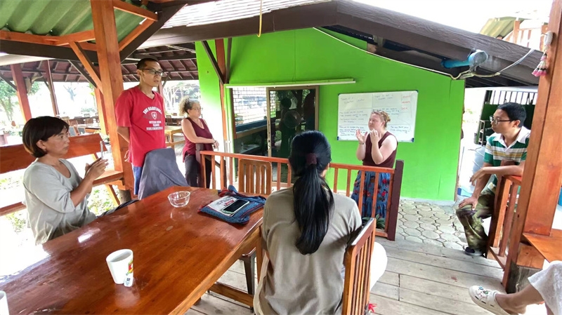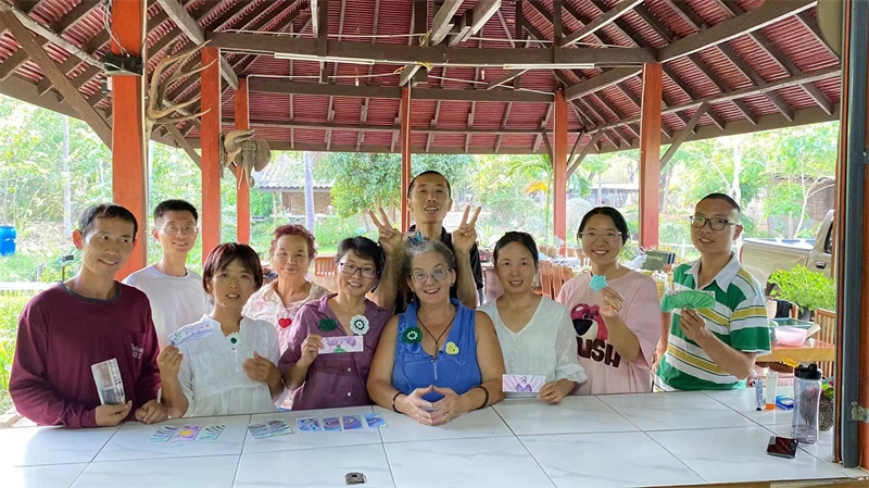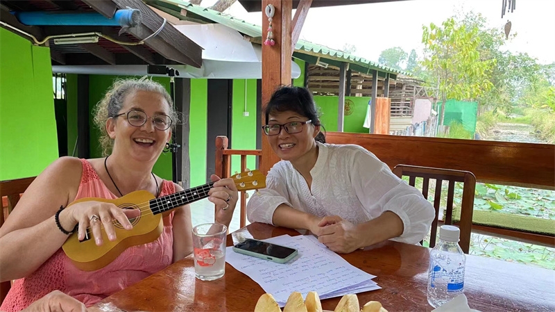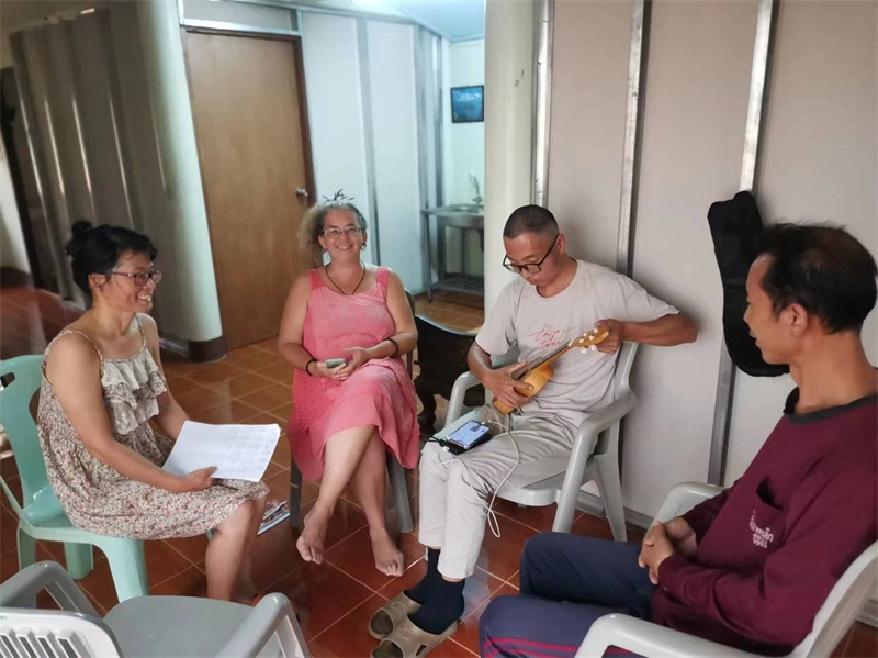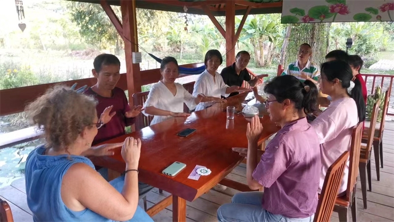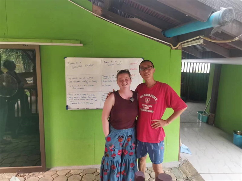 The arrival of visitors has infused the sanctuary with an international family atmosphere, allowing siblings to practice English and gradually become familiar with Western personalities and thought patterns. We also learned new things from our guests. For example, the American girl shared a course on improving communication efficiency between people, emphasizing that disputes arise from the desire for others to adopt our perspectives. She stressed the importance of stepping down from our egos to understand others, fostering elegant, warm, and effective communication. Sophie shared with us how to solve life's problems using the "Six Thinking Hats" method, encouraging us to wear different-colored hats representing optimism, constructive suggestions, passionate imagination, objective statements, warnings, and more, to expand our thinking. Sophie, being a musician, generously taught us how to play the ukulele, African drums, and dance African dances. The night before Jena and Lissie left, we spontaneously organized a heartwarming and joyful music concert!