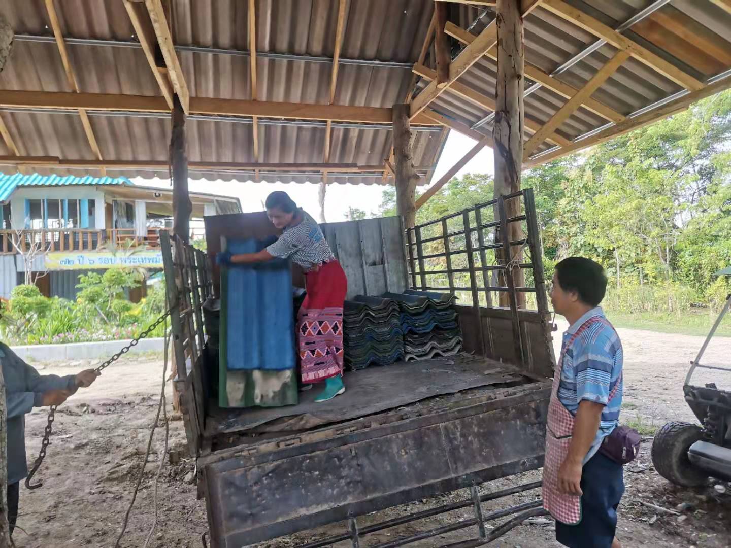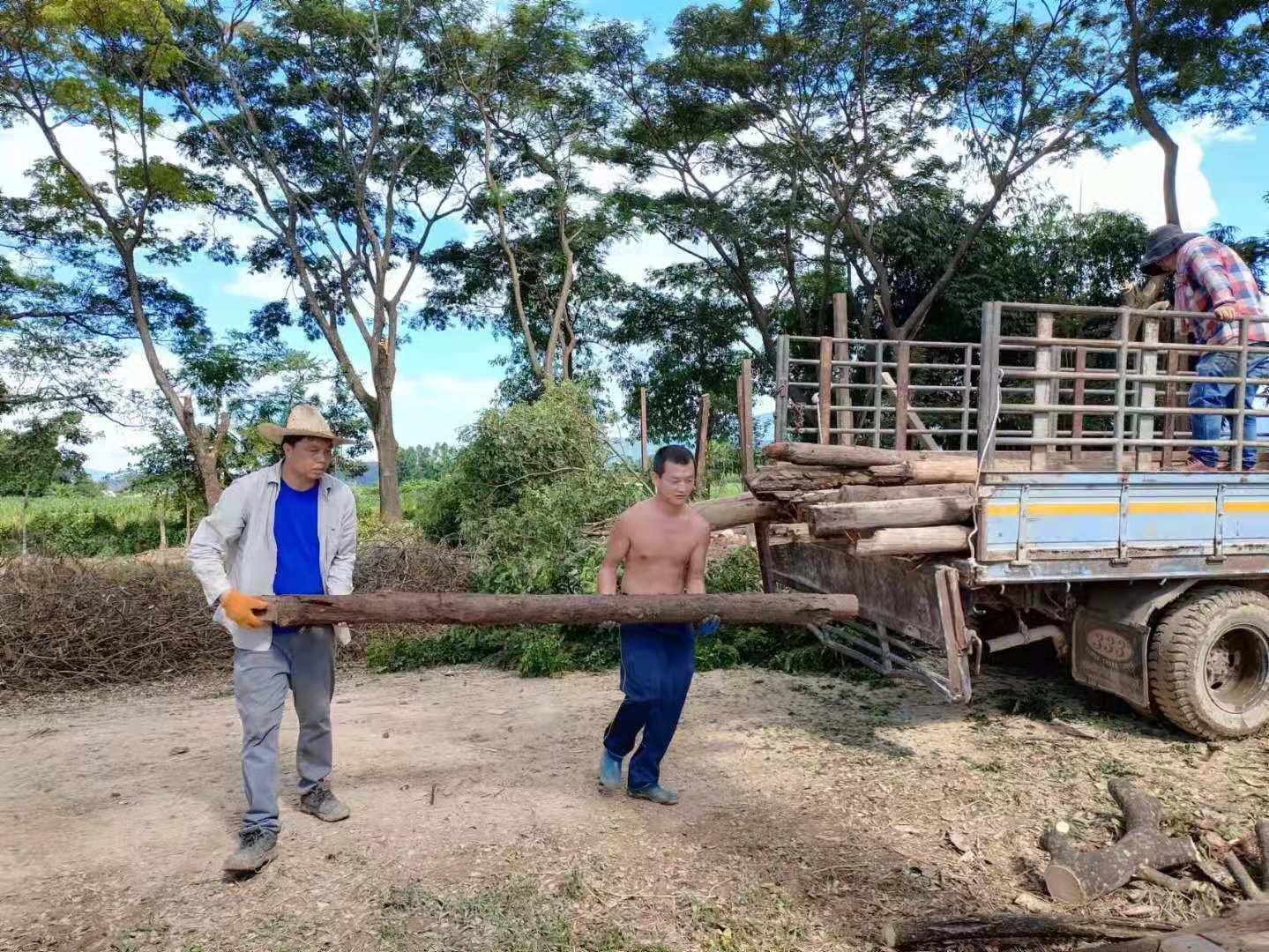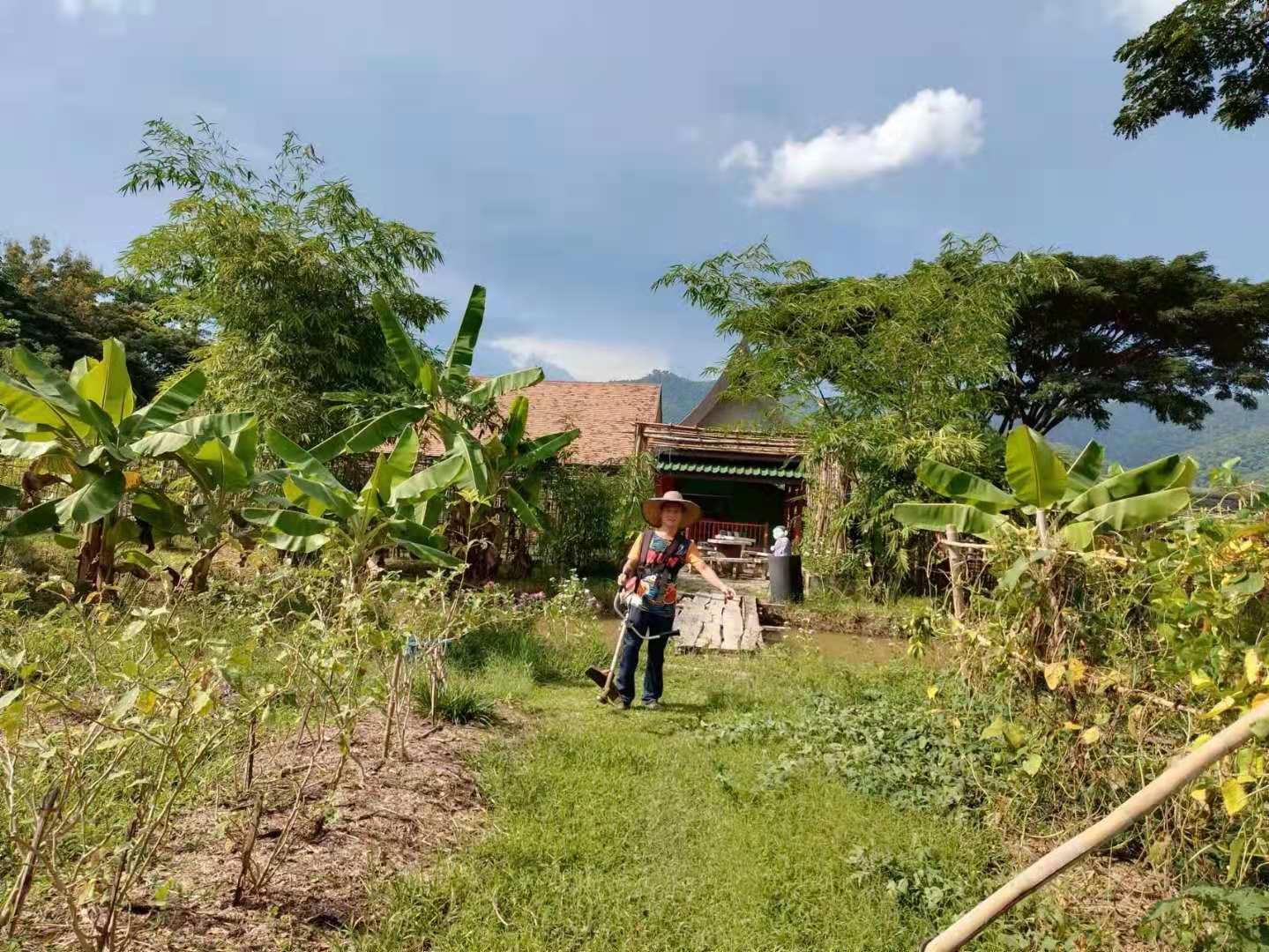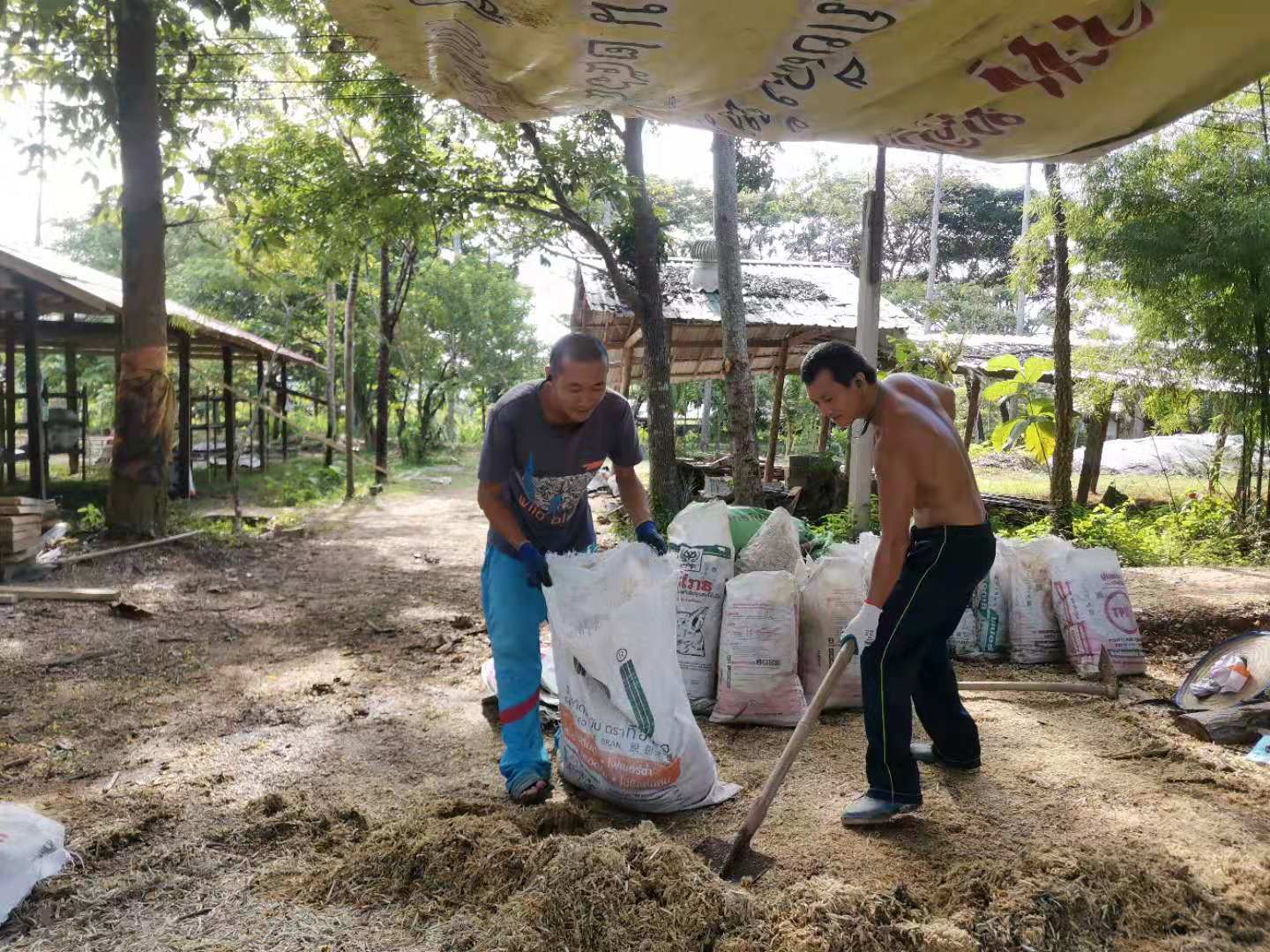 Recently, under the construction of the workers, the nursery room was completed.The Abbot let bring back several trucks of old wooden boards, tiles and furniture from temples in Chiang Mai and Bangkok. We helped unload the trucks with the workers for a few days. Yang Le and Hui Yi helped to pull soil and pave the path, transport fertilizer and transplant trees with the workers. In addition, they also helped to load sawdust and straw, and did mulch for the garden.Have been doing the heavy physical work for several days in a row, may brothers not be too tired.
