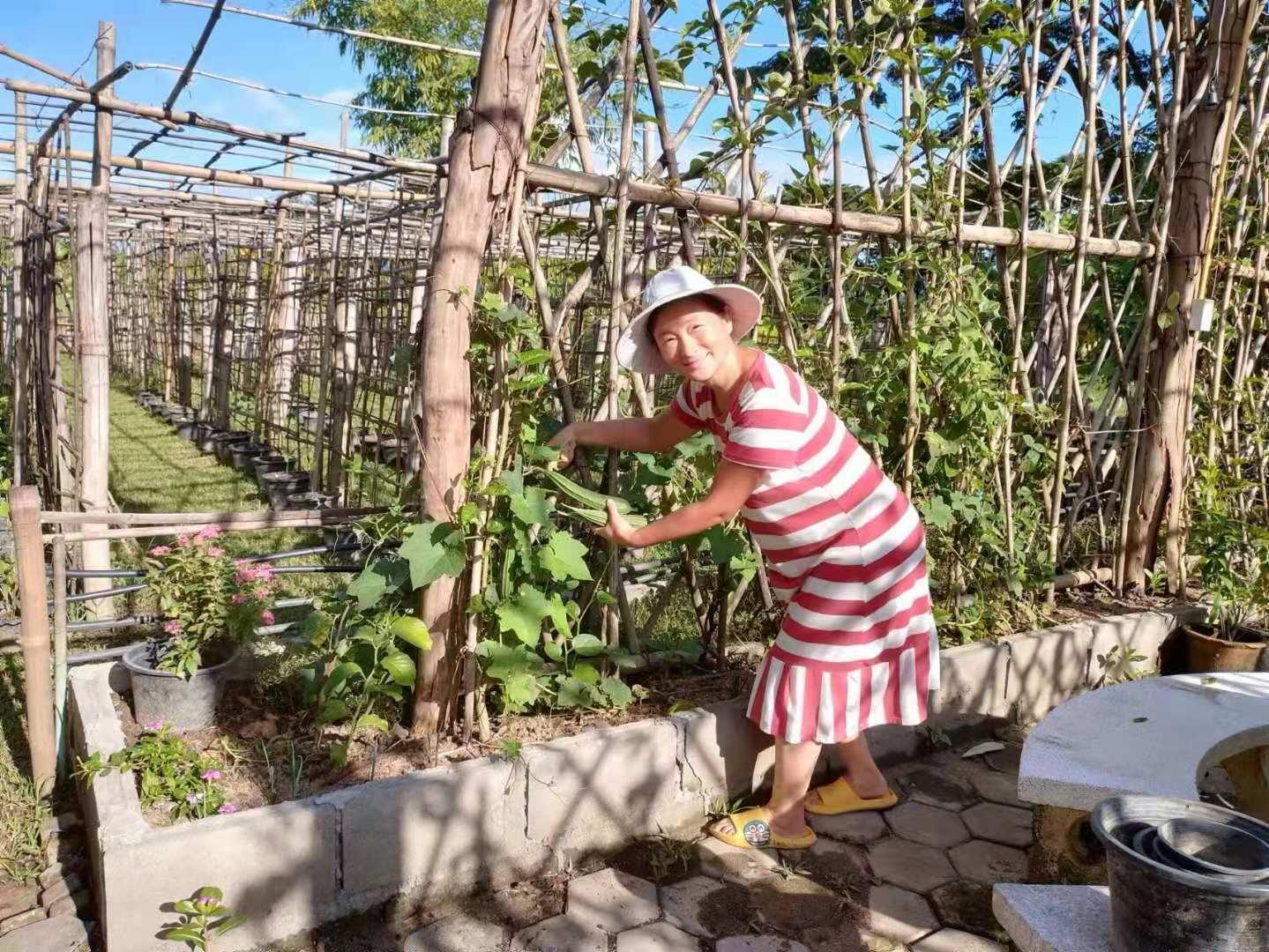 There is too much rain in the rainy season, and the plants planted directly in the ground are at risk of being flooded. The soil is placed in a large flower pot, and long beans, tomatoes and cucumbers are planted. I hope after height is increased they can pass the rainy season smoothly.