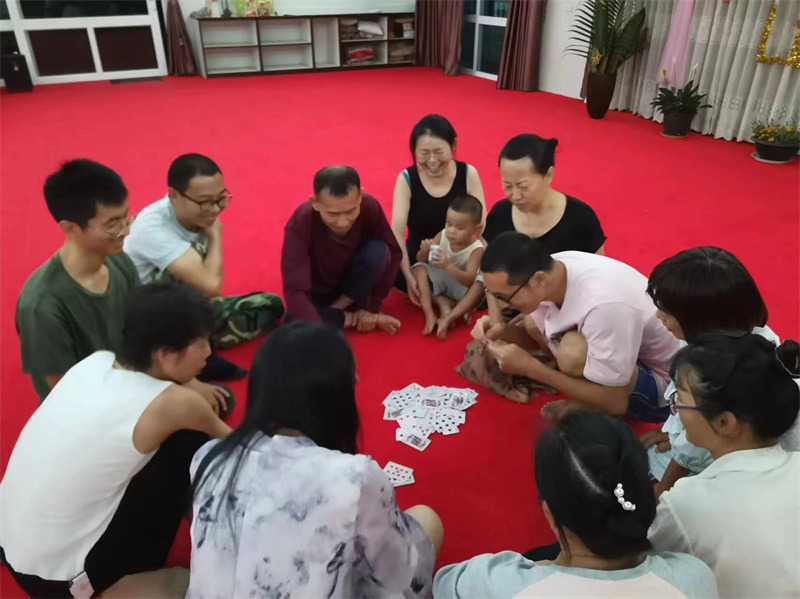 As sister Shangfa is about to leave, in order to make her happier and leave no regrets in the community, Yangle arranged for everyone to play the card game  In the game, the players who win can freely create artistic designs on the faces of the losers using colored pens.