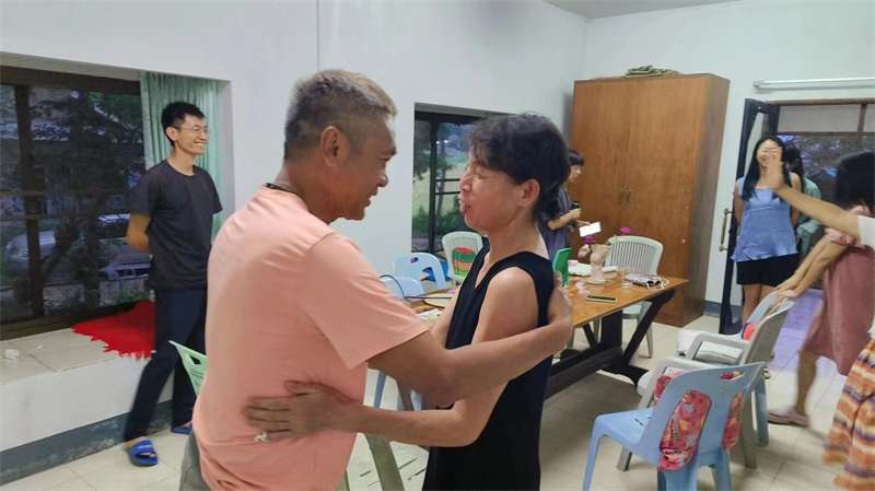 Brother Gesang spent two weeks experiencing life in the Thai community. He needed to temporarily leave the community and return to Myanmar to handle some post-sale house matters. On June 15th, Yangle drove Gesang to the Thai-Myanmar border along with Yixian and Dengdeng. On the eve of his departure, each brother and sister hugged him goodbye. In just two short weeks, everyone had grown fond of this humble, kind, and warm-hearted brother, and they were reluctant to see him go. They hoped he could resolve his matters and return to the community to reunite with his loved ones soon.