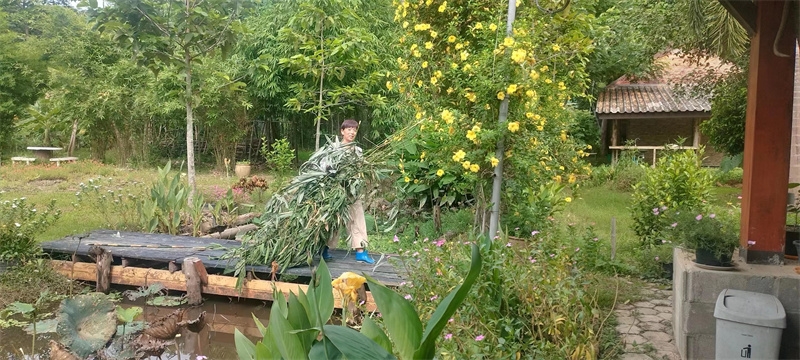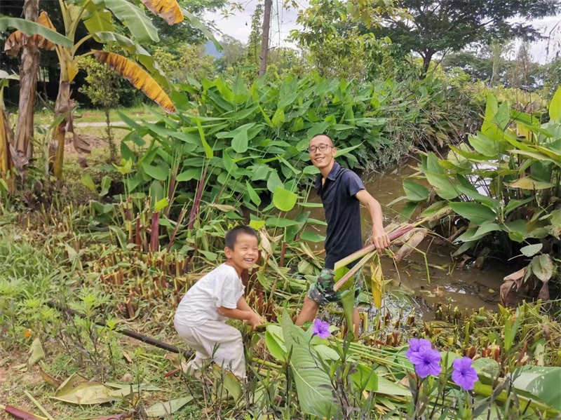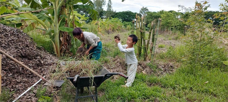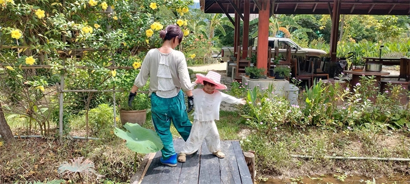 Dengdeng moved from the Mango Garden to the Gongde Garden, and his arrival has brought much joy to our lives. Currently, there isn't a designated family member to look after him full-time, so he sleeps with Mom Roumei or Dad Qudan at night and is watched flexibly by everyone during the day. Whoever is free while working outside will take him along to play and work. Dad Yangle is very attentive to his education, patiently teaching him to be polite, eat well, and cultivate a sense of saving food. To create a good learning environment for him, Yangle leads daily English learning sessions and even hosts poetry gatherings, immersing him in an international atmosphere and celestial culture from a young age. Everyone treats Dengdeng as a little Chanyuan Celestial, interacting with him based on the Chanyuan philosophy, respecting and caring for him. He is considered very sensible, adorable, and intelligent, and as long as adults handle things appropriately, he won't cause any trouble.