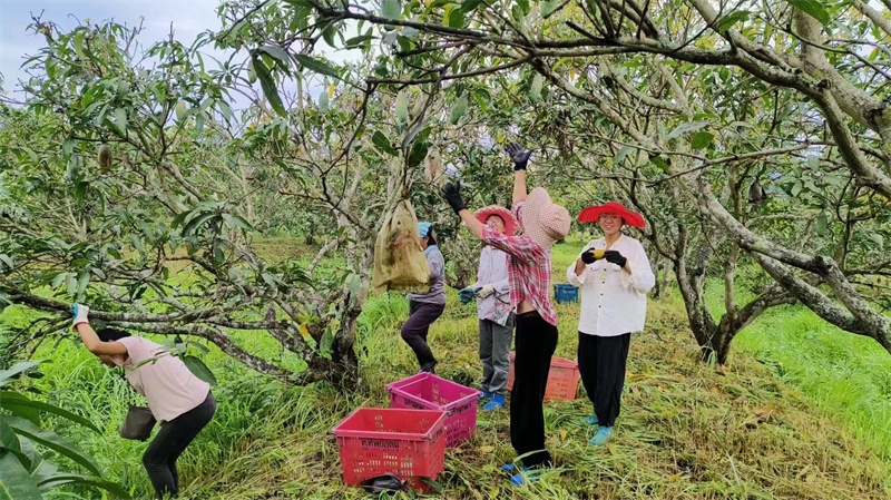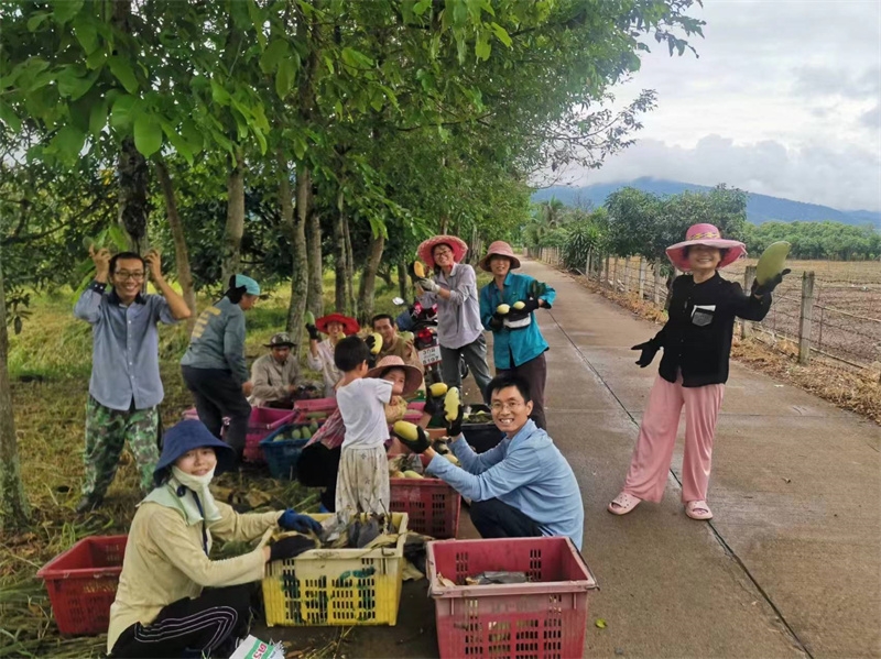 During mango season, everyone goes to the Mango Garden to pick mangoes! What used to be work for two or three people now feels like a fun group activity with many family members involved. Picking mangoes has become an easy and enjoyable game, where brothers and sisters enjoy the sweet taste of mangoes while chatting and laughing, quickly completing the harvesting task.
