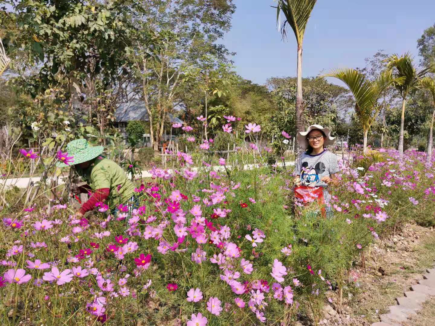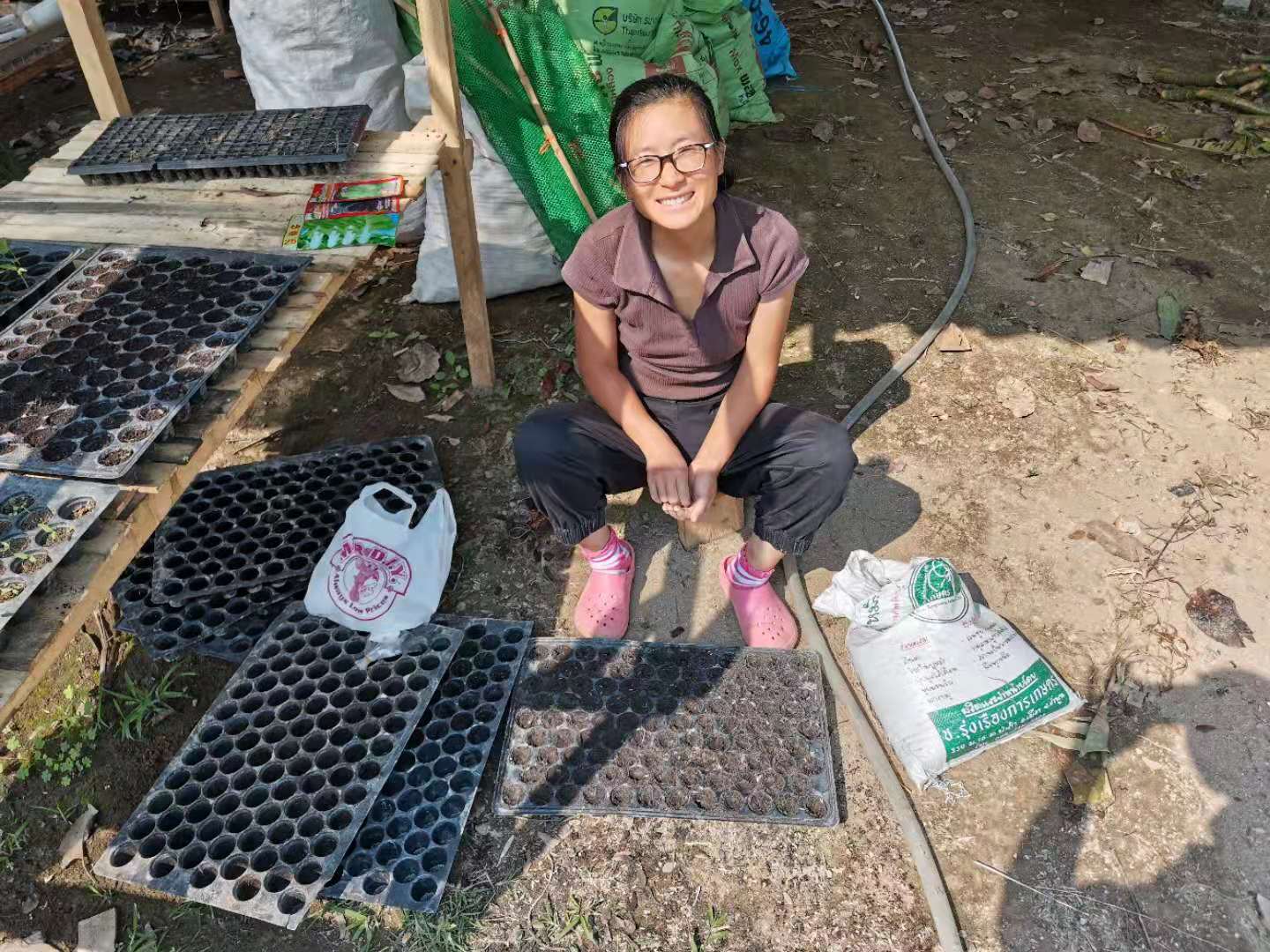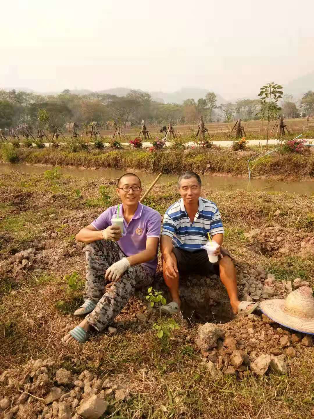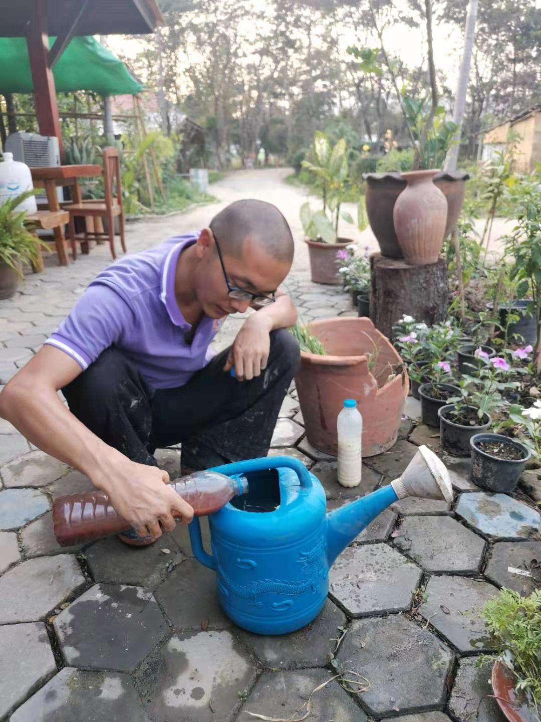 Recently, our main work is still planting flowers and trees to beautify the environment of the ecological garden. Because Huiguang brother went back to the the first branch to repair the water pump and build garage. Yang Le brother, the Chinese-speaking brother, and a young monk are digging holes to plant landscape trees and banana trees. Qianzi works with a Thai sister Lulu. She is kind and lovely, hardworking and simple.While working, she teaches Qianzi Thai. She likes to joke ,working with her,we laugh a lot. Excepting collective work with everyone,Yangle and Qianzi also find work they are interested in. Yangle likes composting,growing melons and planting fruit trees. Qianzi likes to grow flowers. We plan to gradually turn this place into a paradise full of melons, fruits and flowers.
