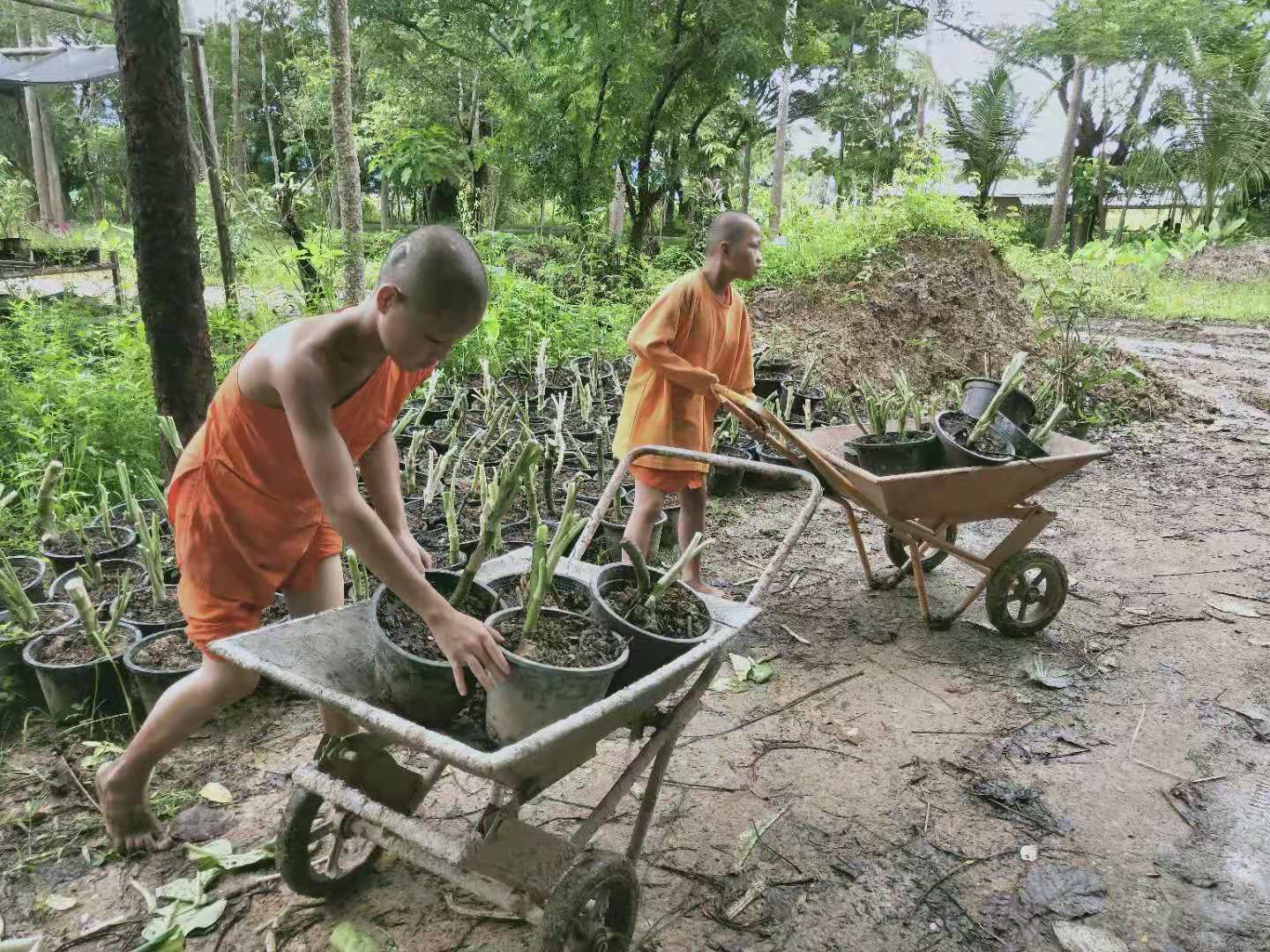 These days, the Abbot led the workers to continue to build the houses. Huiyi suggested that we spend more time helping Abbot build the house. Perhaps because of our high work efficiency, Abbot also likes to ask us to help, move tiles, build roads, unload soil to raise the terrain inside and outside the house.Doing simple physical work, everyone sweats a lot, and makes a lot of laughter as well.