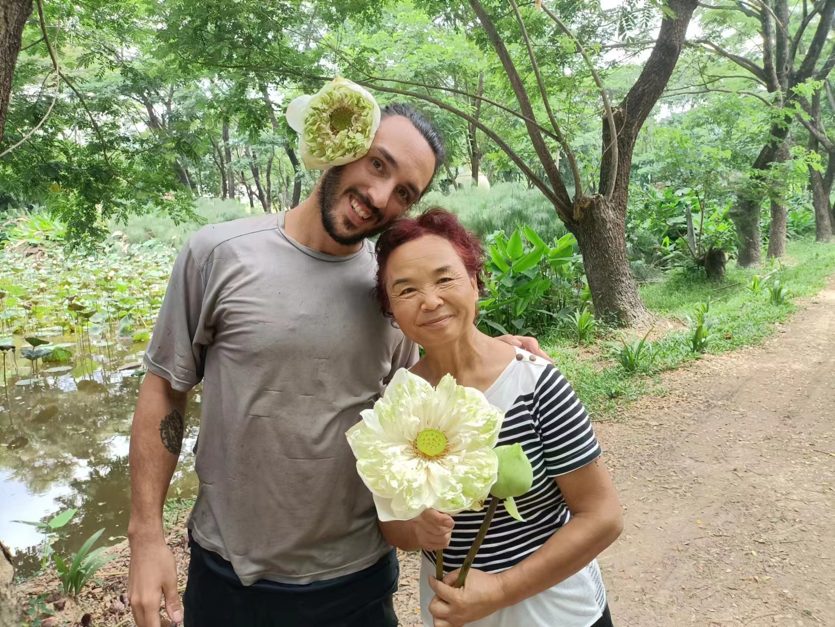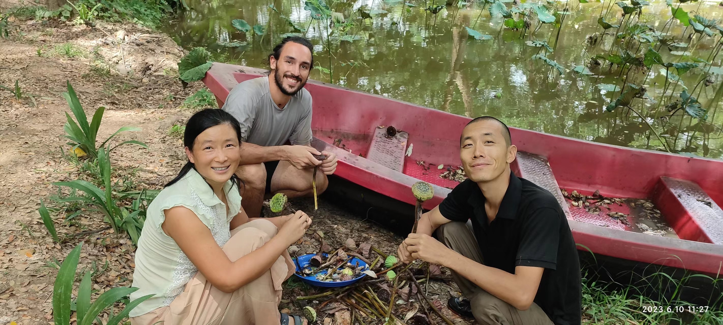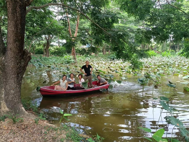 In the evening, we watched videos introducing our community and the new life mode. He praised our way of life as a perfect example of reality, not just a utopia. In our free time, we also went to the eighth floor of the temple to enjoy the beautiful clouds and mist in the mountains, and went boating in the lotus pond to pick lotus seeds.