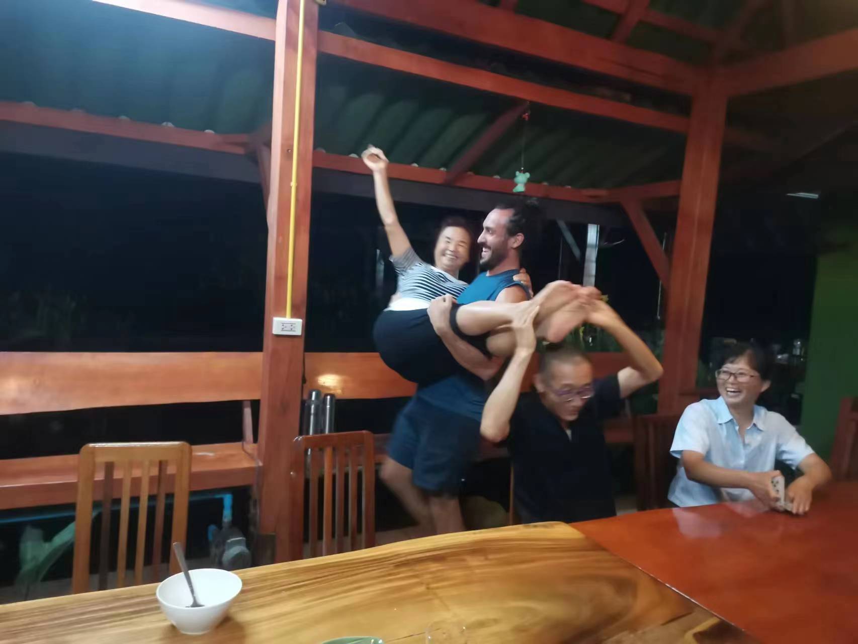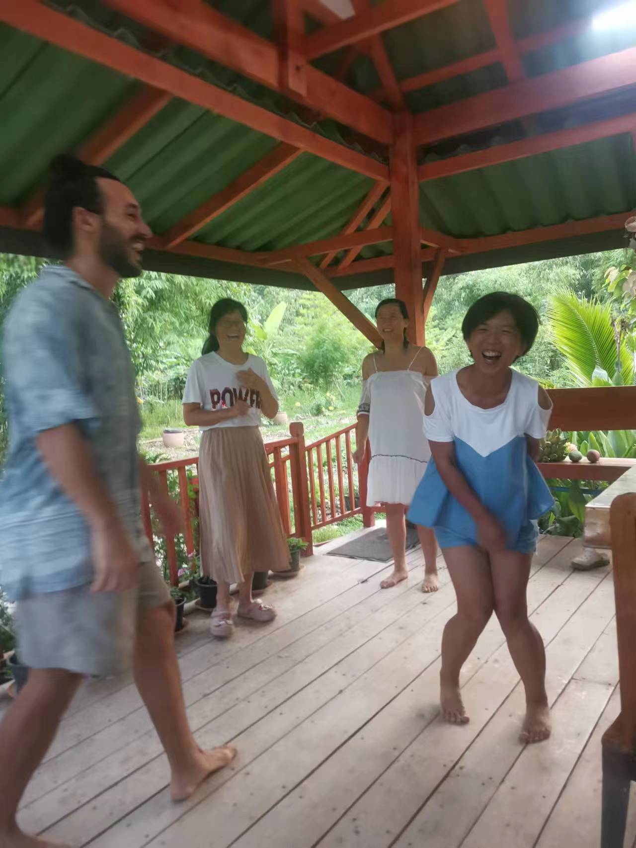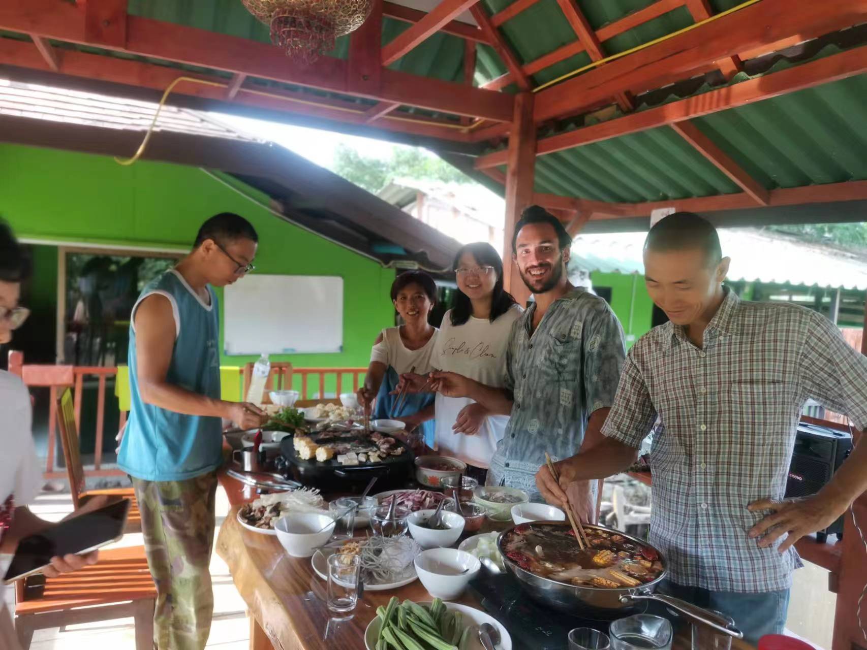 The night before he left, we had a hot pot barbecue party. Everyone sang, danced and played games. We had so much fun together, and we already treated him as one member of our big family.