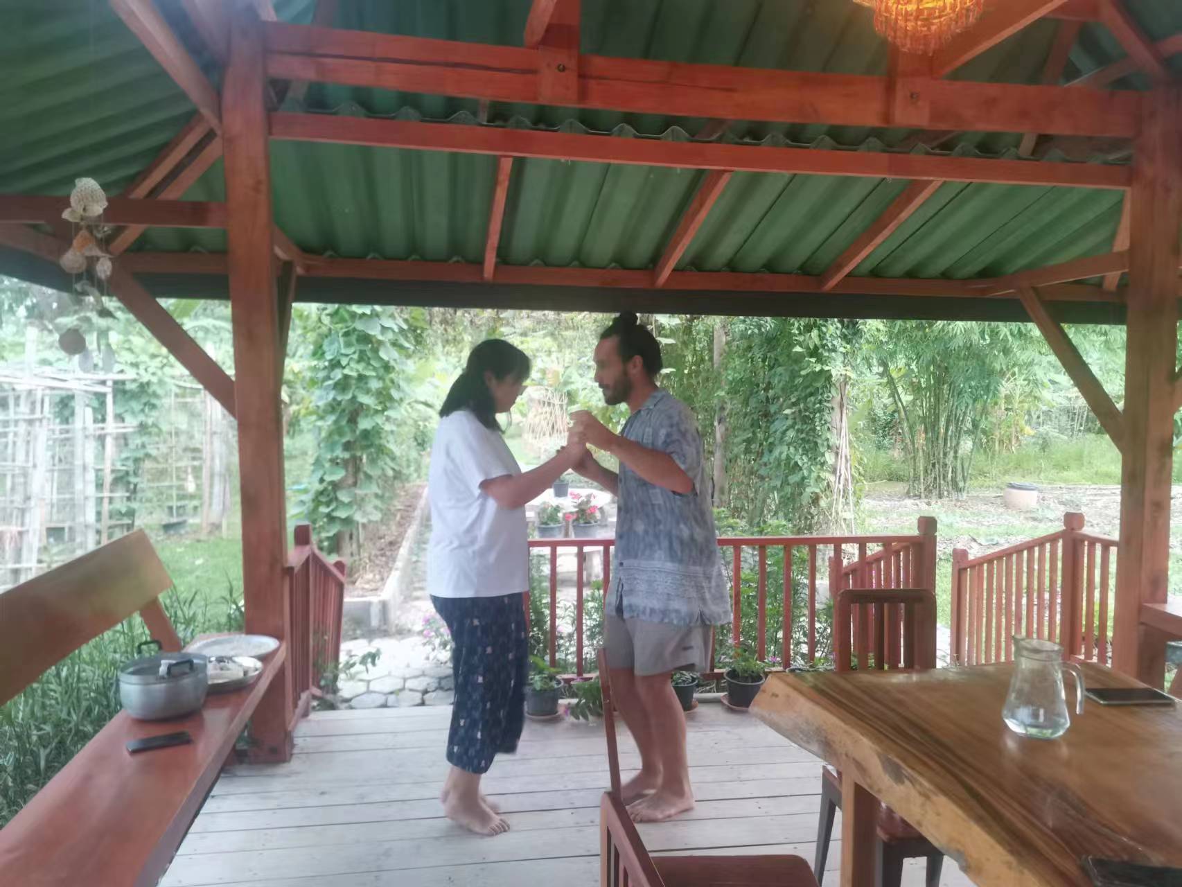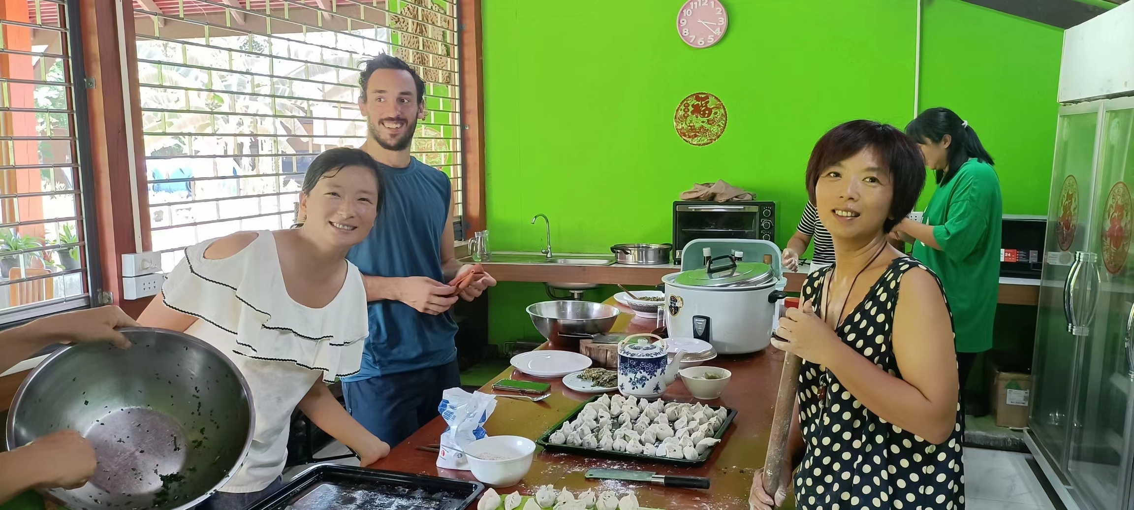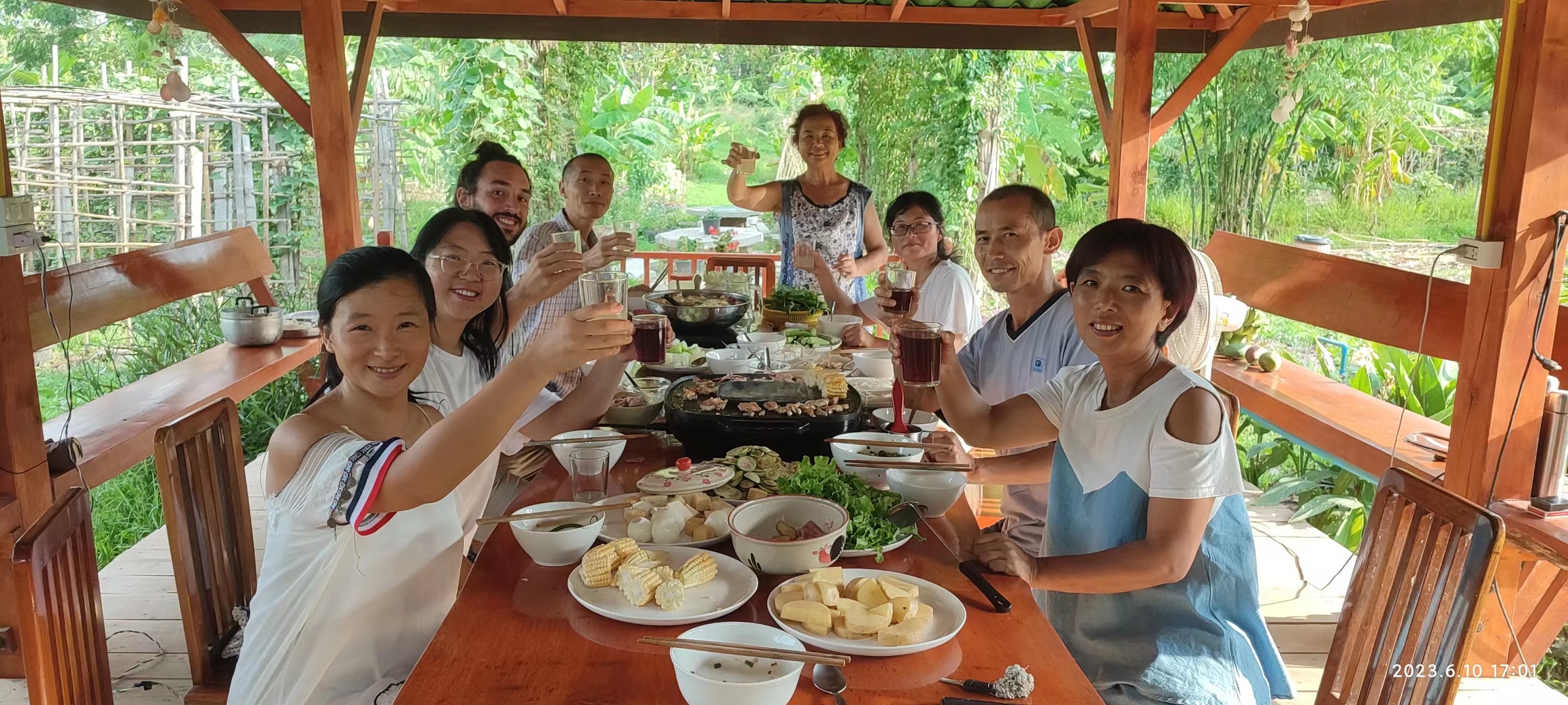 The night before he left, we had a hot pot barbecue party. Everyone sang, danced and played games. We had so much fun together, and we already treated him as one member of our big family.