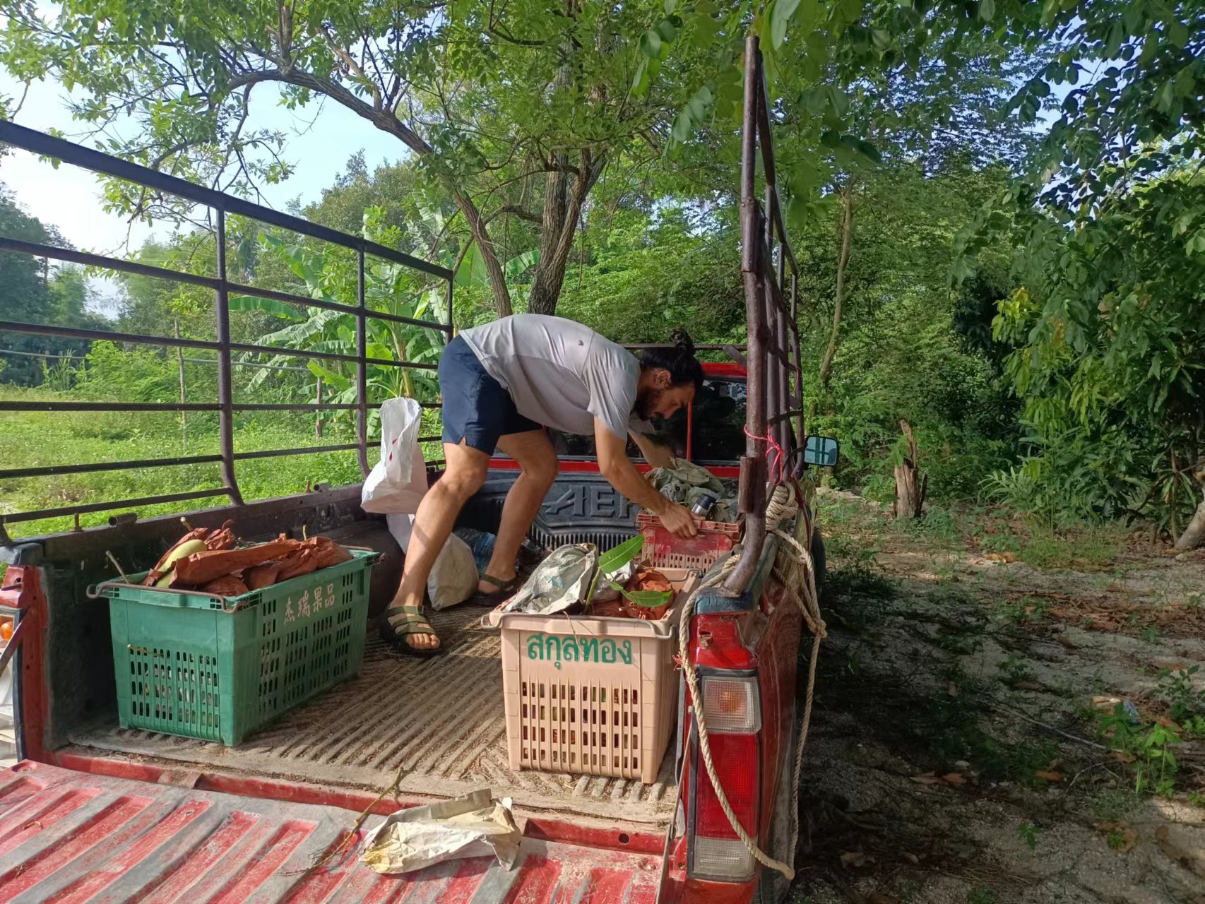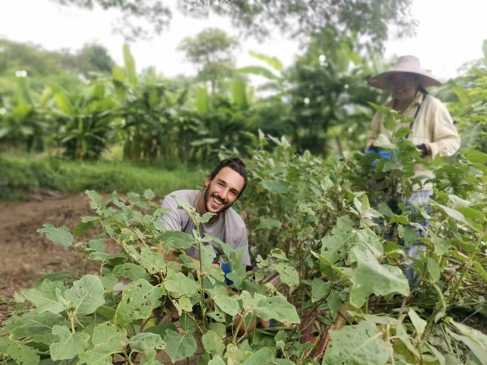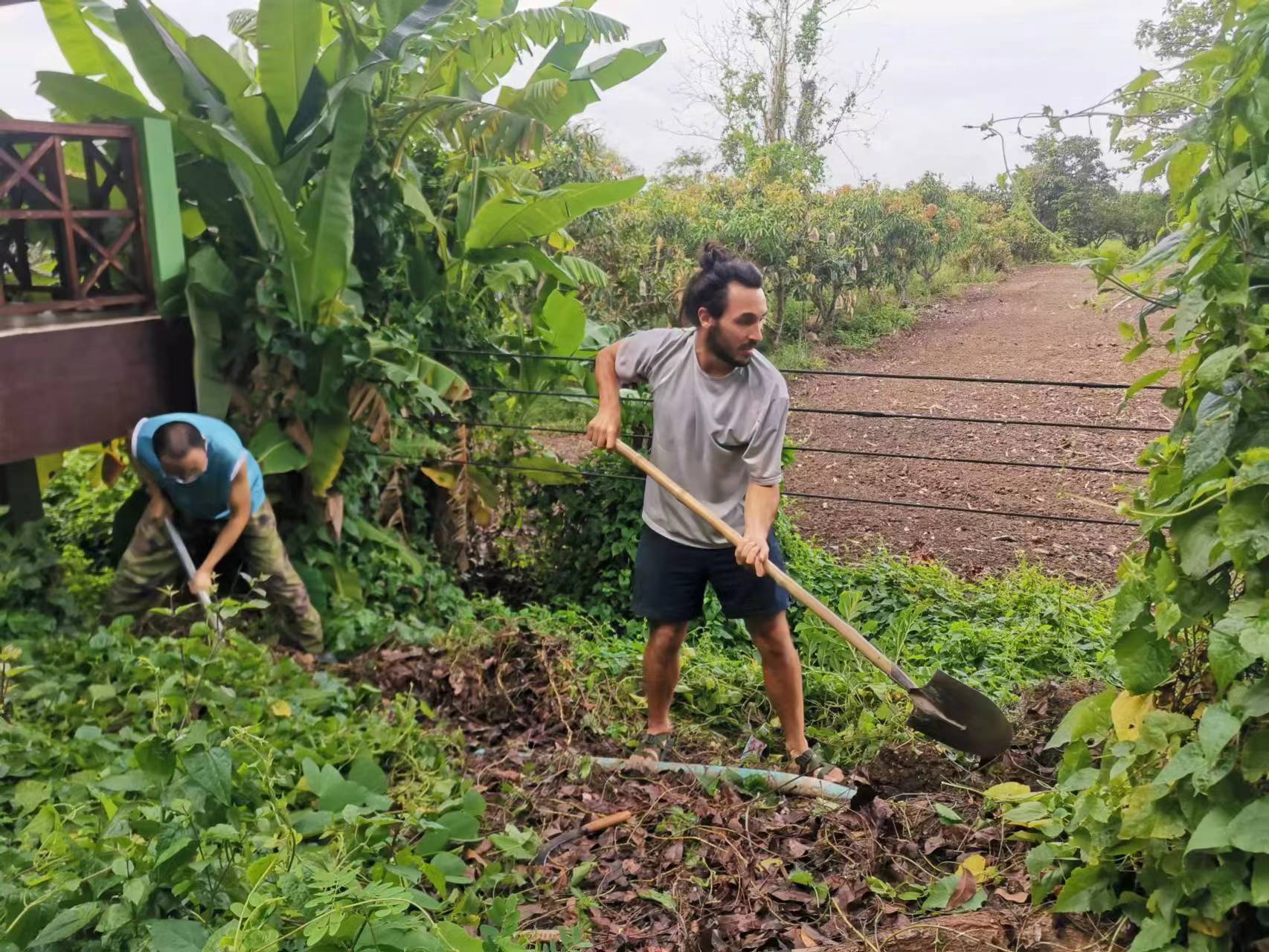 Recently, our Thai branch welcomed a friend from Argentina, German, who lived with us for four days. He helped us with various tasks, such as harvesting mangoes, planting papayas, covering the vegetable fields, and pruning the branches of the eggplant trees. He worked proactively, responsibly and efficiently. He also had a cheerful and easy-going personality, warm smiles and clear eyes. We all liked this hardworking, simple and well-educated boy.