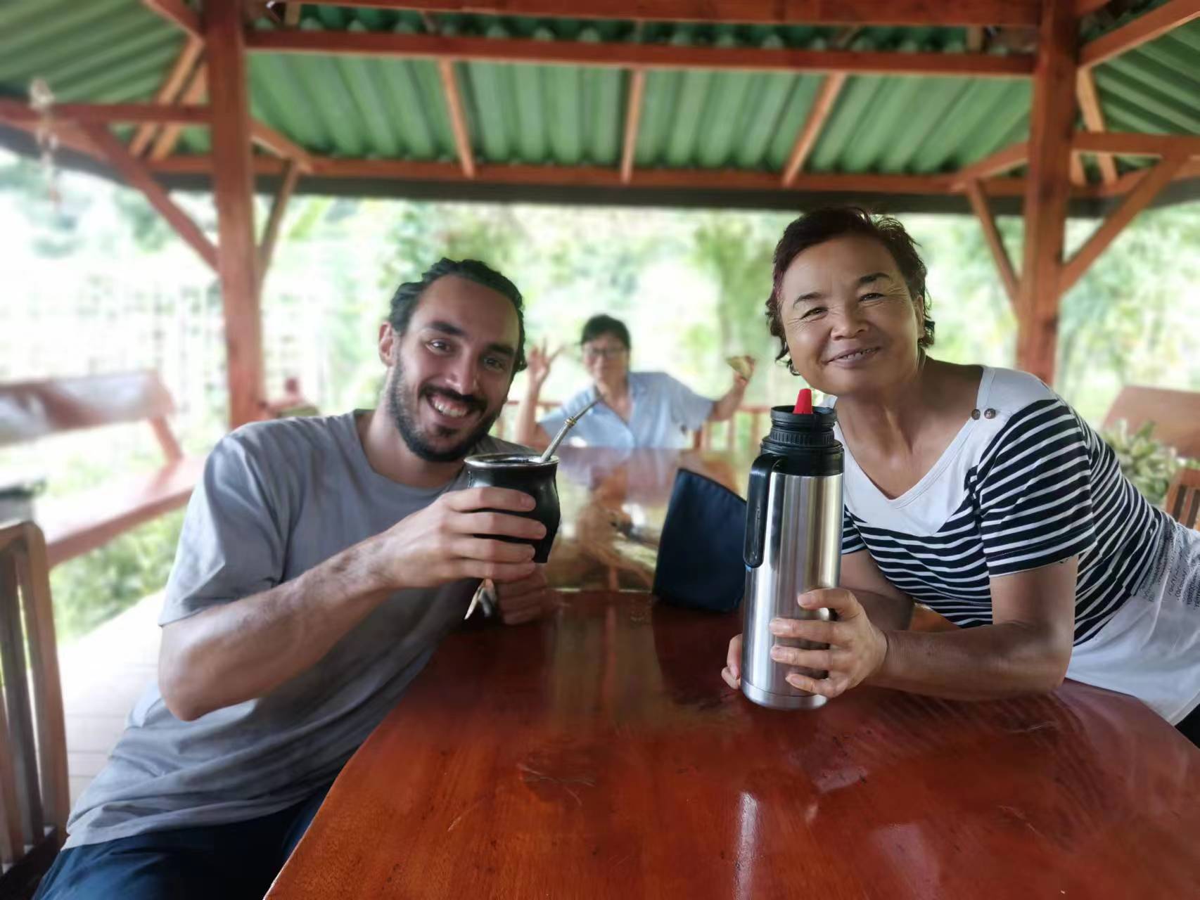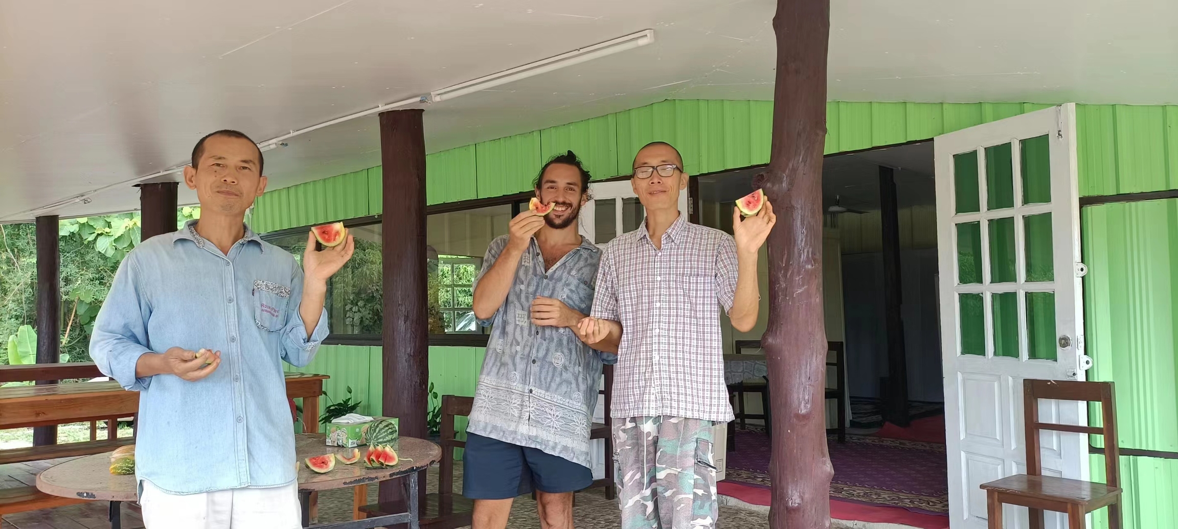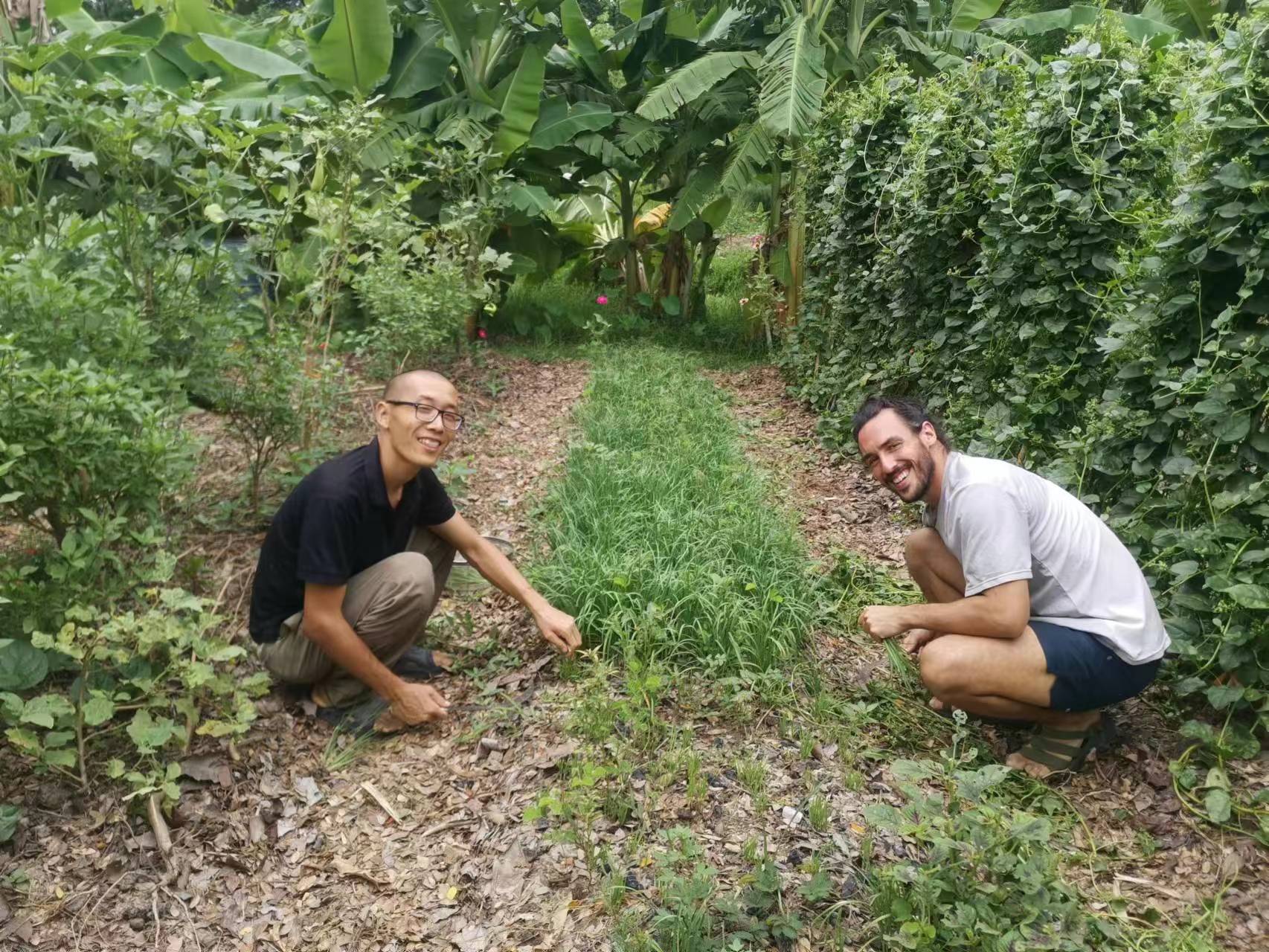 Recently, our Thai branch welcomed a friend from Argentina, German, who lived with us for four days. He helped us with various tasks, such as harvesting mangoes, planting papayas, covering the vegetable fields, and pruning the branches of the eggplant trees. He worked proactively, responsibly and efficiently. He also had a cheerful and easy-going personality, warm smiles and clear eyes. We all liked this hardworking, simple and well-educated boy.