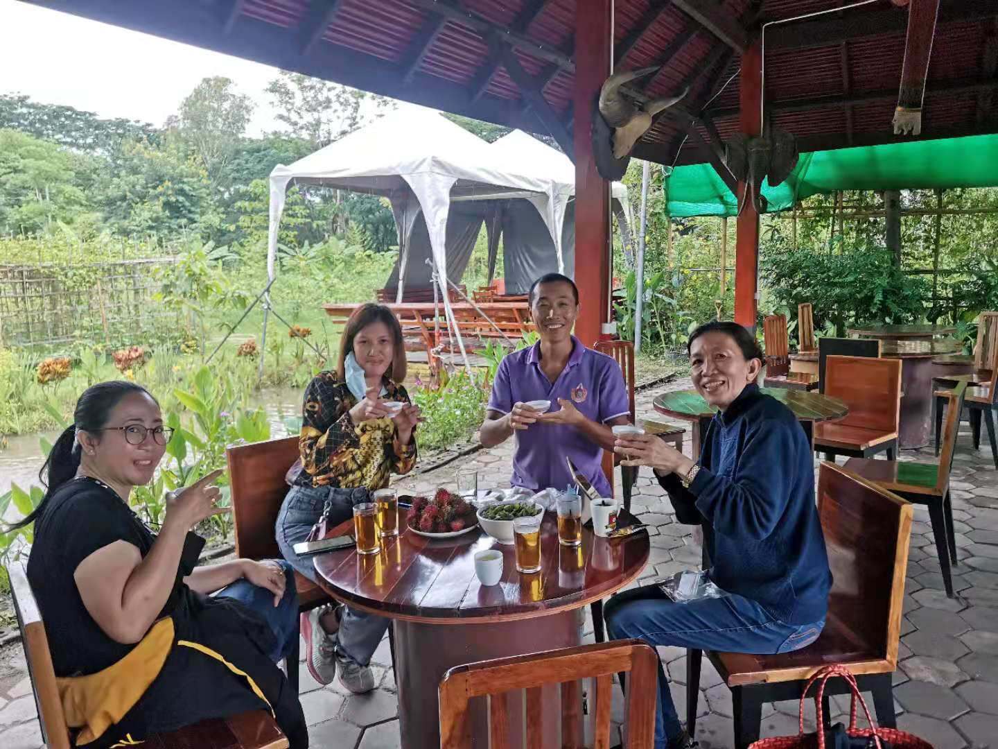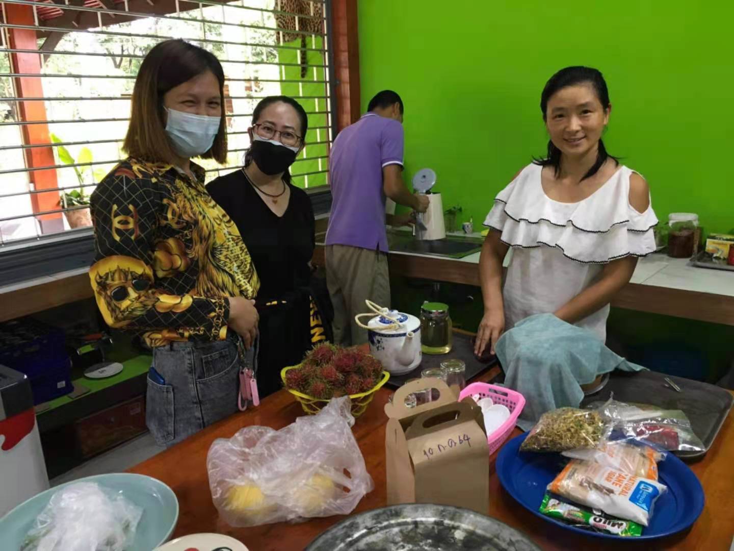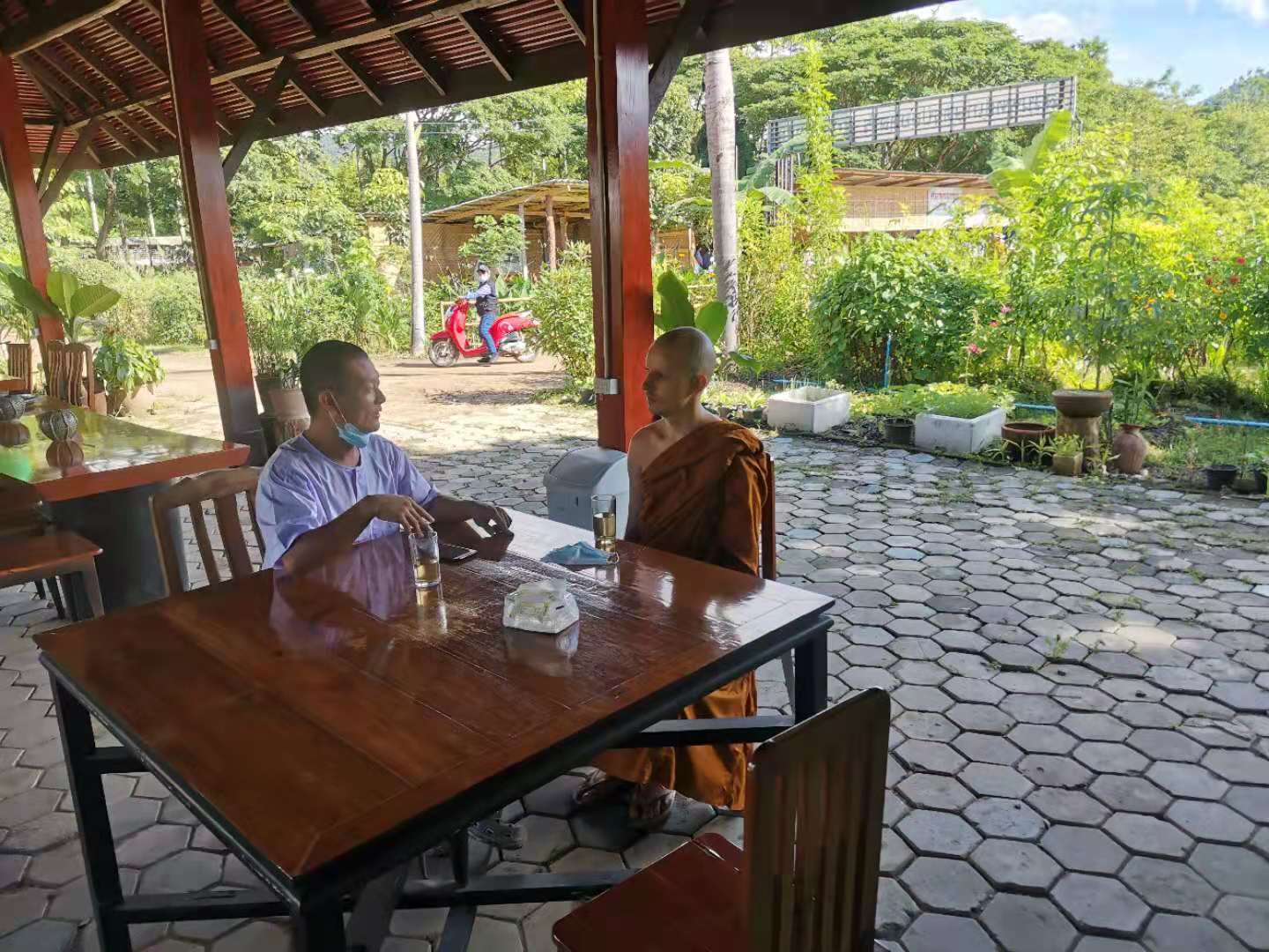 The sister, who Qianzi met in the first branch last time,believe in Christ,Qianzi introduced her our community through Facebook and showed her the photo of the second branch. She is interested in us, and brought her two beautiful friends to visit the day before yesterday. Huiyi drove to the temple to greet them. Huiguang and the sister talked about our values, and Yang Le taught the two beauties in Thai Chinese. We chatted very happily and the atmosphere was very harmonious. After drinking Chinese tea, we took them to walk around in the yard. They liked this place very much. The sister’s husband has passed away, her son is about to get married, and her daughter has found a job. She said that she is free now,and wants to come here to work and live with us. The two young beautiful mothers also said that they will bring their daughters here to learn Chinese from us in the future. Due to the epidemic, the host monk did not immediately promise the sister's wish to live here. When the epidemic eased in the future, I hope more friends will come to visit,learn our values and experience our new life mode.