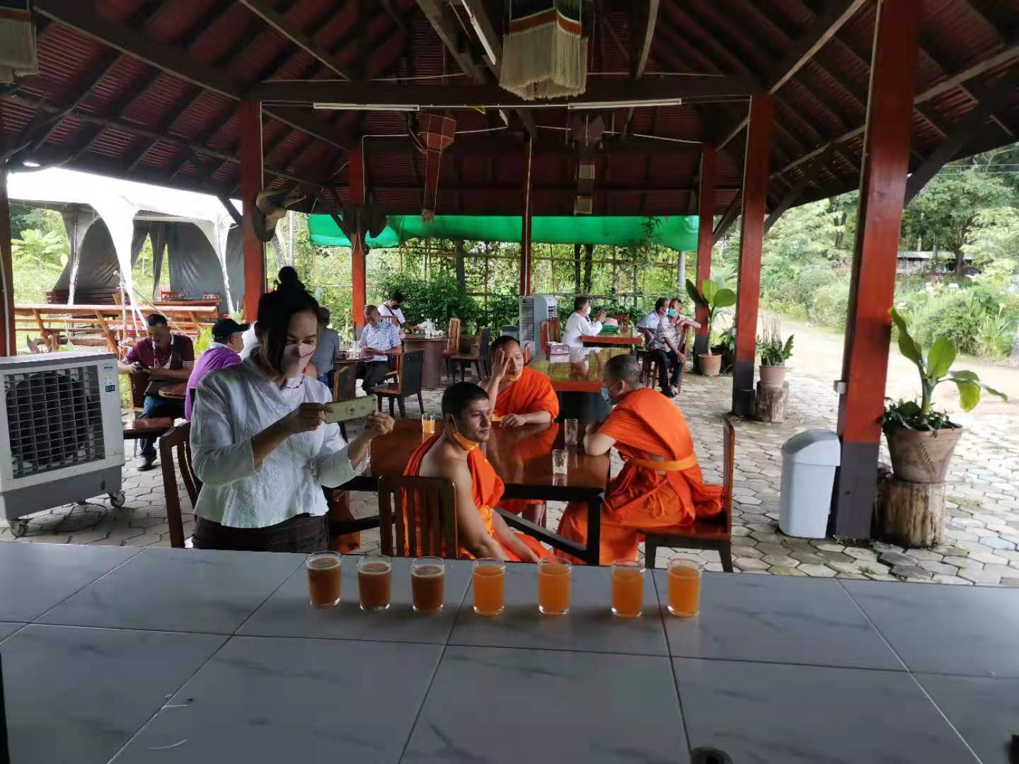 In addition to daily beautification work, we have also helped to receive guests recently. On July 10, the host monk celebrated his 71st birthday. This is a very important local festival. There were about 300 people come to tribute . We help to make juice serve the guests. At the end, the host monk gave each of us a big red envelope full of blessings.