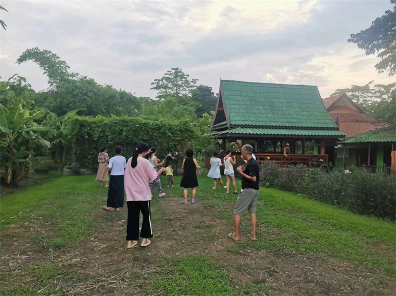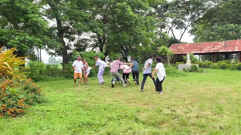 To welcome the new member, Gesang, an informal game event was organized on June 10th in Thai home. The clever and creative fairy, Baichuan, designed and led the games. The day started with prayers at 9 am, followed by the group dance “Green Whirlwind”. The games included: Eagle Catching Chicks, Crossing the Prairie, Football Match, Inviting the Fairy to Sit, Pass the Cucumber, Find the Header, Circle Step, Red-Blue Reverse Thinking, Rabbit Dance, Harmonious Counting, Bottle Pairing, and Harmonious Cup Stacking. Some games seemed simple but were engaging and thought-provoking. In the afternoon, everyone enjoyed dinner with members from the Mango Orchard, followed by impromptu singing and dancing, making for a joyous and wonderful day.