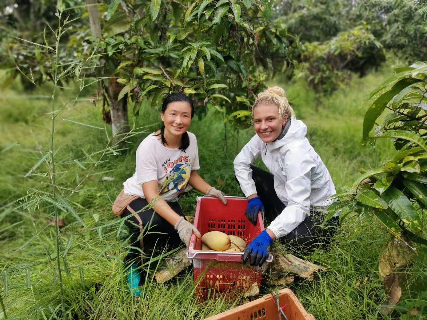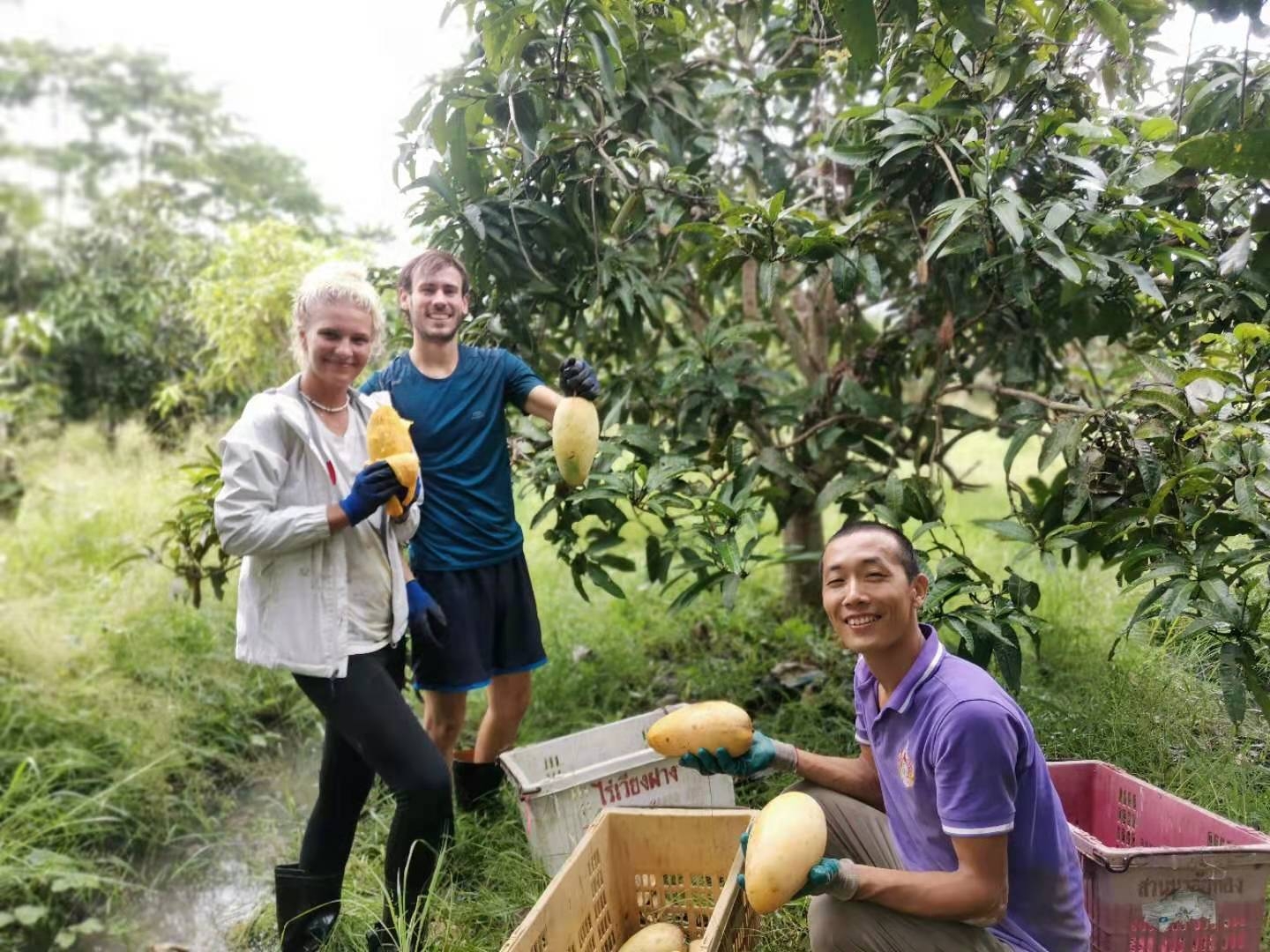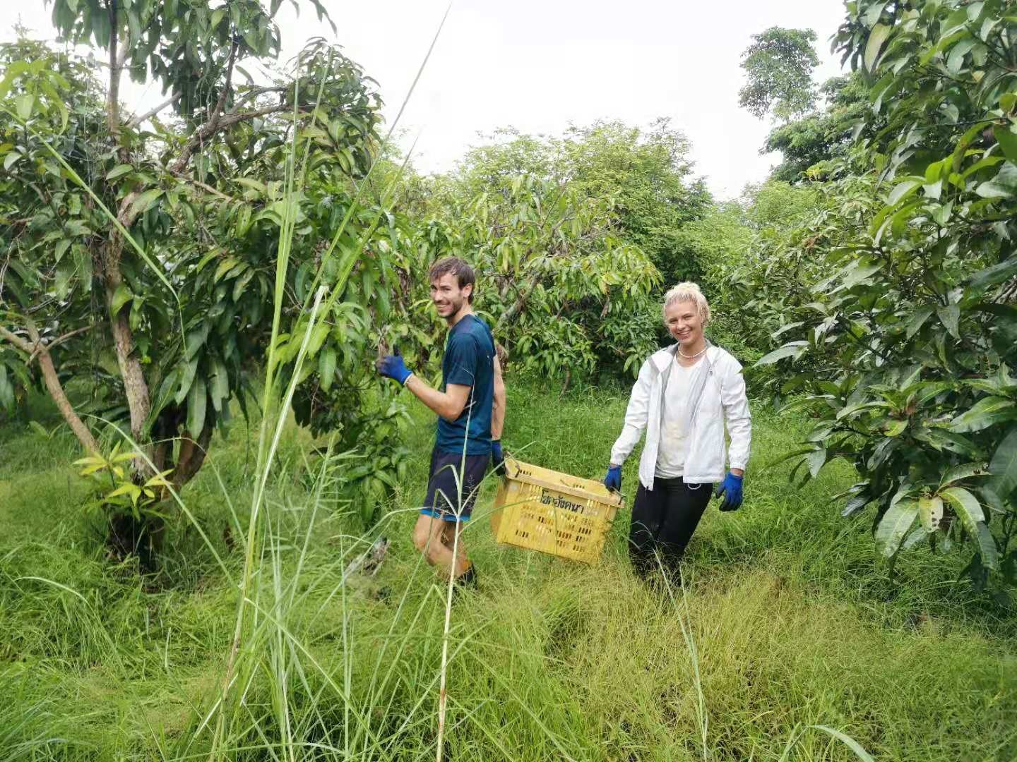 Thailand branch: Recently we had two volunteers- Sophie from England and Mati from Argentina living and working with us in our community. We did some farming work together and helped the workers to pick mangos. Sophie and Mati even cooked dinner for us ,both of them are excellent creative cook. We are all happy that we have the common taste for food.