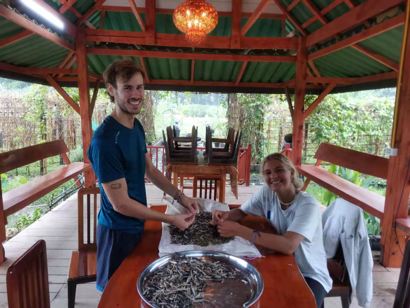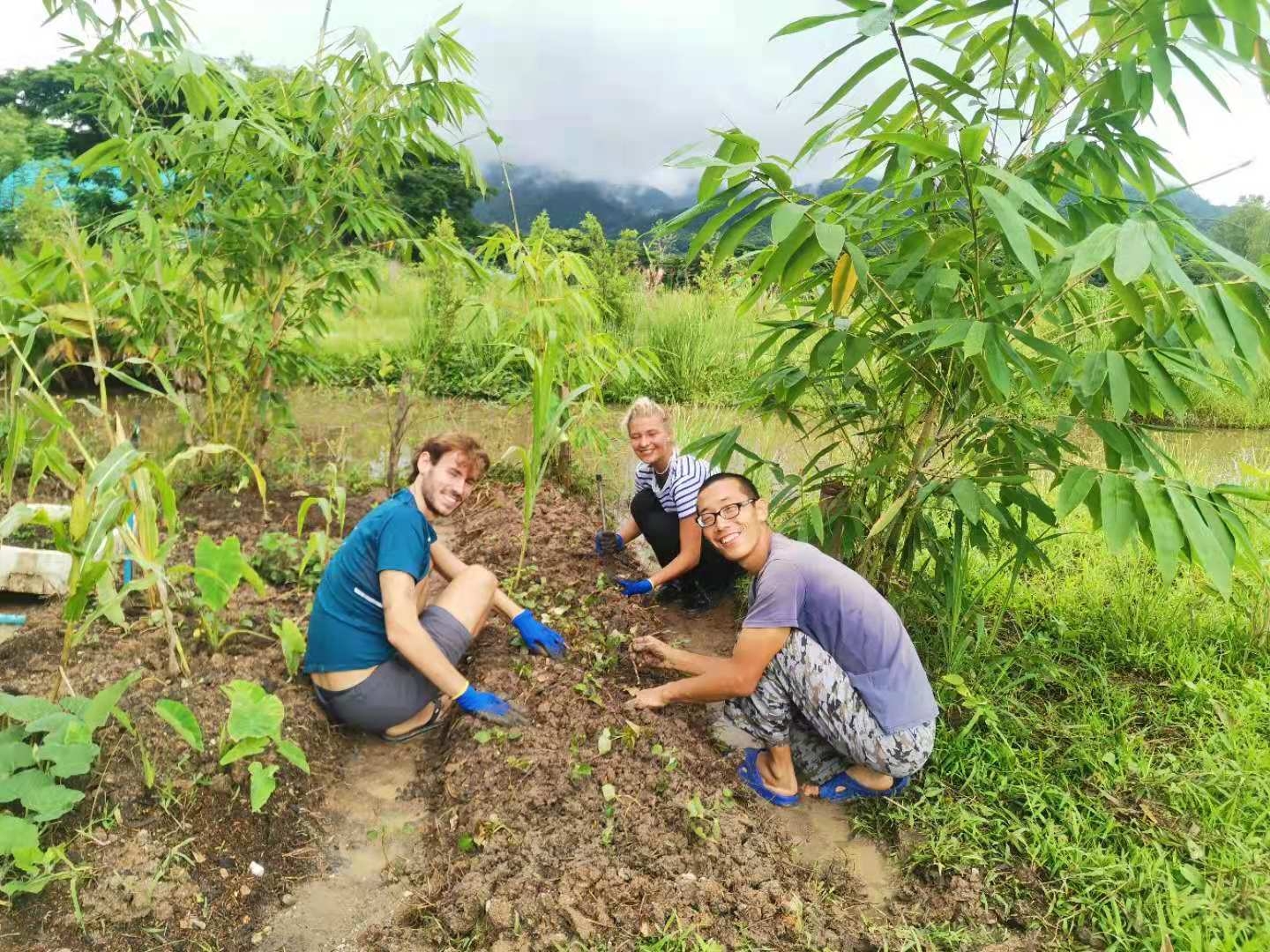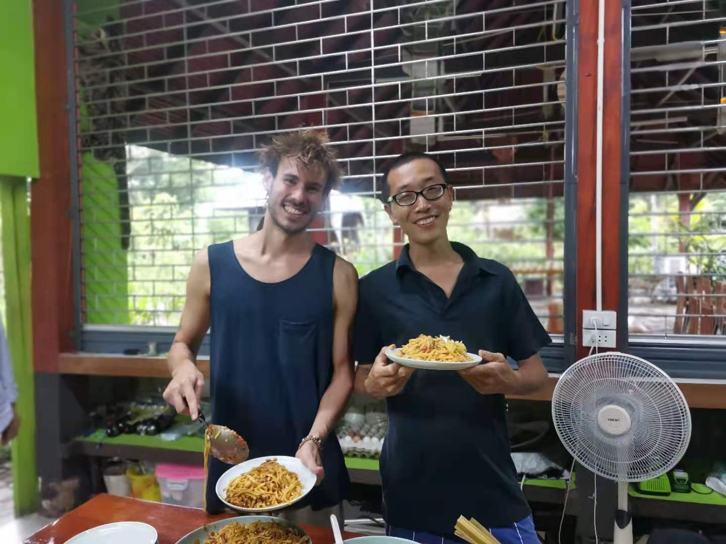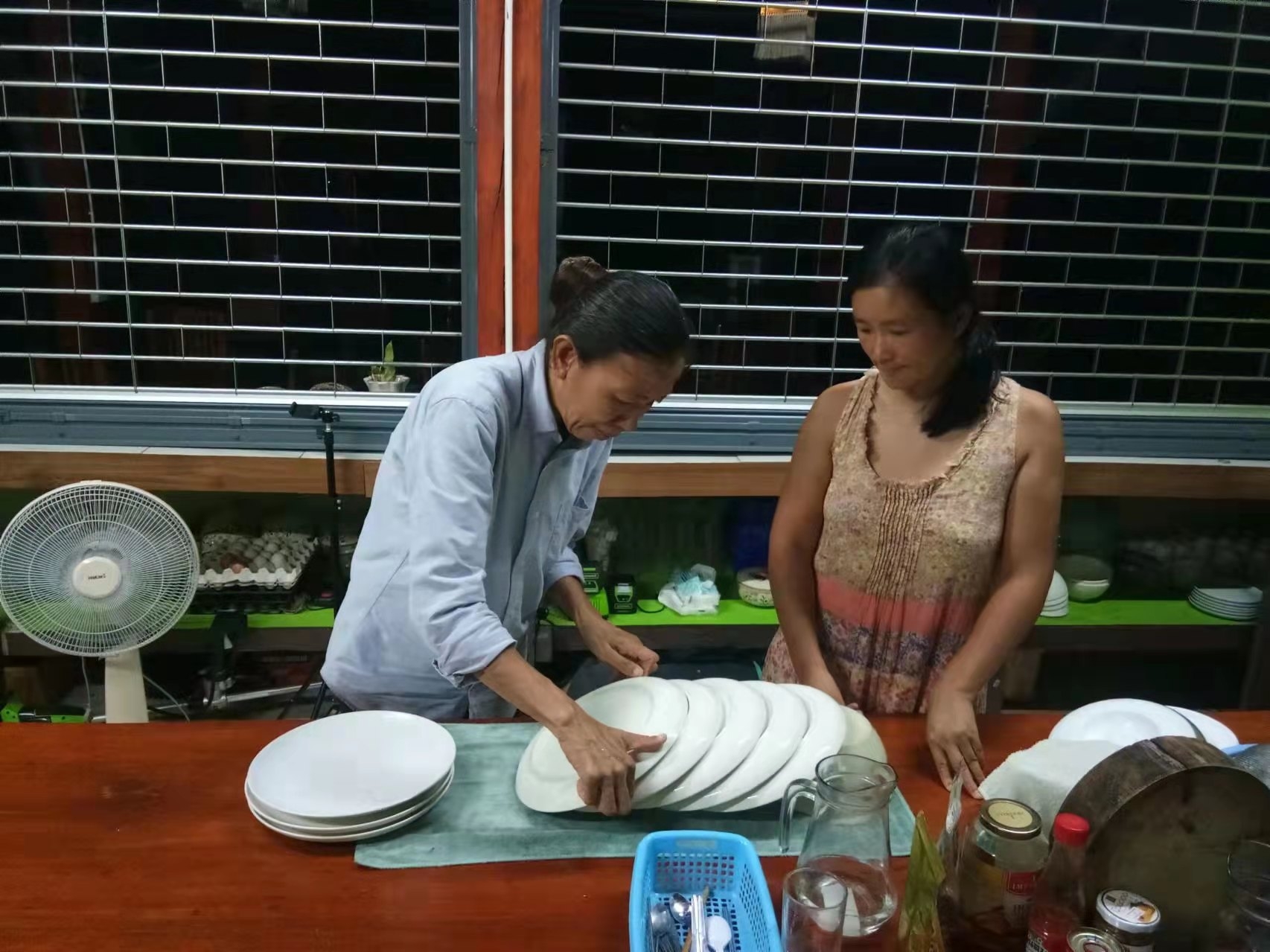 Thailand branch: Recently we had two volunteers- Sophie from England and Mati from Argentina living and working with us in our community. We did some farming work together and helped the workers to pick mangos. Sophie and Mati even cooked dinner for us ,both of them are excellent creative cook. We are all happy that we have the common taste for food.