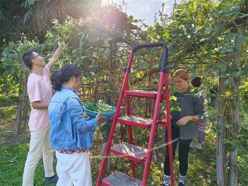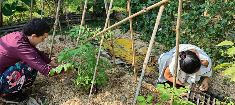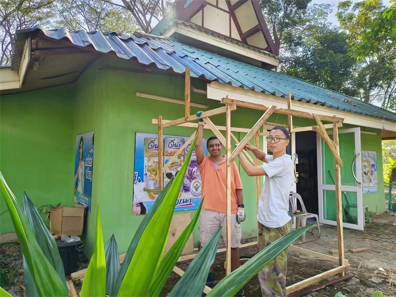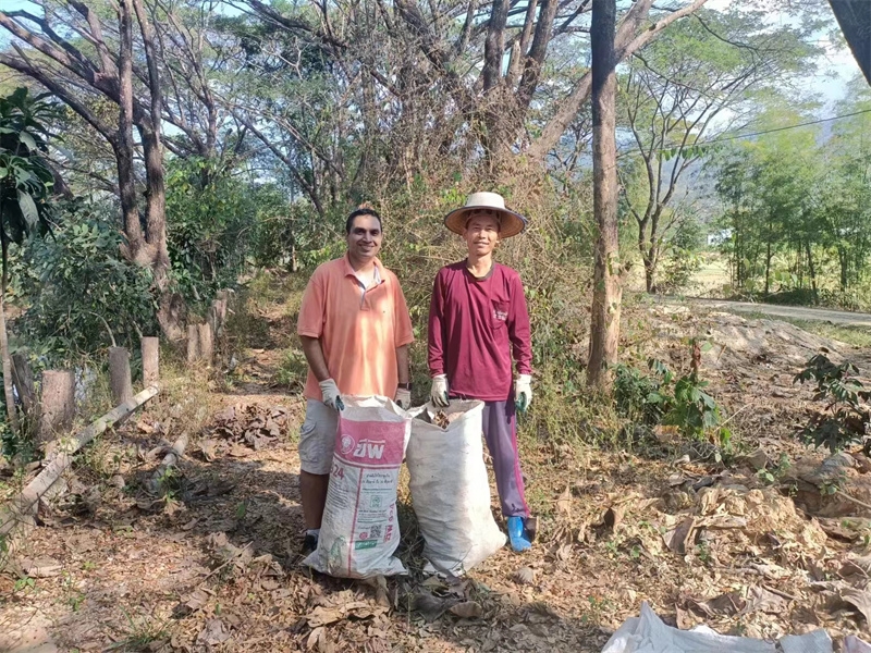 During this blossoming season, the Thai Home welcomes Lanka brother. Quiet and gentle, Lanka exudes a simple and humble demeanor, with a childlike innocence reflected in his warm smile. After five months of online communication with community members, Lanka became the first international member to join our life here. In these days, Lanka has joined in activities like pumpkin planting, leaf collection, and assisting in constructing a framework for a composting toilet. His diligent and earnest efforts have earned him recognition and affection from everyone.