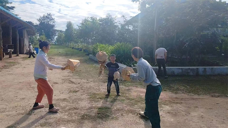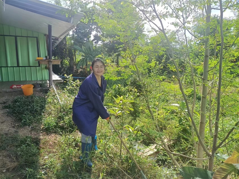 The roselle flowers have started to be harvested, and every few days, some is picked and offered to the temple. These days, Yang Le led everyone in collecting fertilizer and prepared vegetable beds for tomatoes and radishes. In the mango orchard, diligent efforts were focused on cultivating papaya seedlings. Under the influence of Qianzi and Yangle, Jie Jing found joy in planting. She happily showed us the tomatoes and cucumber seedlings she had grown. Each seedling appeared lush and healthy, and Jie Jing referred to them as her own precious babies.
