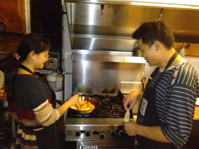 Living as a small community brings more joy and fun compared to living alone or in a family. Yesterday, we improved our living experience! We all gathered to make a delicious treat—fried fruit. We mixed fruit with eggs and sugar and fried it in oil. Oh, it was so tasty and sweet! Fried fruit is a specialty from our hometown in the Linxia Republic! 2018-01-26