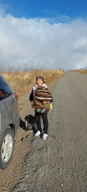 The day before yesterday, Ehuang and I went to the Baimi Village store looking for sheep manure. We didn’t find any, but we did find horse manure for sale. A bag of horse manure weighing about 25 pounds costs 75 Canadian dollars, which is nearly 400 Chinese yuan. Oh my goodness, horse manure is so expensive! We decided not to buy it and instead went to the wilderness to collect it ourselves. Cow dung is everywhere in the wild and costs nothing.