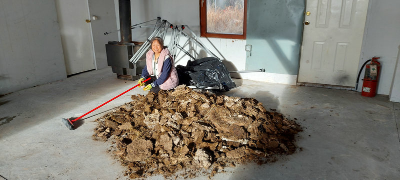 This morning, after entertaining our guests and having lunch, we went to the same place as last time to gather cow dung. Three of us worked together to collect cow dung, filling four bags. We brought it back and stored it in the garage to be used as fertilizer for the rose bushes and small vegetable garden next spring.