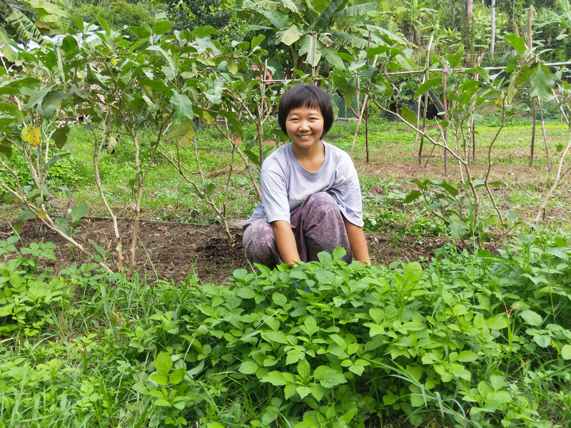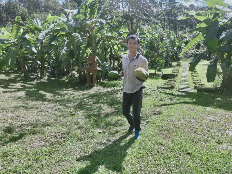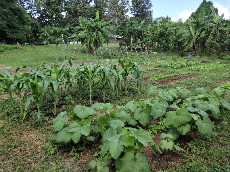 After more than a month of diligent planting, combined with Thailand's naturally favorable climate, our surroundings have become lush and vibrant year-round, making it ideal for growing a variety of vegetables. Leafy greens, such as amaranth, bok choy, water spinach, Shanghai greens, chives, green onions, and cilantro, have grown at an impressive rate and are now ready for us to enjoy. Other vegetables like cucumbers, gourds, bitter melons, long beans, eggplants, pumpkins, tomatoes, okra, chilies, and corn, which have longer growth cycles, will require a bit more patience before they mature.