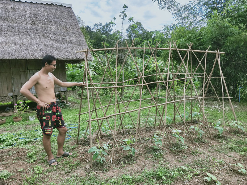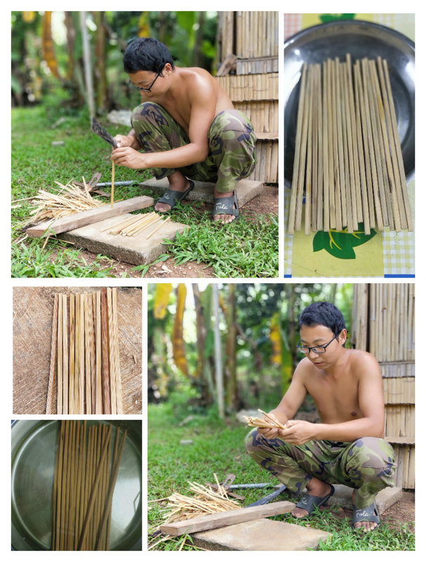 Guang continues to create various useful tools and facilities for us, such as building vegetable trellises, making new steps for the bathroom, constructing a husk storage bin, and crafting net covers to protect seedlings from insects. On weekends, he helps with cooking, goes out to sell fruits (which I'll talk about in another post), and recently started working on compost bins. Surprisingly, he even made DIY chopsticks! Our "jack-of-all-trades" Guang has made our lives much more convenient and brought many pleasant surprises.