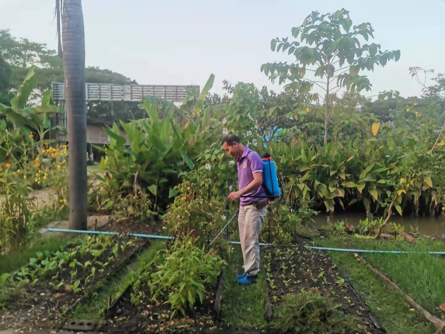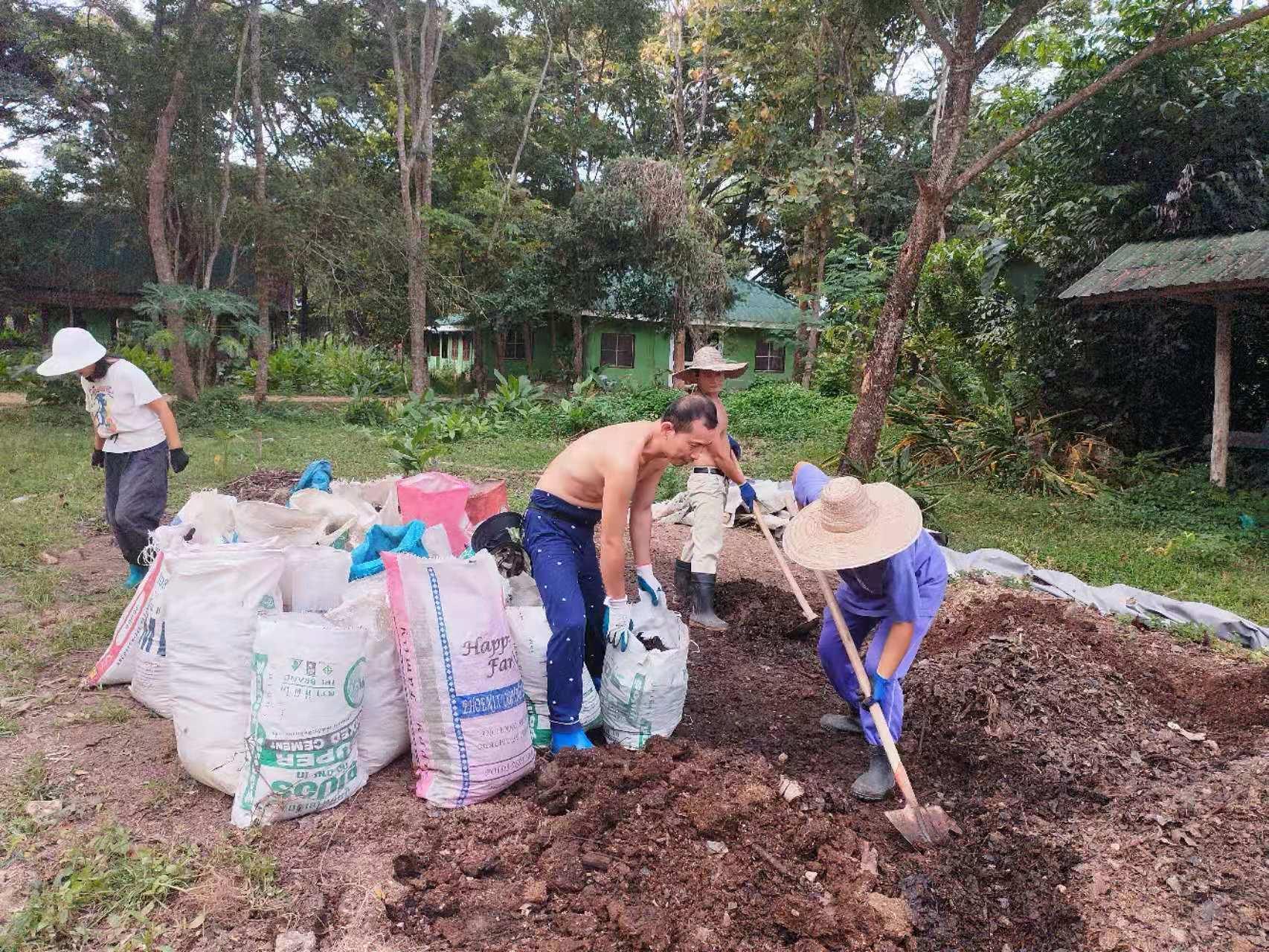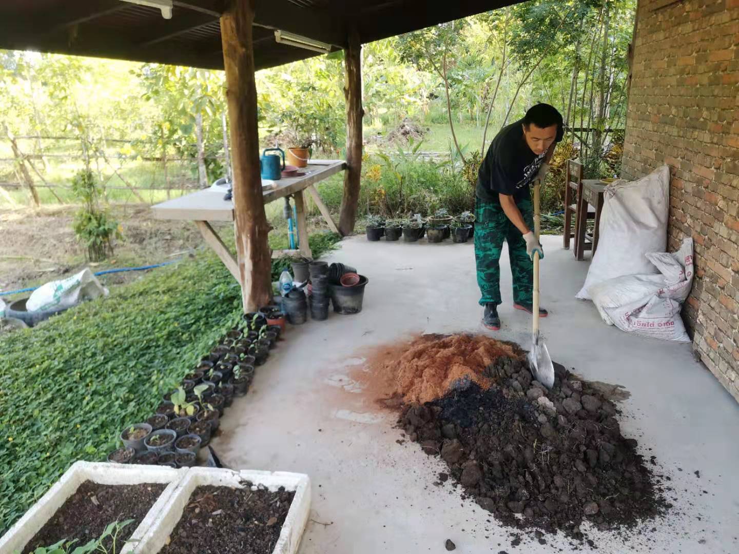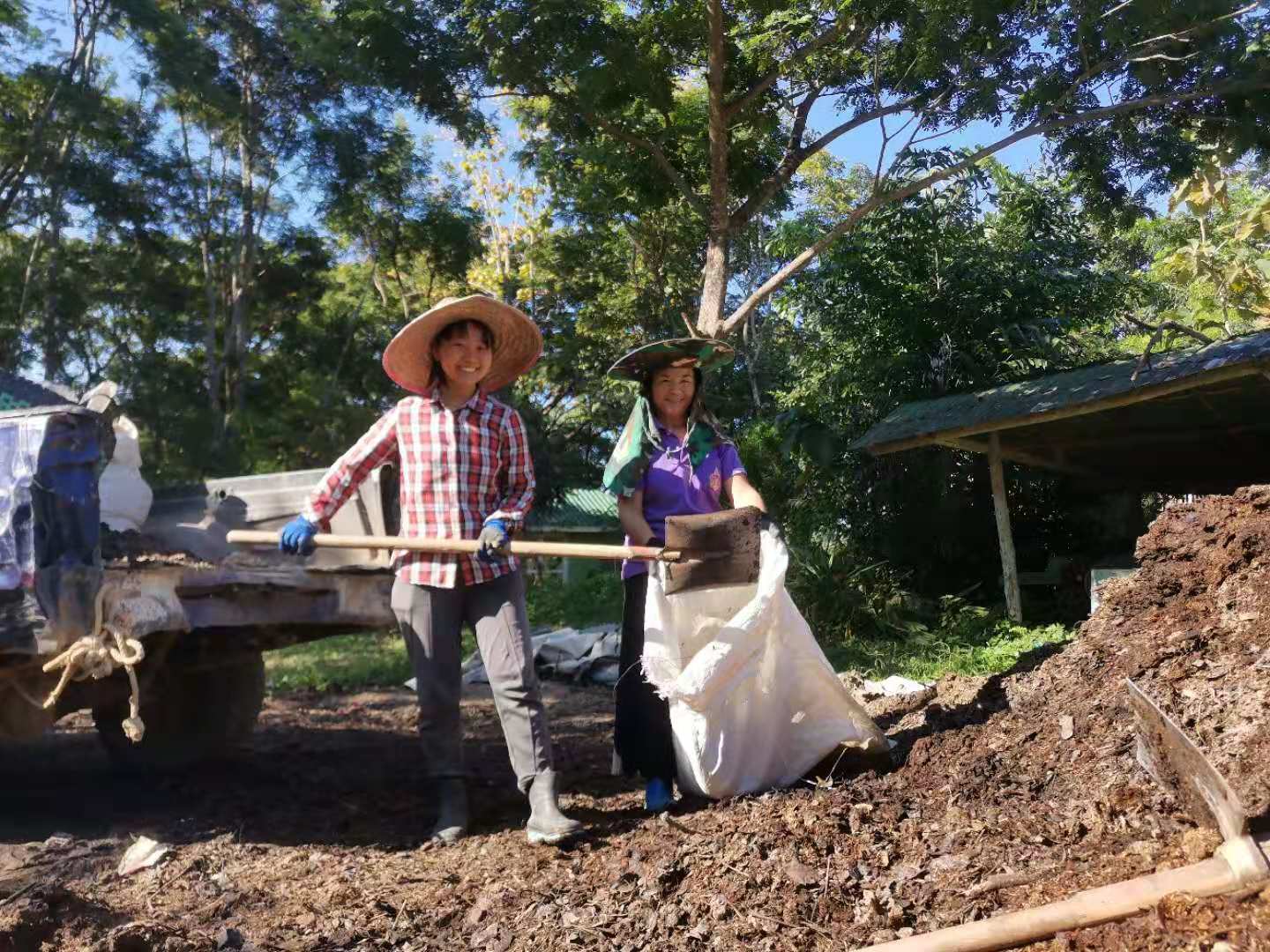 During this period of time, we still concentrated our efforts on improving the soil. Faced with clay problem, everyone took it easy, rhythmically transporting fertilizers and turning over the soil, breaking the hard clods as much as possible, and mixing in a lot of organic matter. With the help of hard-working and capable brothers and sisters,three fields have been thoroughly improved. Looking at the thick and fertile vegetable beds that have been arranged, we are particularly pleased and satisfied! Sawdust and weeds were then collected, the vegetable beds were mulched, and tomatoes, radishes and sweet potatoes were planted. Daqi brother is responsible for making enzymes, and spraying em liquid on the ground with a sprayer every day to accelerate the decomposition of organic matter in the soil.