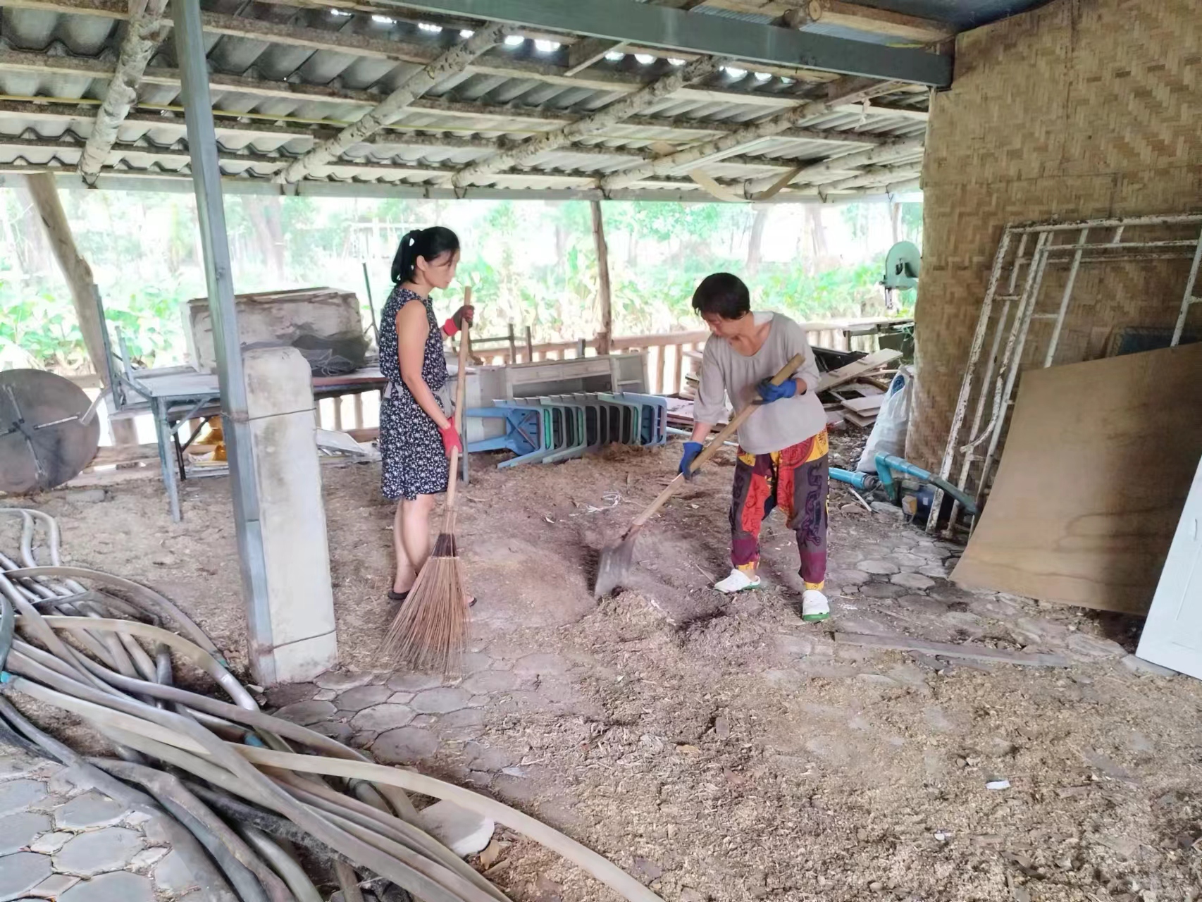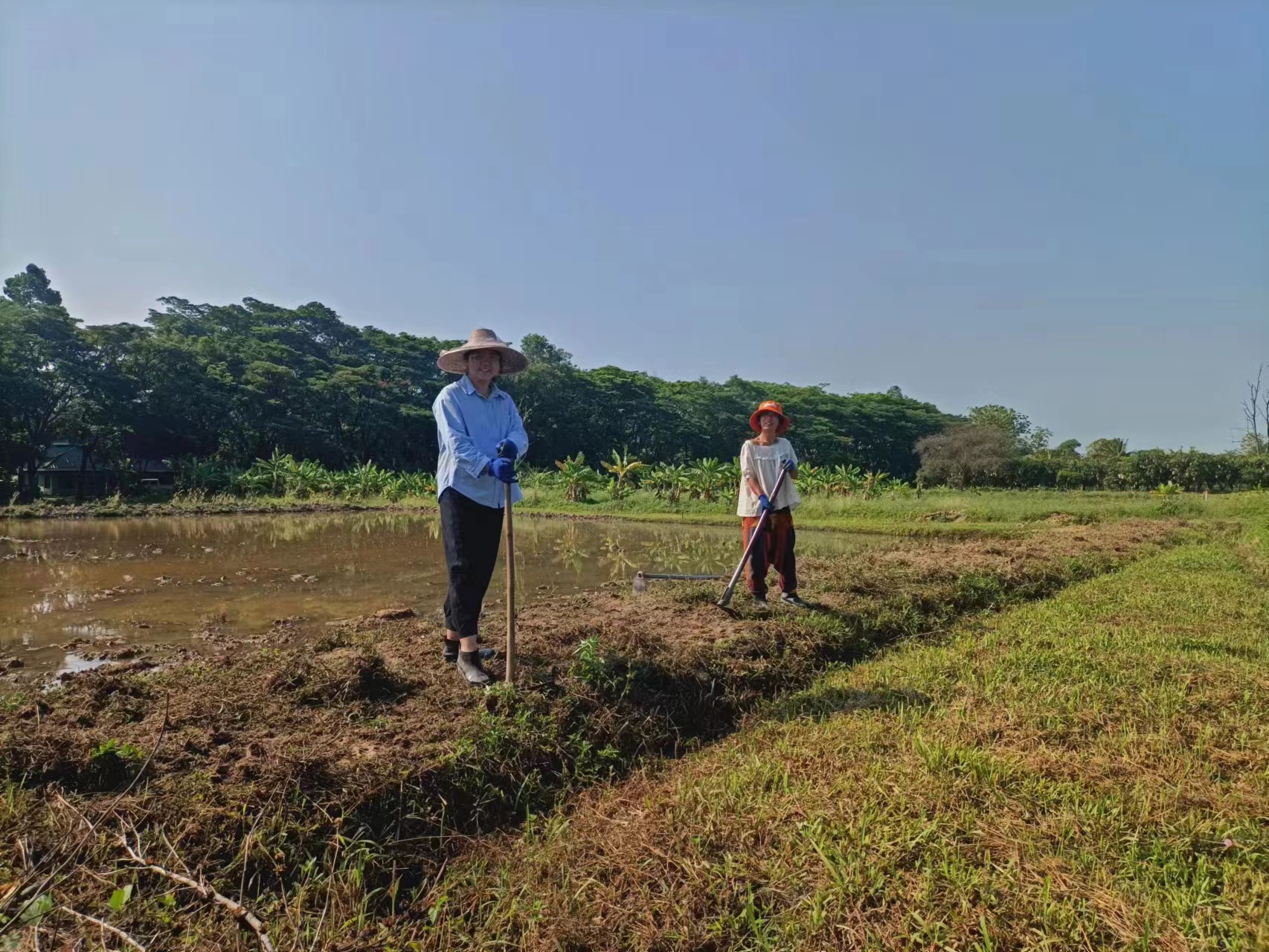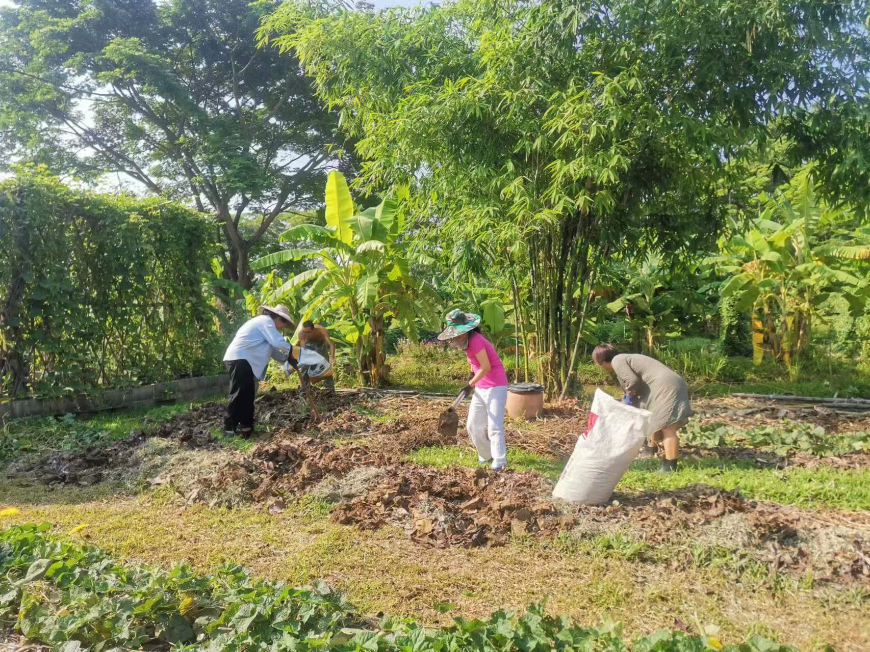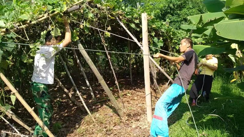This month, there were several storms in Thailand branch, two vegetable shelves near the kitchen collapsed in the strong wind. With everyone's effort, four concrete pillars were re-erected for one of the shelves, The entire collapsed shelf was straightened and re-fixed on the concrete pillar. The other shelf could not be rescued. We removed the original vegetable seedlings, and replanted pumpkin seedlings. The occasional episodes in life may seem tricky, but relying on collective wisdom and strength, they can be easily resolved.