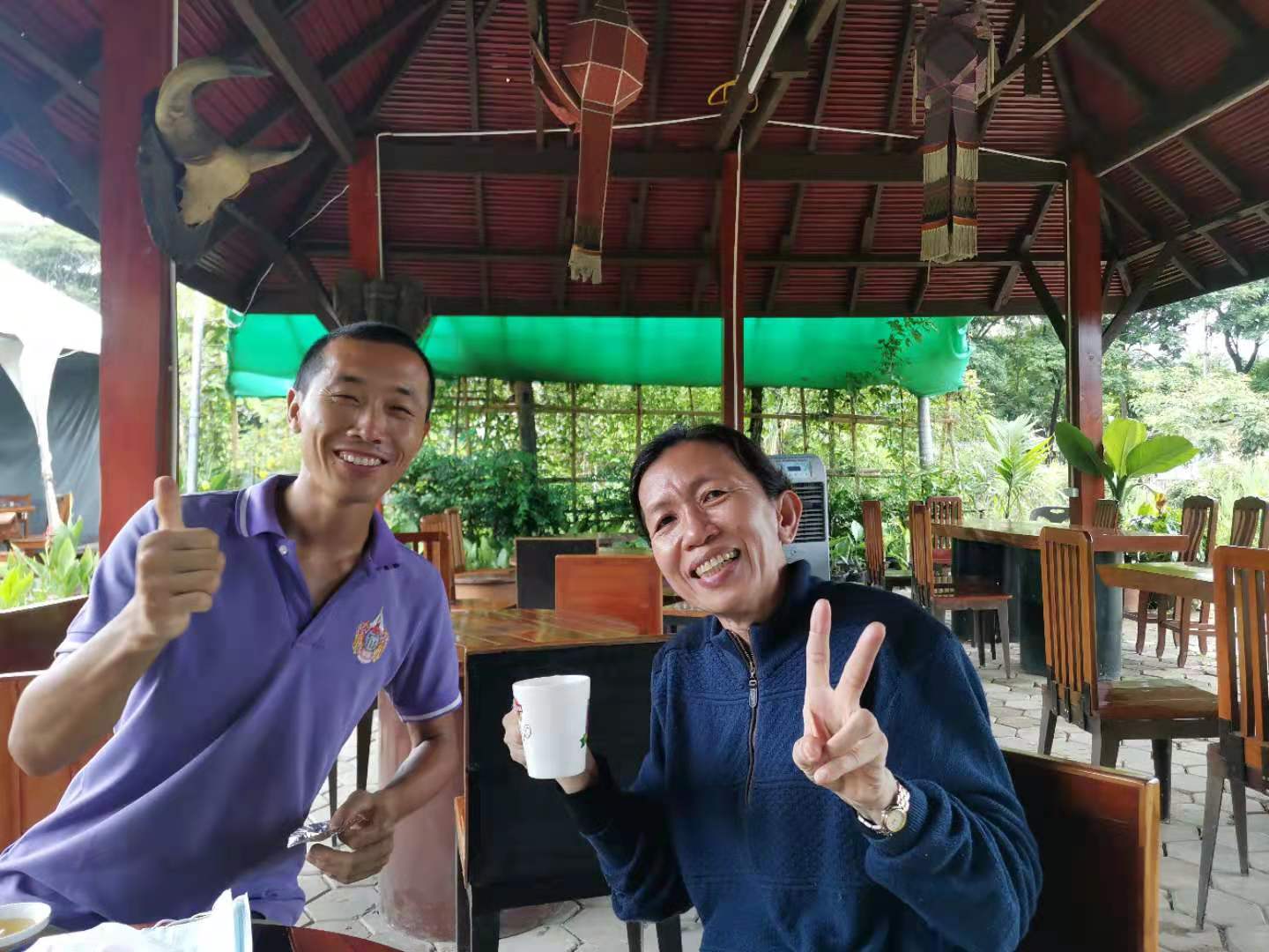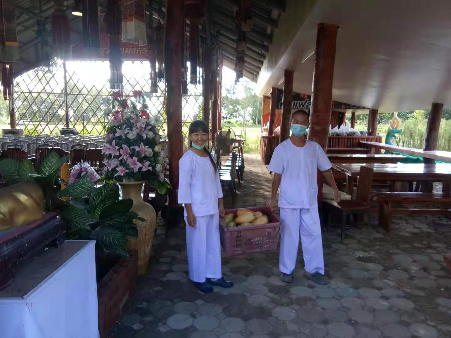 The sister, who Qianzi met in the first branch last time,believe in Christ,Qianzi introduced her our community through Facebook and showed her the photo of the second branch. She is interested in us, and brought her two beautiful friends to visit the day before yesterday. Huiyi drove to the temple to greet them. Huiguang and the sister talked about our values, and Yang Le taught the two beauties in Thai Chinese. We chatted very happily and the atmosphere was very harmonious. After drinking Chinese tea, we took them to walk around in the yard. They liked this place very much. The sister’s husband has passed away, her son is about to get married, and her daughter has found a job. She said that she is free now,and wants to come here to work and live with us. The two young beautiful mothers also said that they will bring their daughters here to learn Chinese from us in the future. Due to the epidemic, the host monk did not immediately promise the sister's wish to live here. When the epidemic eased in the future, I hope more friends will come to visit,learn our values and experience our new life mode.
