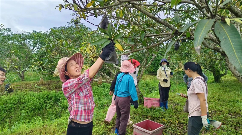 During mango season, everyone goes to the Mango Garden to pick mangoes! What used to be work for two or three people now feels like a fun group activity with many family members involved. Picking mangoes has become an easy and enjoyable game, where brothers and sisters enjoy the sweet taste of mangoes while chatting and laughing, quickly completing the harvesting task.